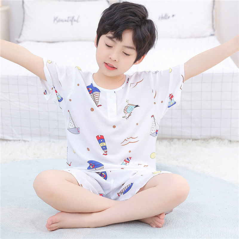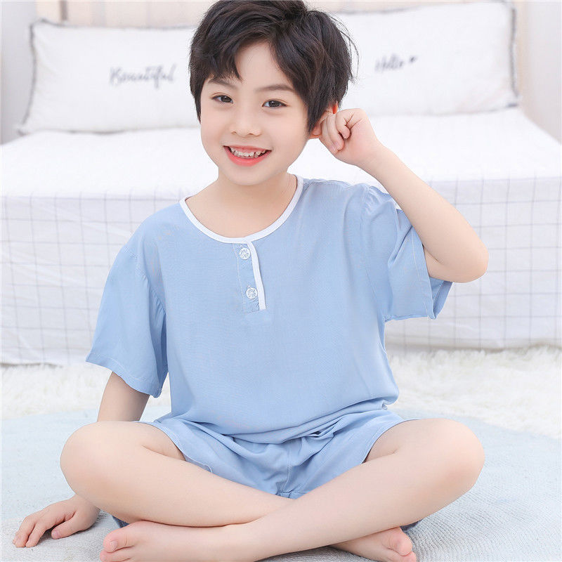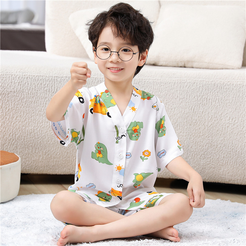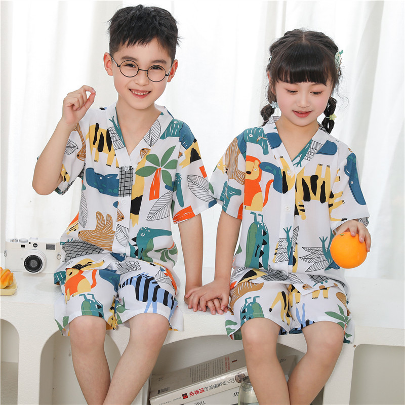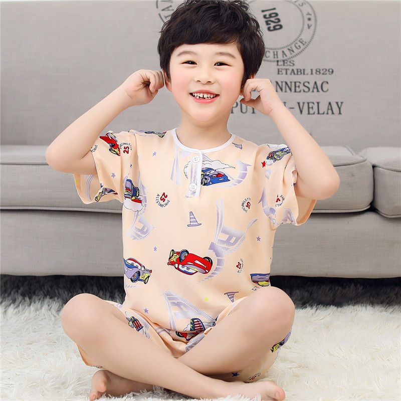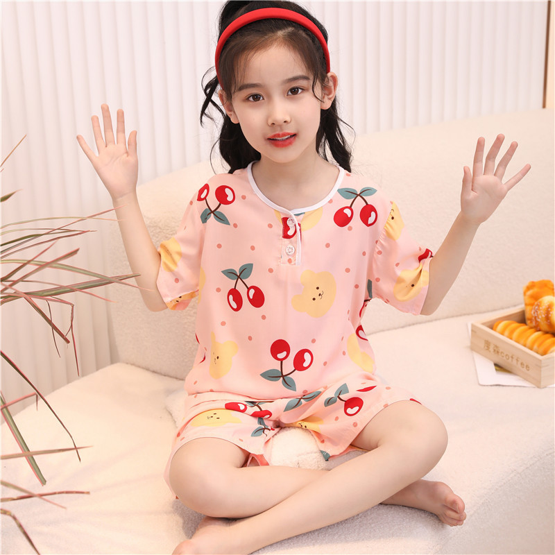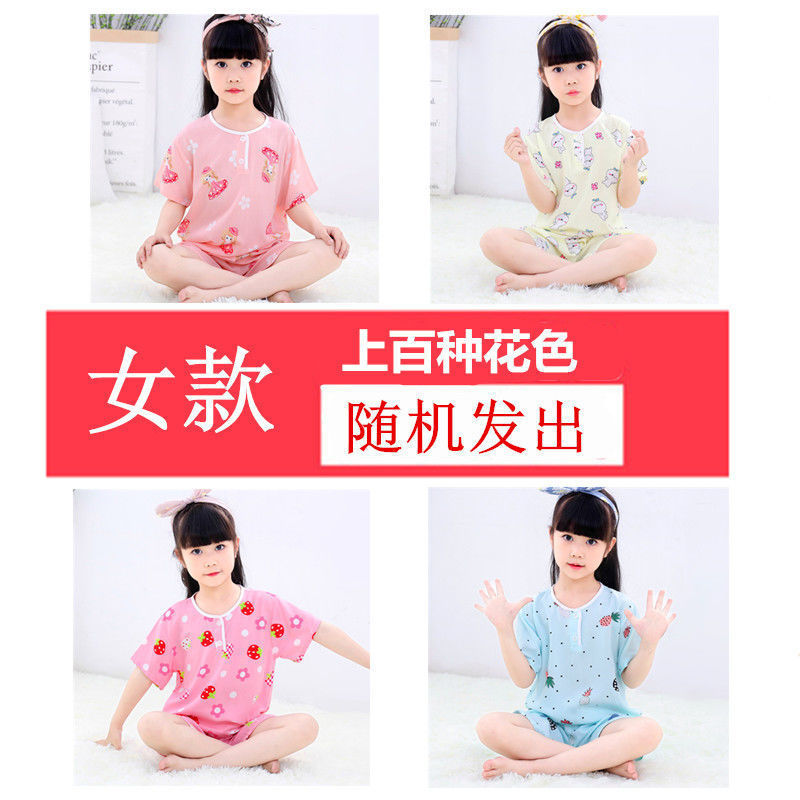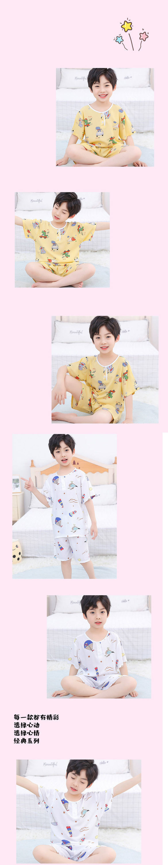 여름 어린이 면화 실크 잠옷 세트 반팔 반바지 면화 실크 소년과 소녀 아기 얇은 가정 옷스토어 가기