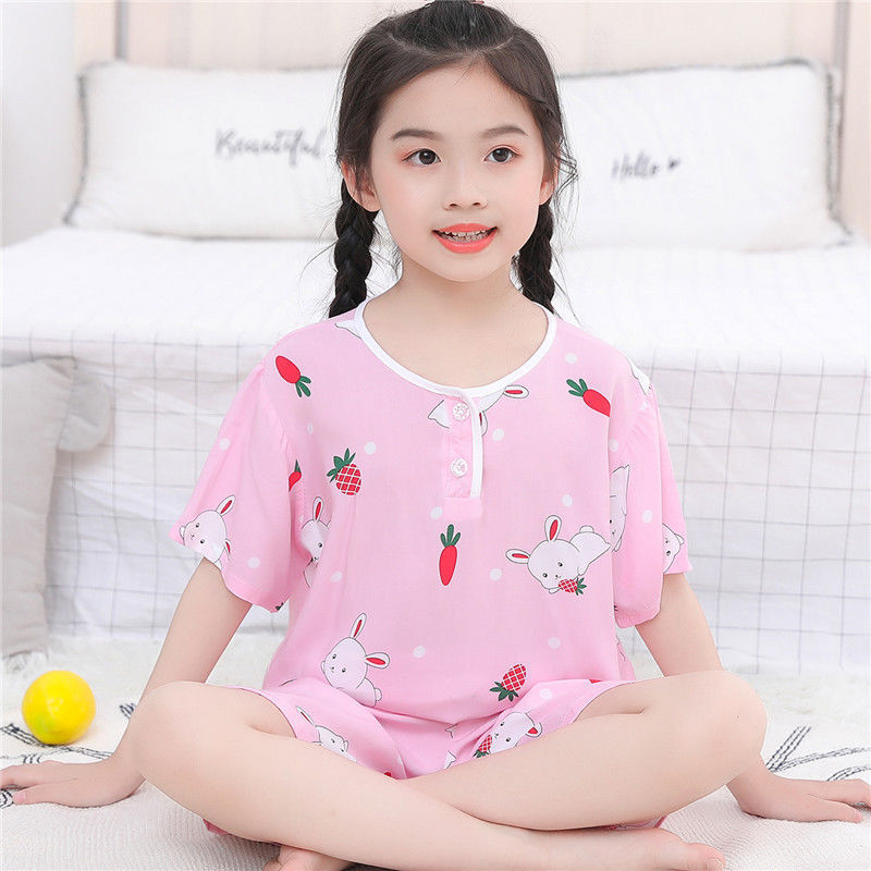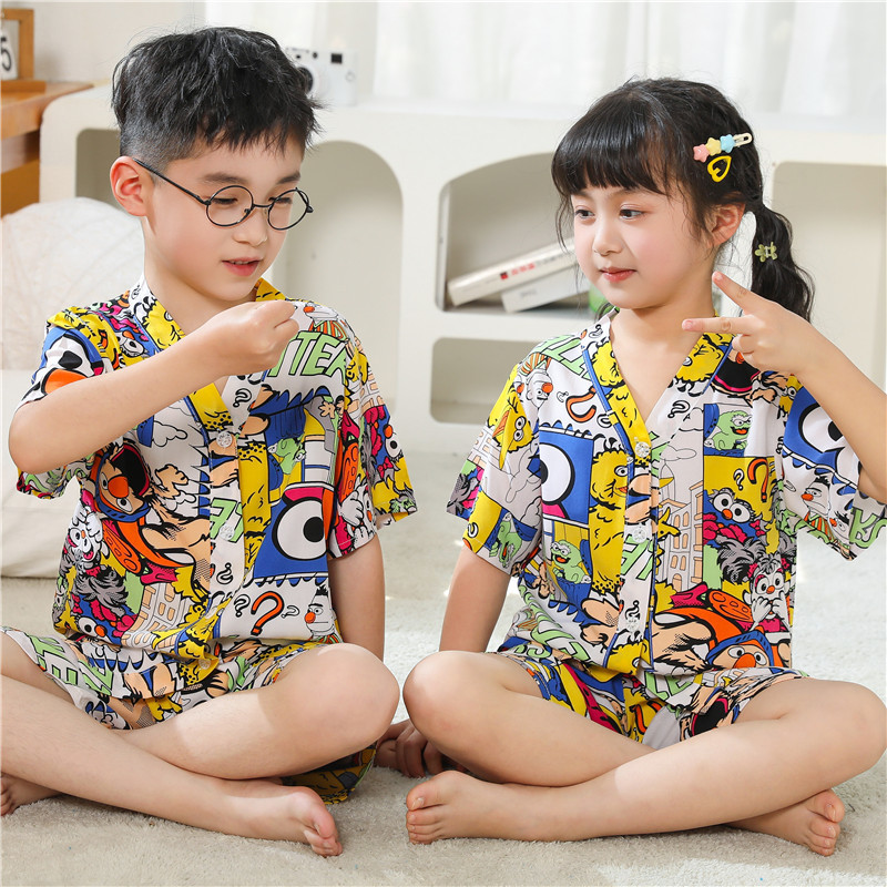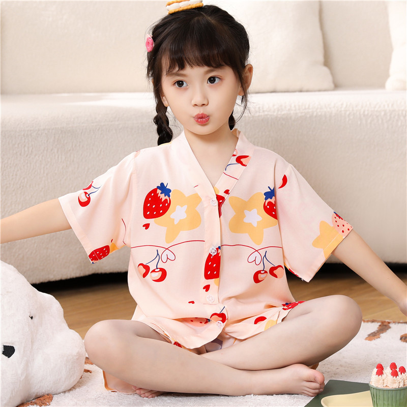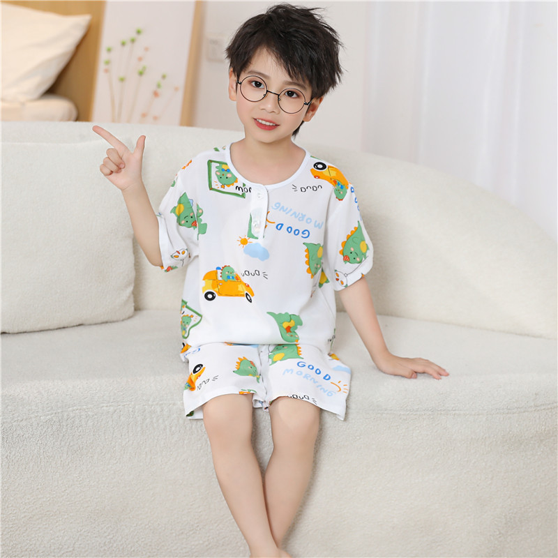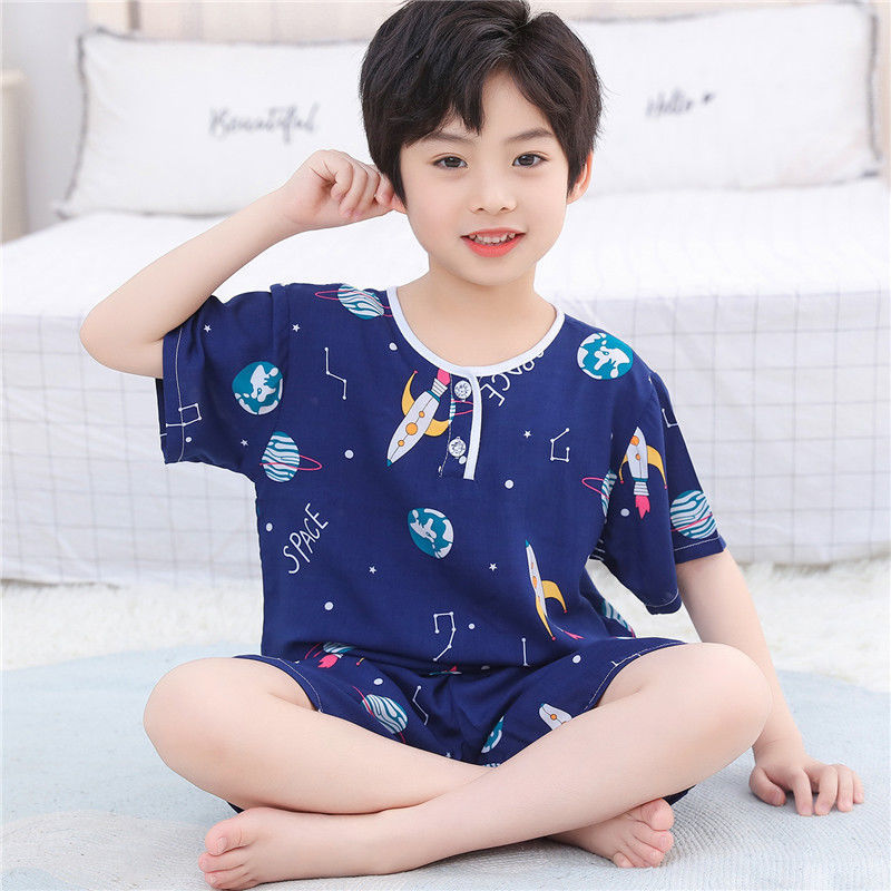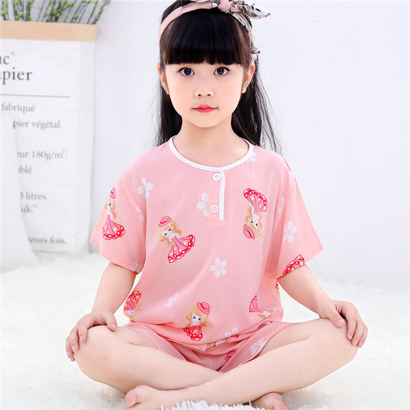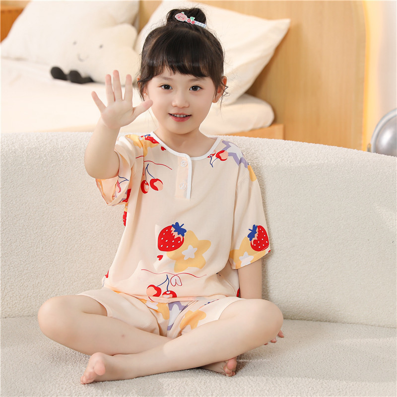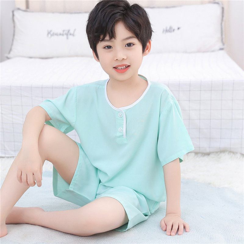 여름 어린이 면화 실크 잠옷 세트 반팔 반바지 면화 실크 소년과 소녀 아기 얇은 가정 옷스토어 가기