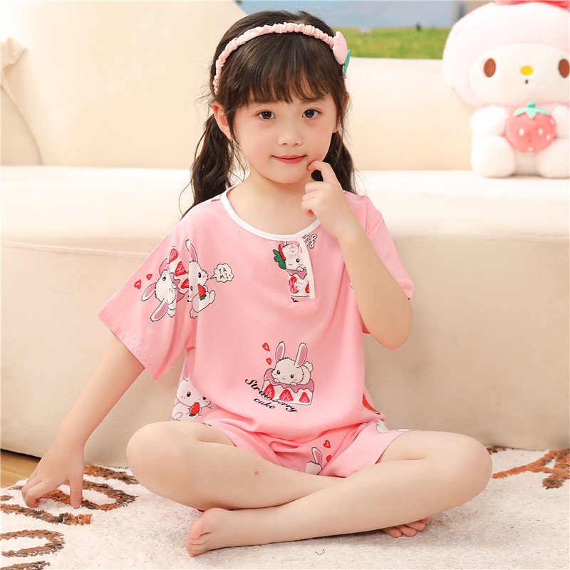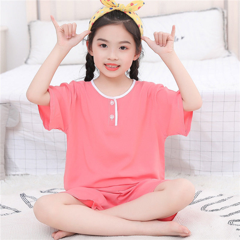 여름 어린이 면화 실크 잠옷 세트 반팔 반바지 면화 실크 소년과 소녀 아기 얇은 가정 옷