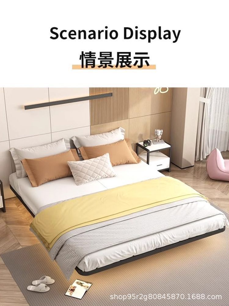 인터넷 연예인 심플한 서스펜션 침대 미.미 스틸 프레임 무소음 침대 프레임 없음 더블 철제 침대 아파트 철제 침대 프레임