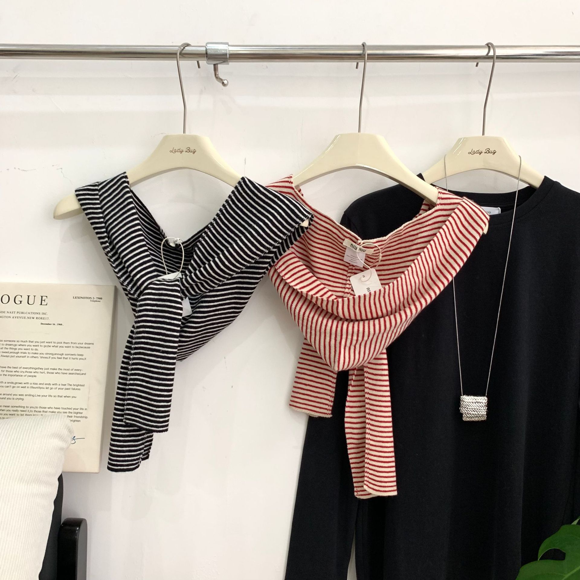 여성을위한 일본 해군 스타일 스트라이프 니트 매듭 후드 숄 봄, 여름, 가을 얇은 세련된 다용도 목 보호 조끼스토어 가기