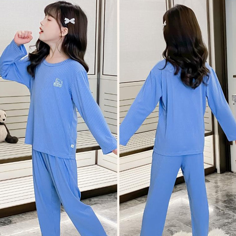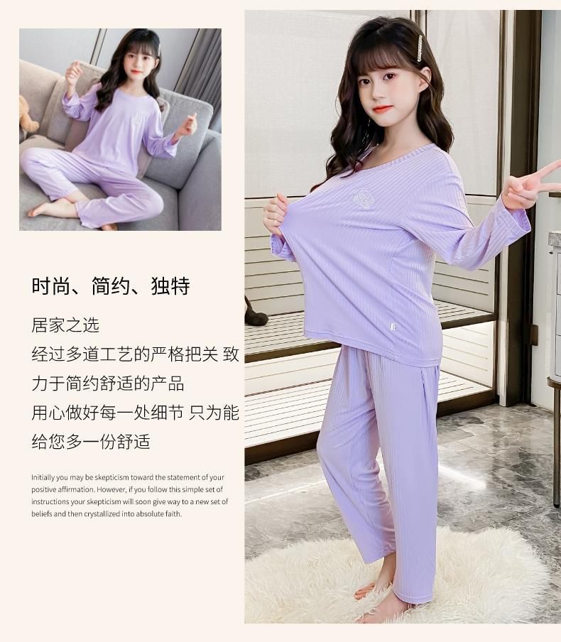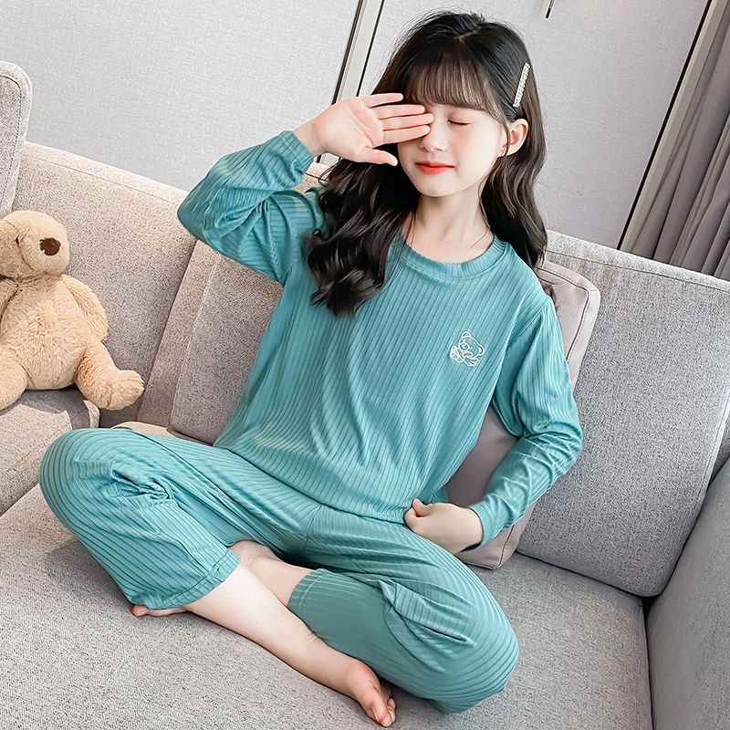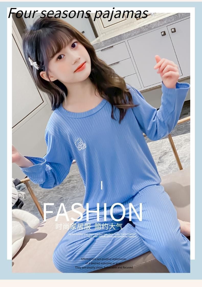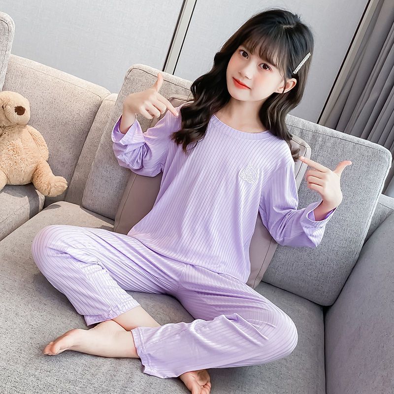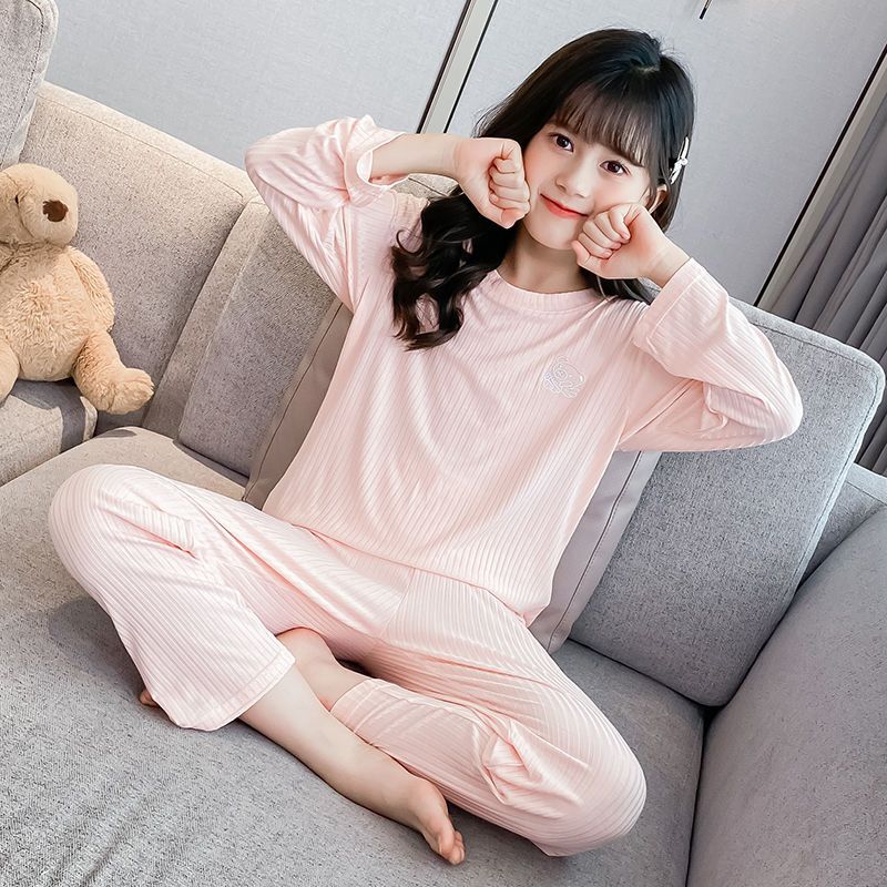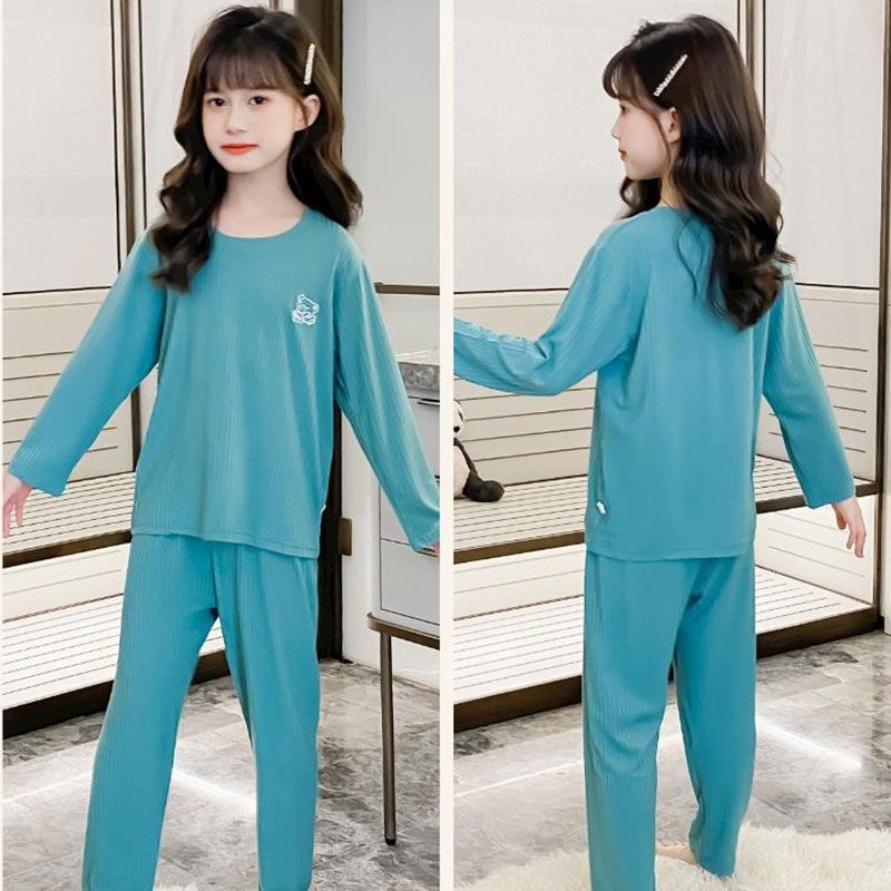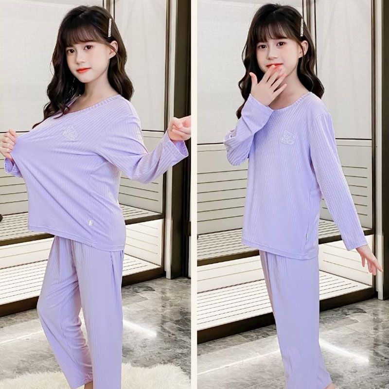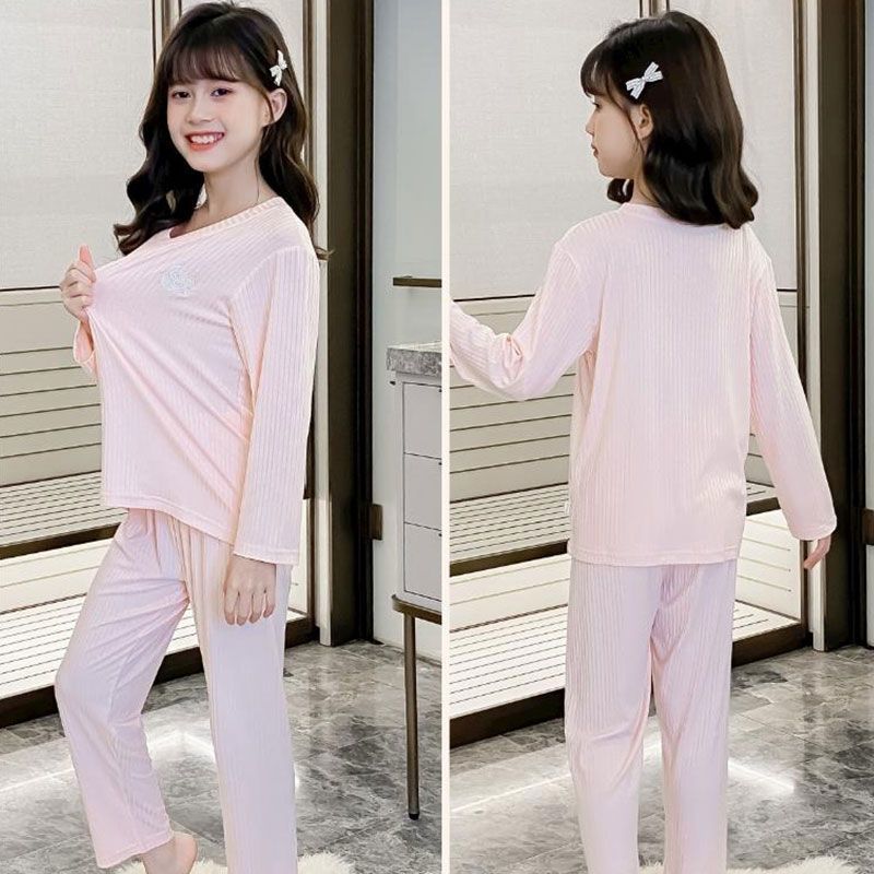 뚱뚱한 소녀를 위한 봄, 가을 긴팔 잠옷 세트, 루즈하고 얇고 패셔너블한 아우터, 아동용 가정복, 큰 아동용 에어컨 의류스토어 가기