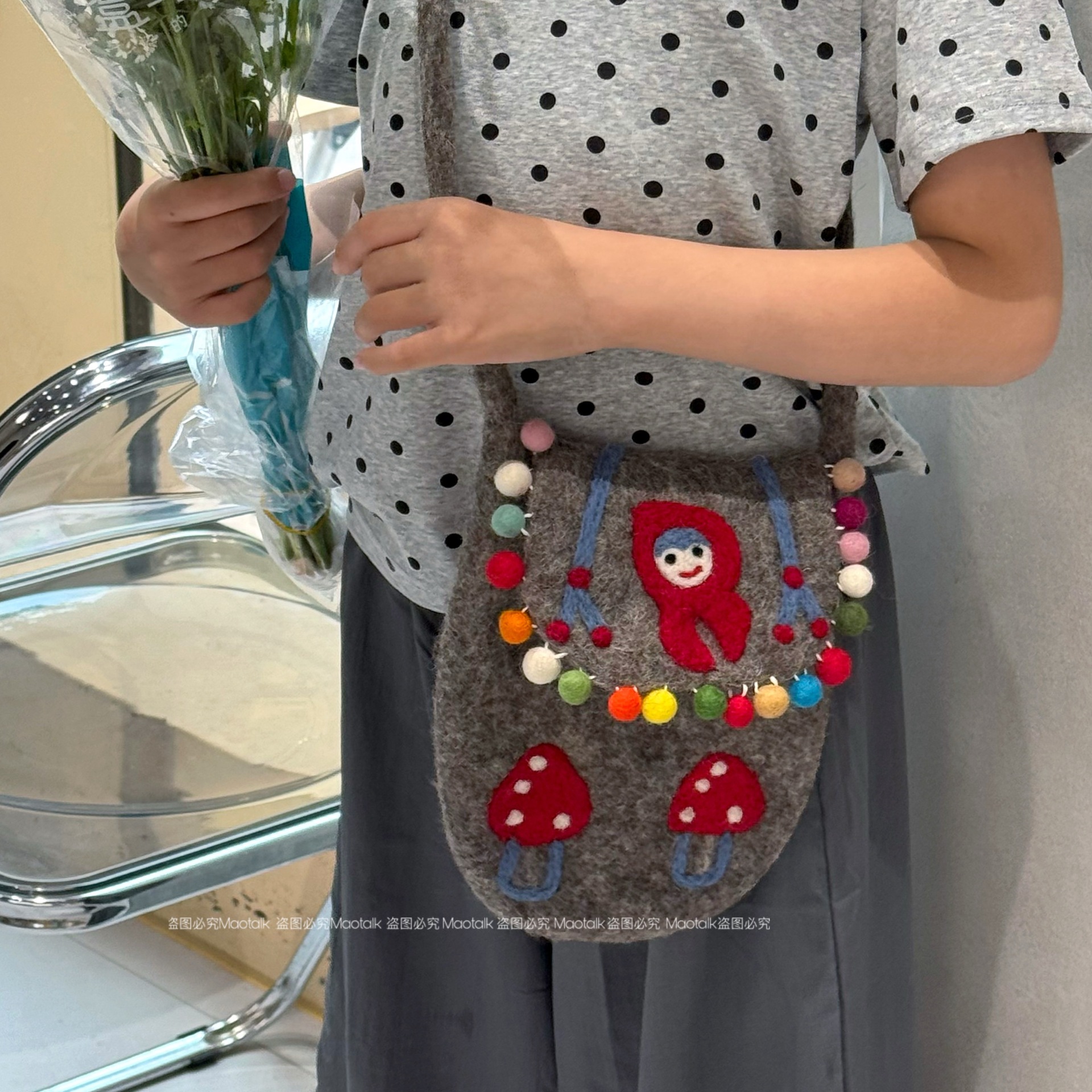 오리지널 네팔 핸드메이드 버섯 소녀 울 펠트 크로스백 고품질 인스 스타일 데일리 통근 매칭