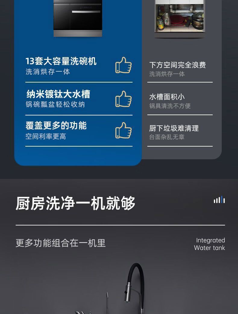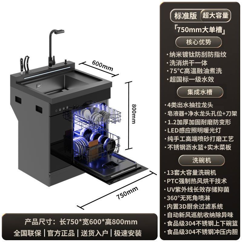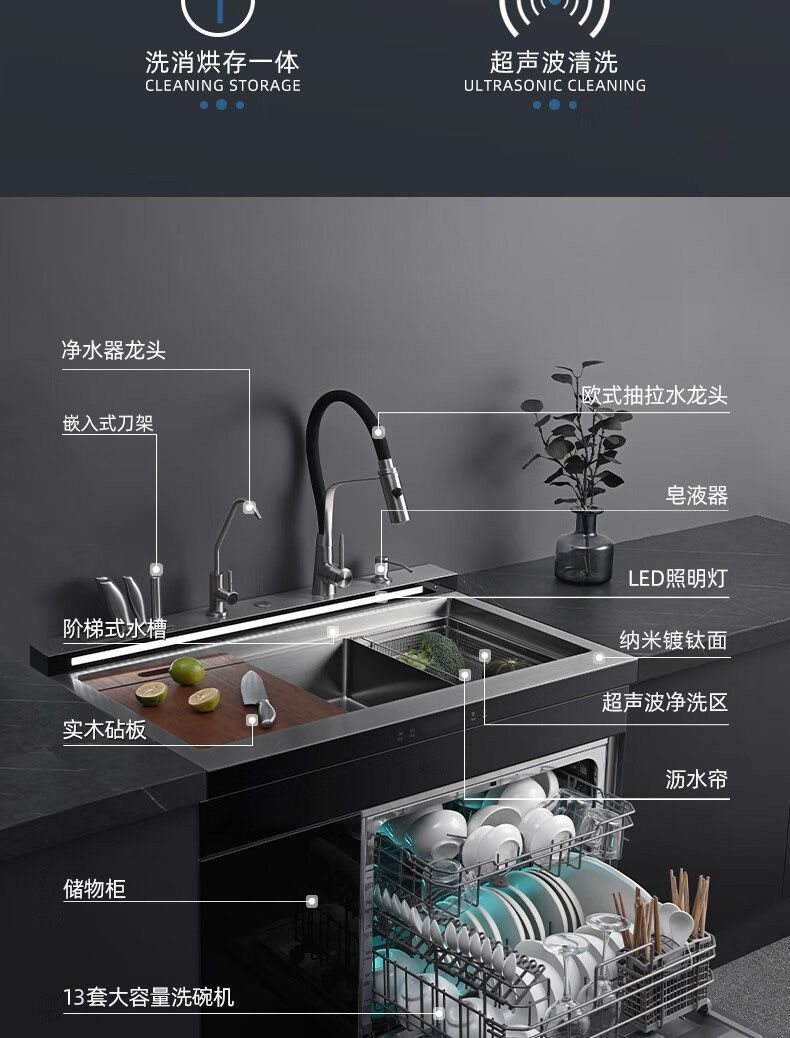 Pin Guan Martian 통합 싱크대 식기 세척기 완전 자동 가정용 가변 주파수 건조 식기 세척기 싱크대 통합스토어 가기