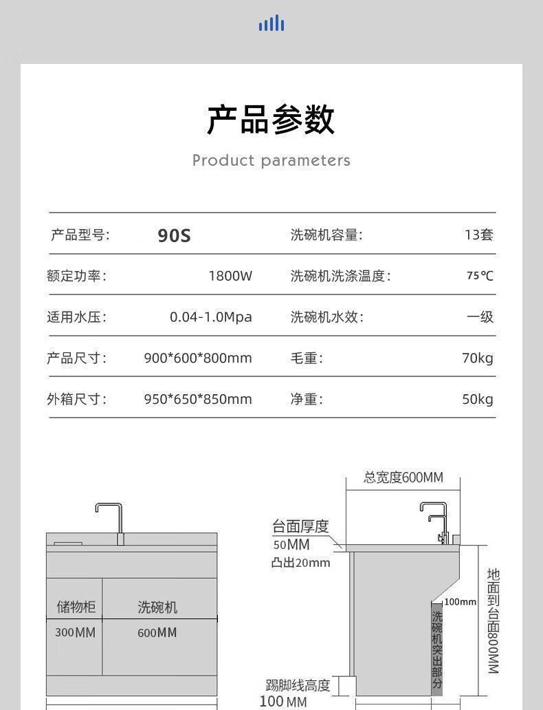 • 900mm 나노 대형 단일 탱크 - 대용량 식기세척기 13세트