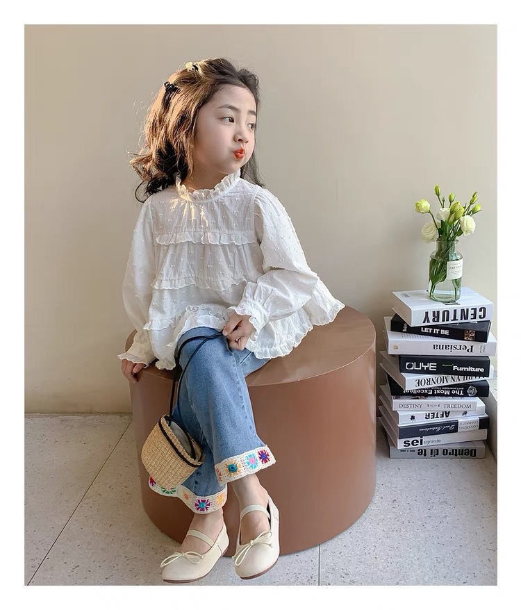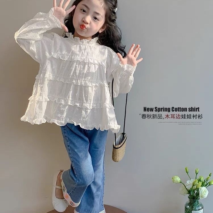 여자 셔츠 봄 2025 새로운 한국 스타일 봄 스타일 아기 소녀 긴팔 가을 탑 순수 코튼 인형 셔츠스토어 가기