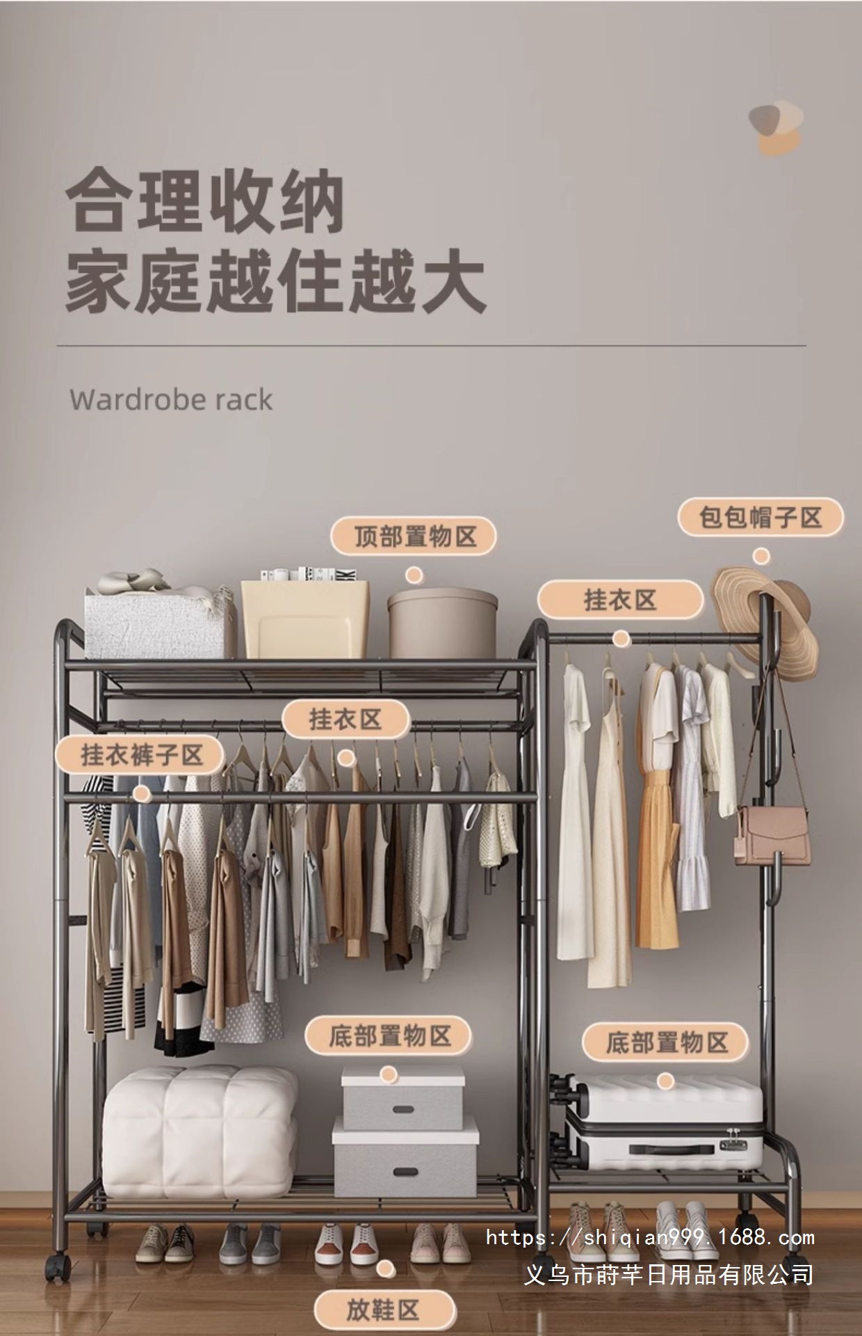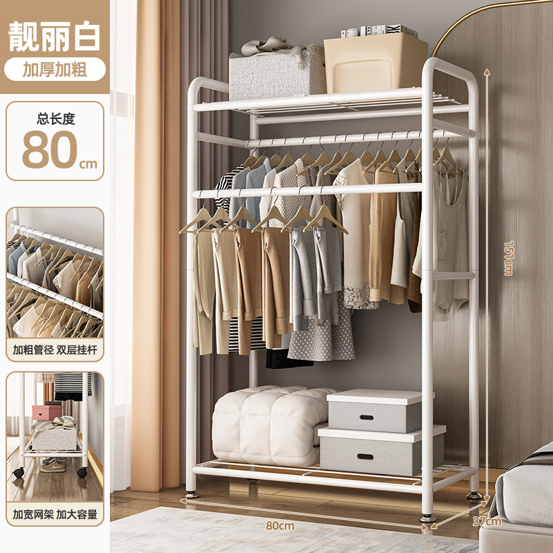 옷걸이 바닥 침실 홈 이동식 이중 막대 보관 옷걸이 간단한 보관 랙 수직 옷 건조 랙스토어 가기