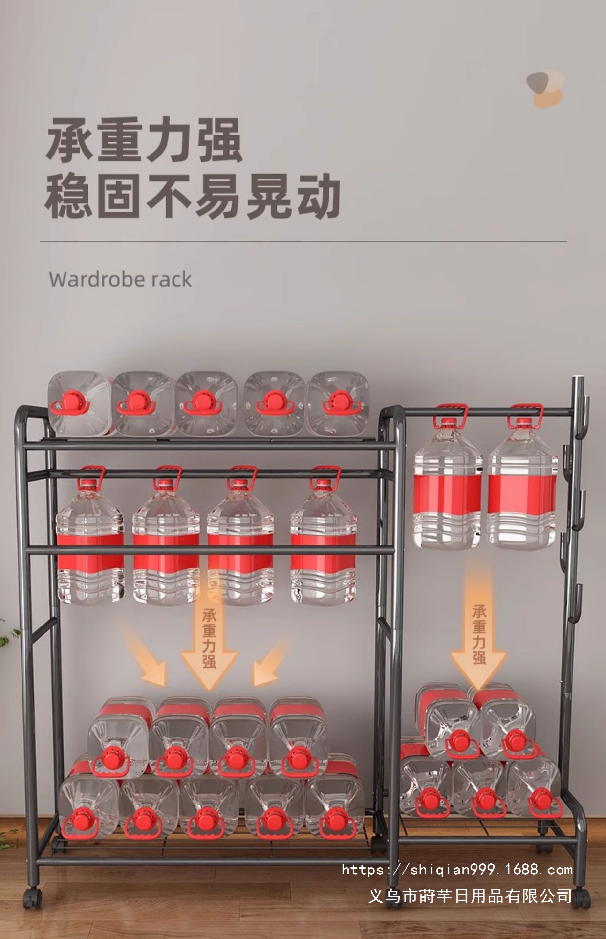• (핫셀링 공간) 155cm - 폴 3개 [천장+상하수납망+걸이가방+바퀴] 쿨블랙