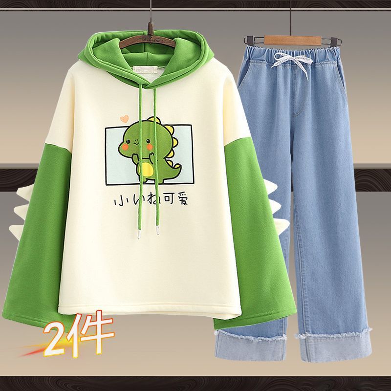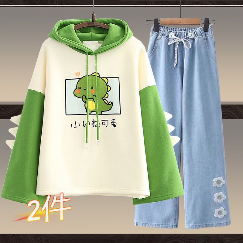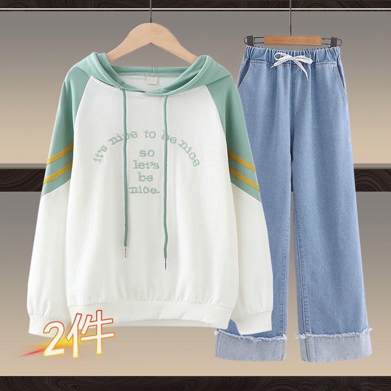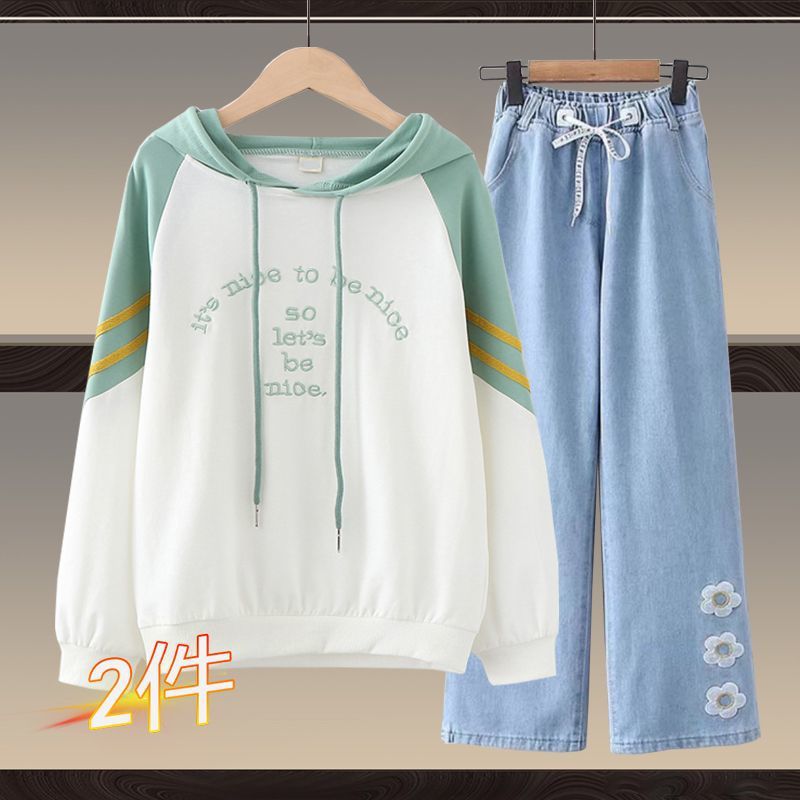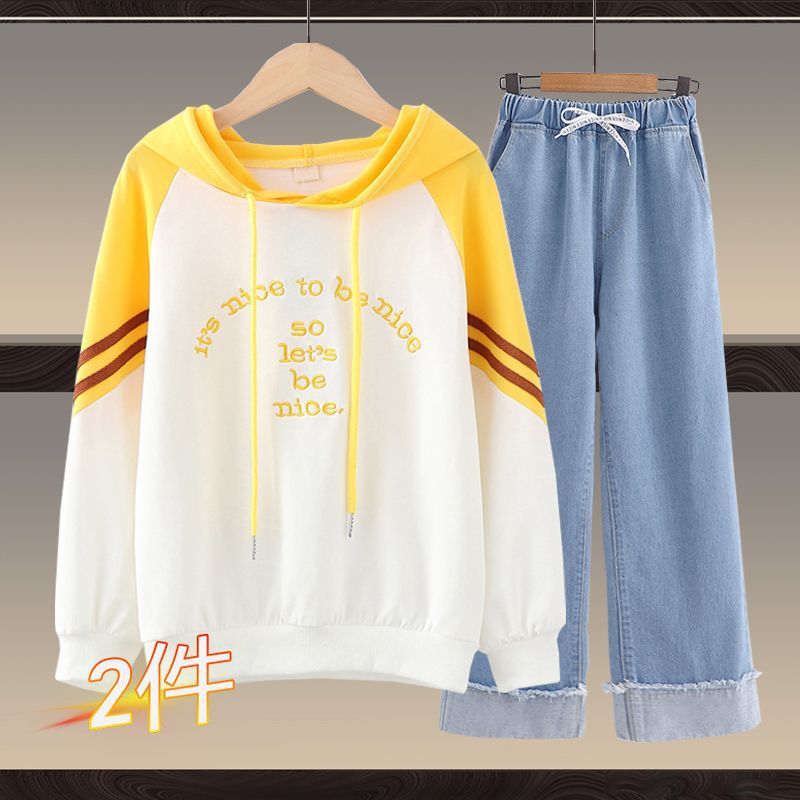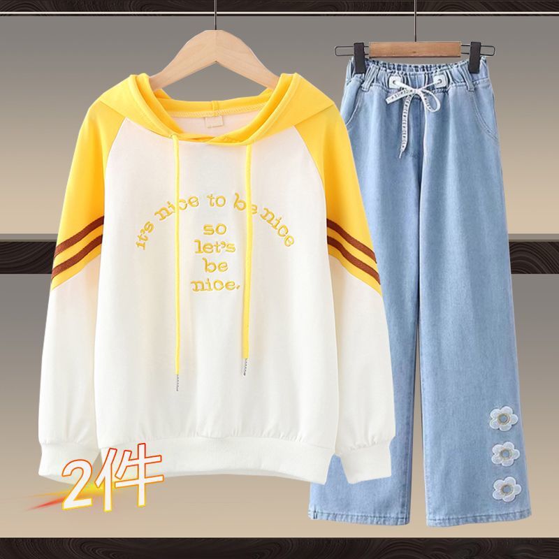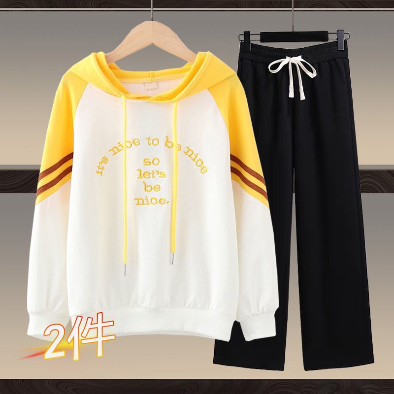 여아 정장 네이비 칼라 쉬폰 셔츠 긴팔 2025 봄, 가을 학생 스위트 탑 와이드 레그 팬츠 투피스 싱글/세트스토어 가기