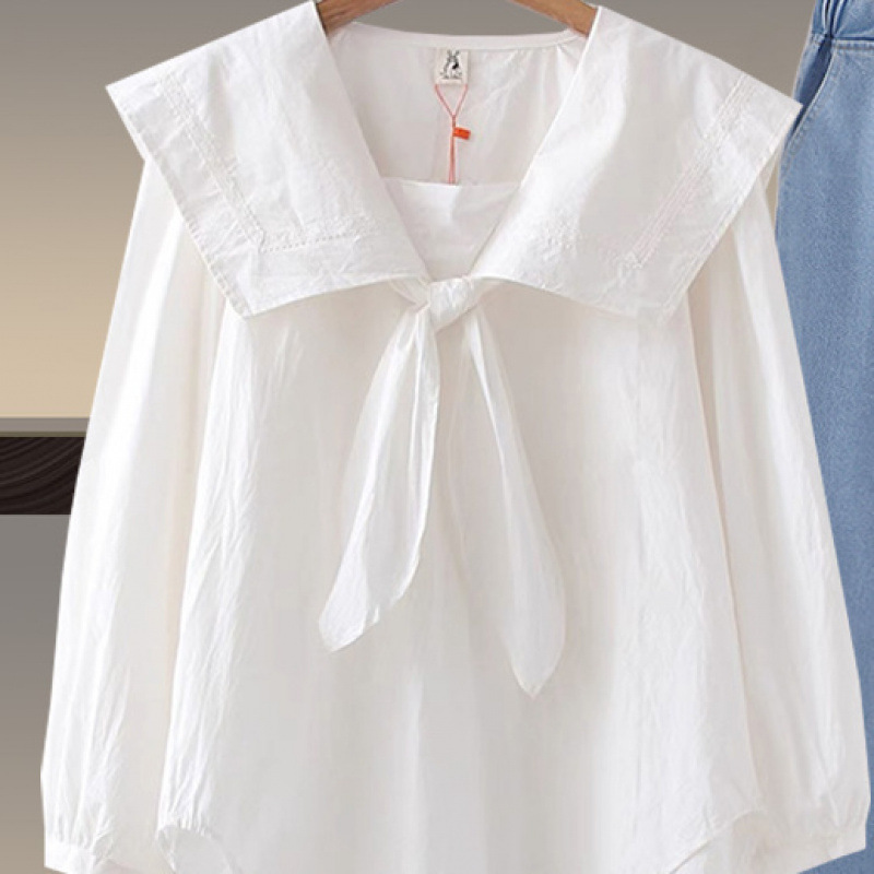 • 화이트 네이비 칼라 긴소매 + 나팔바지