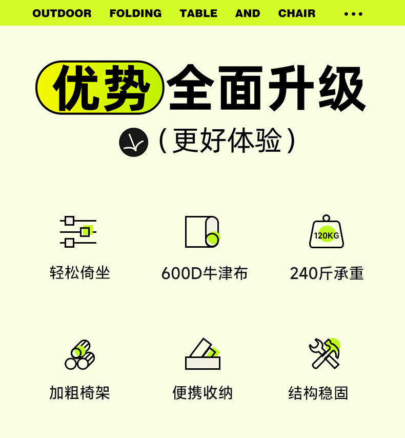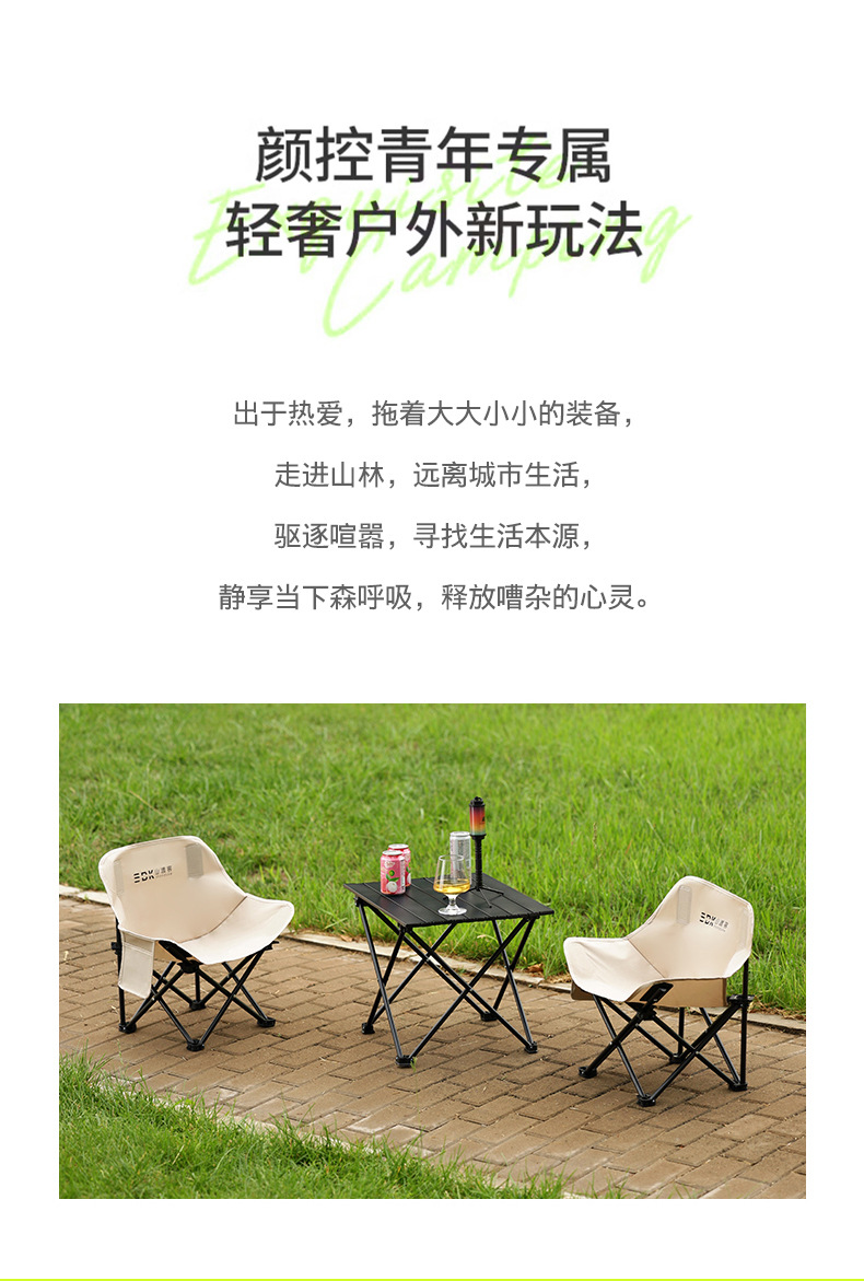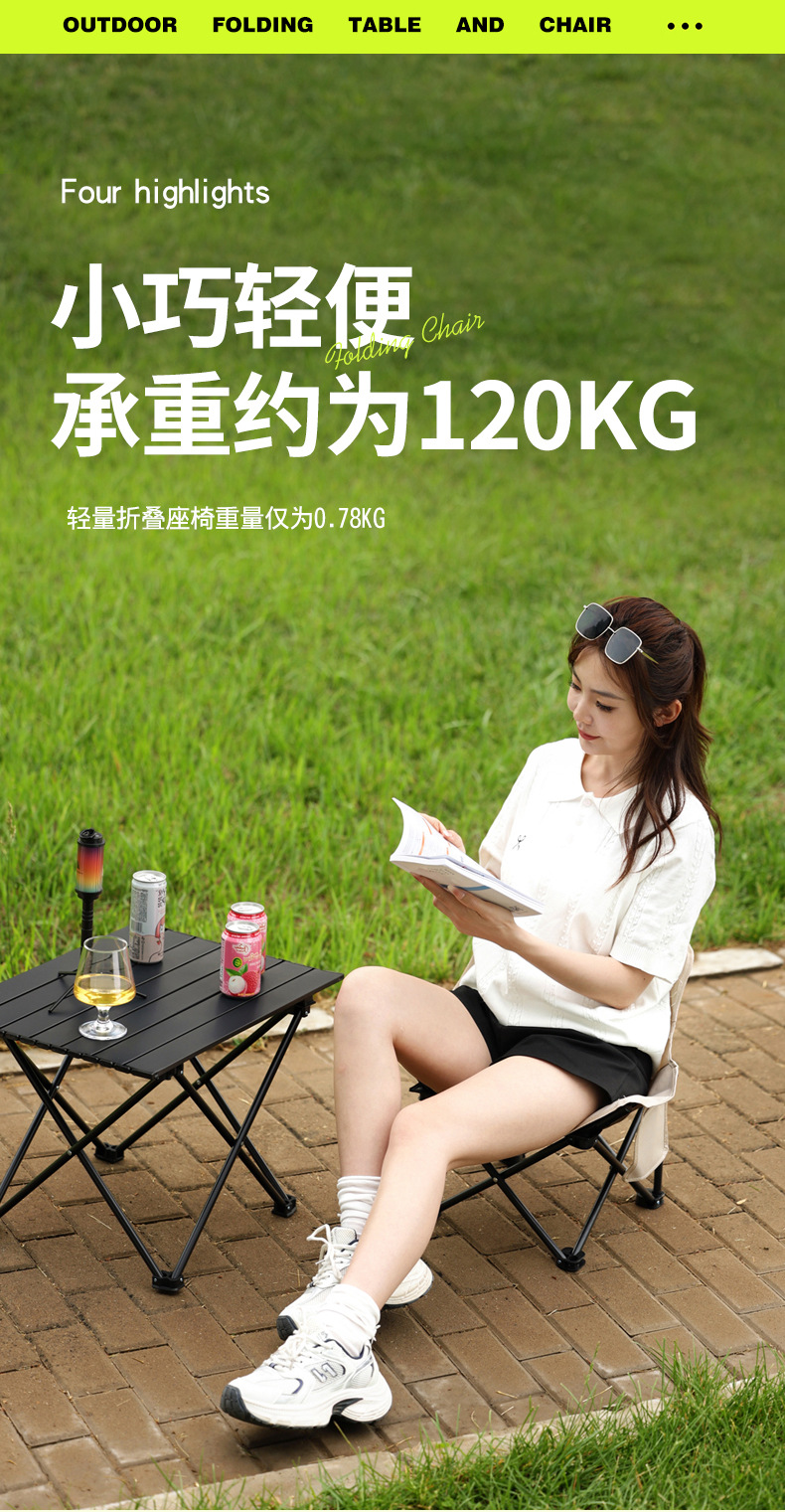 山渡客户外折叠椅轻便小号月亮椅加厚加粗便携桌椅套装露营野餐