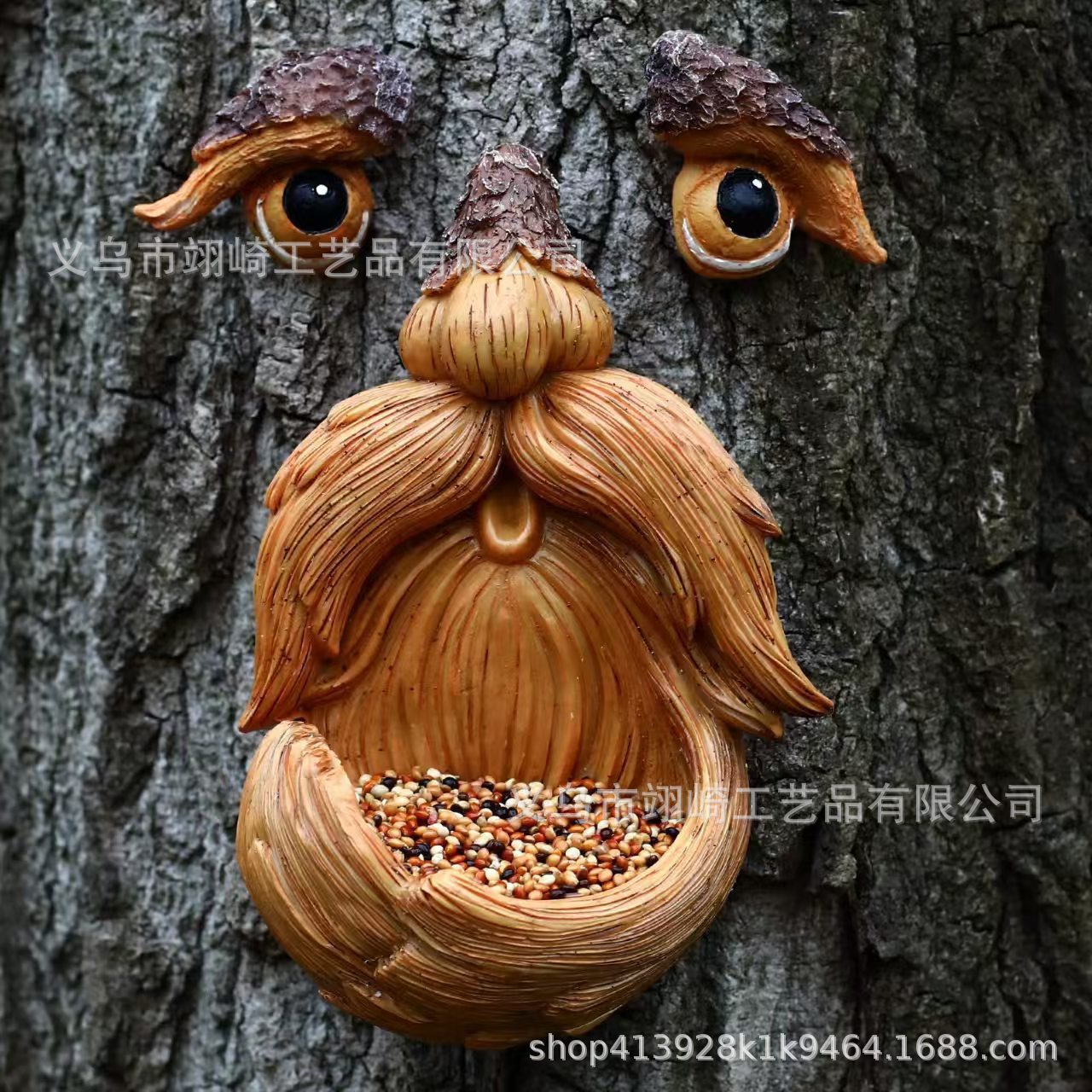 국경 간 인기 있는 나무 괴물 새 모이통, 창의적인 정원 야외 새 모이통, 수지 공예품, 나무껍질 맞춤형 장식스토어 가기