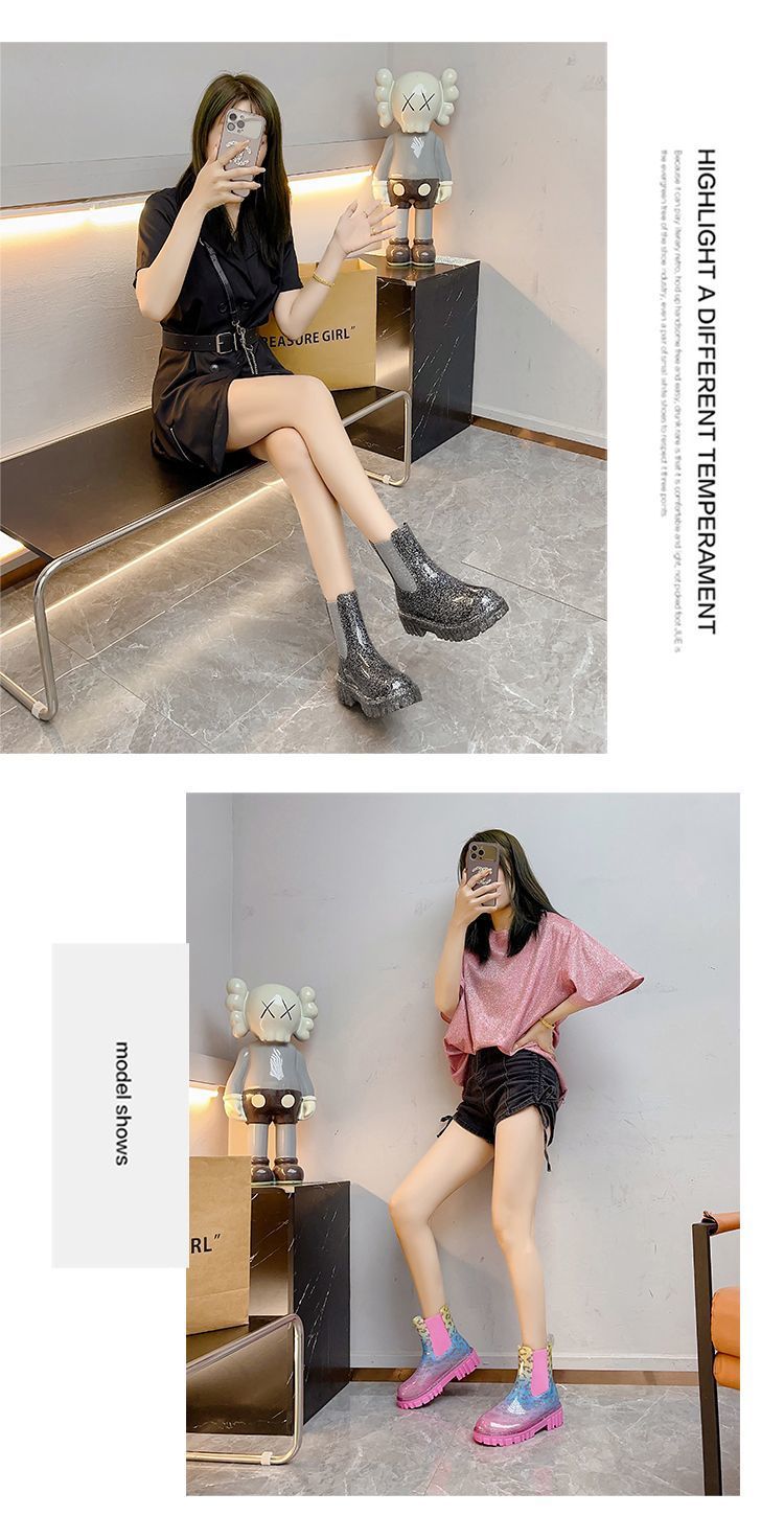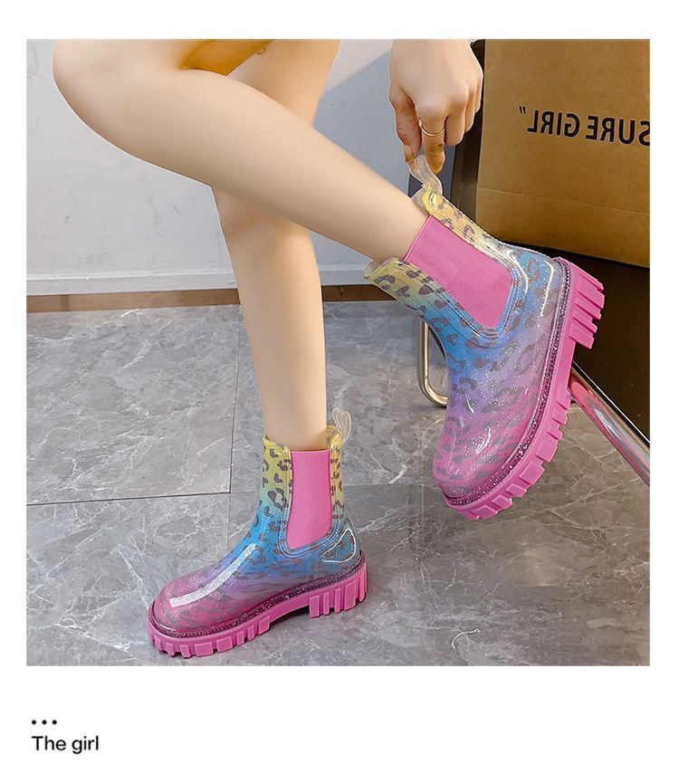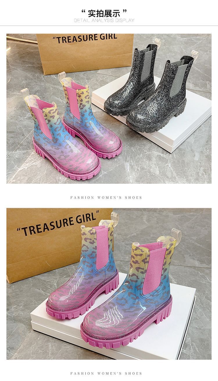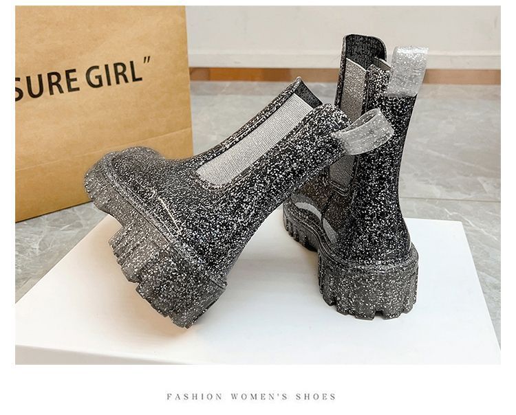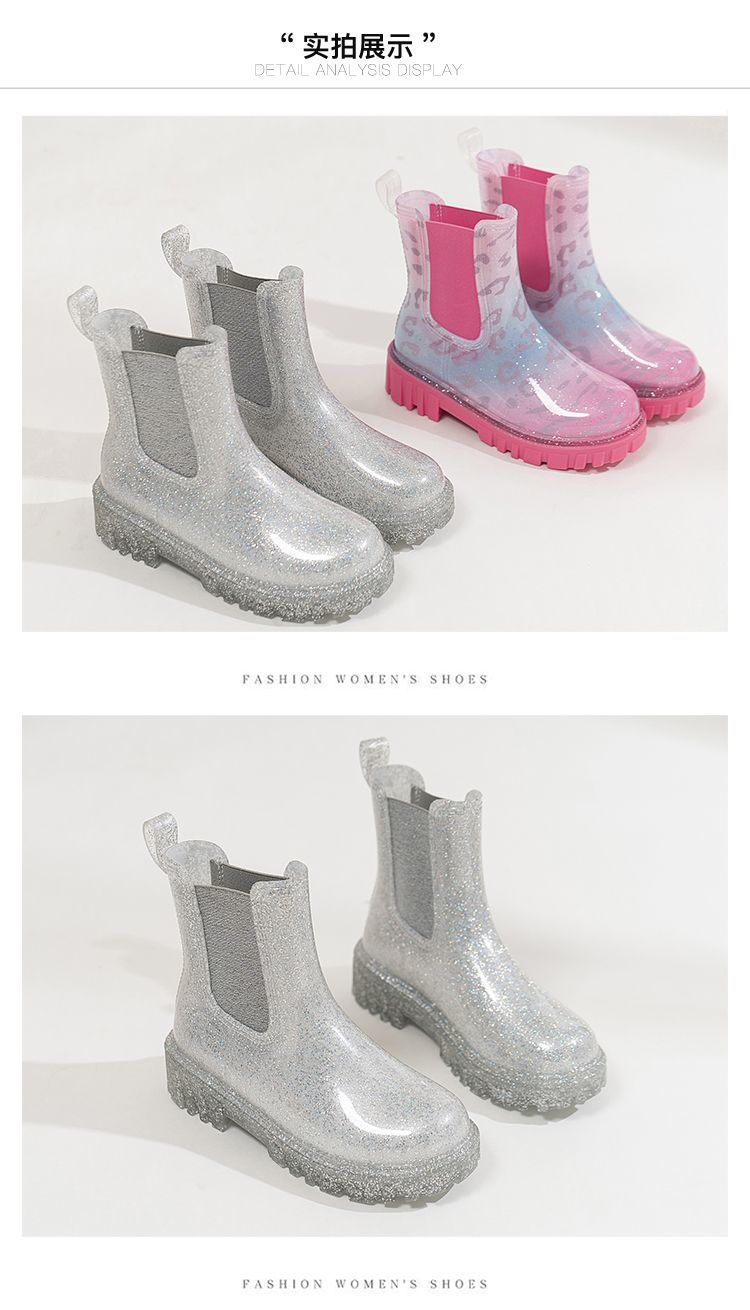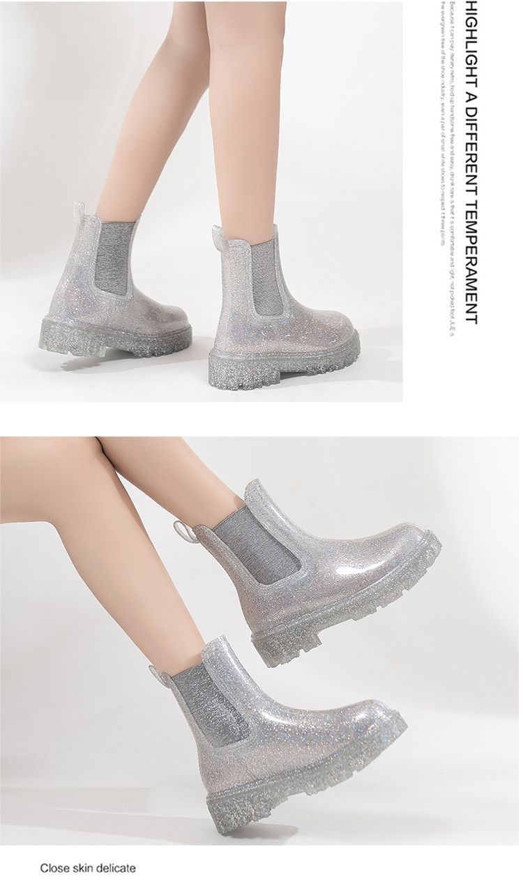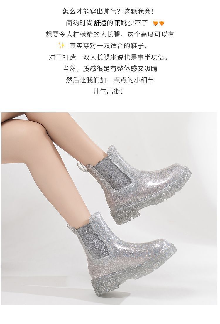 인터넷 연예인 여성 장화 짧은 새로운 패션 겉옷 첼시 투명 장화 방수 미끄럼 방지 고무 신발 워터 슈즈