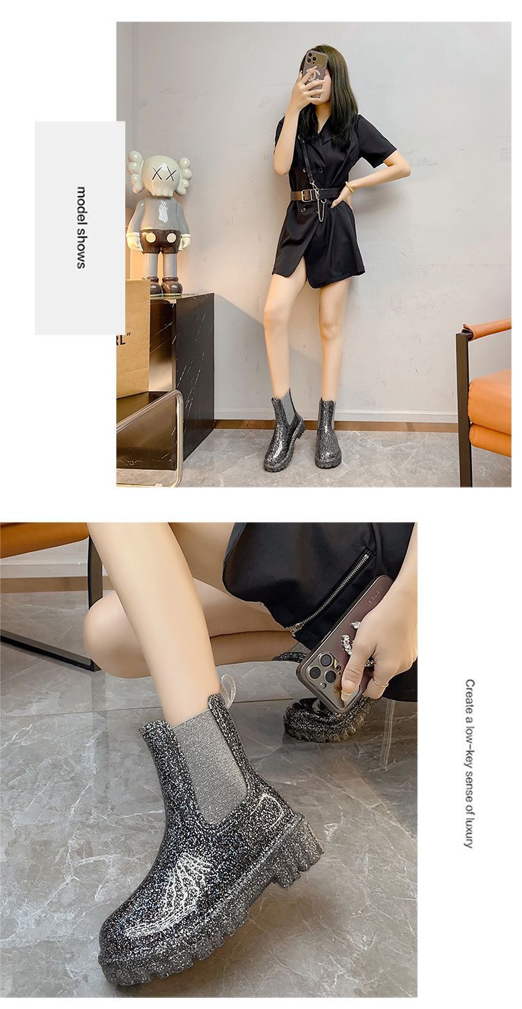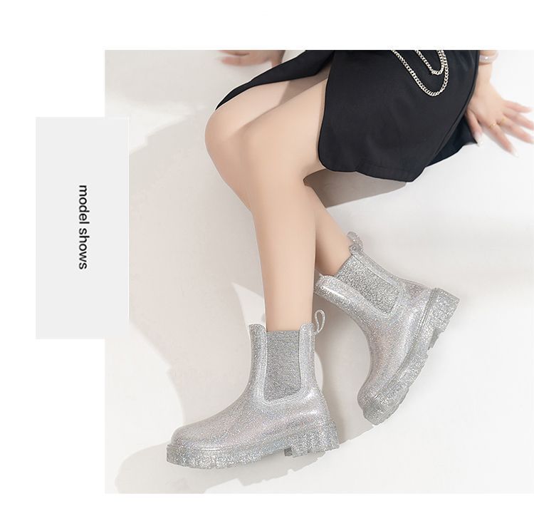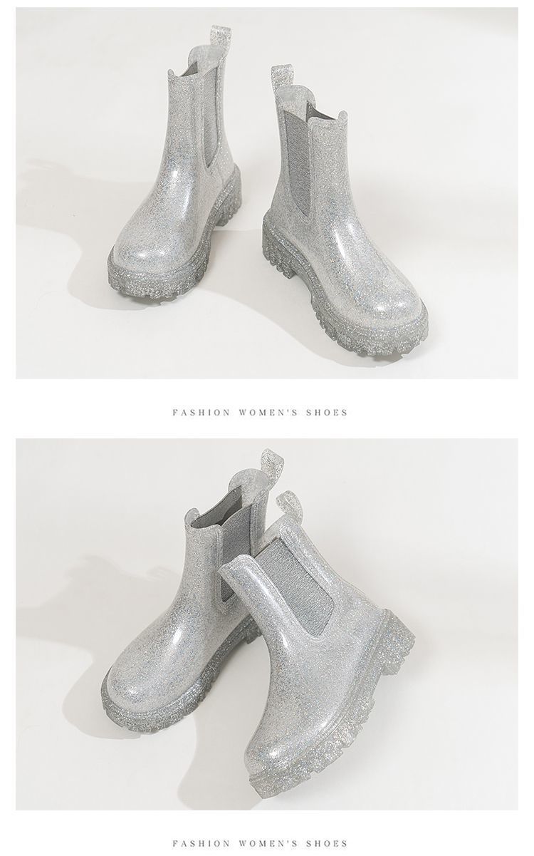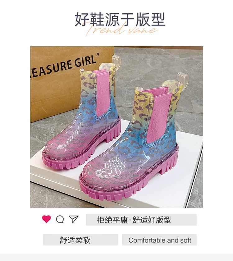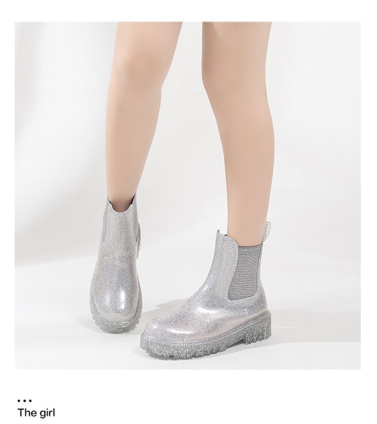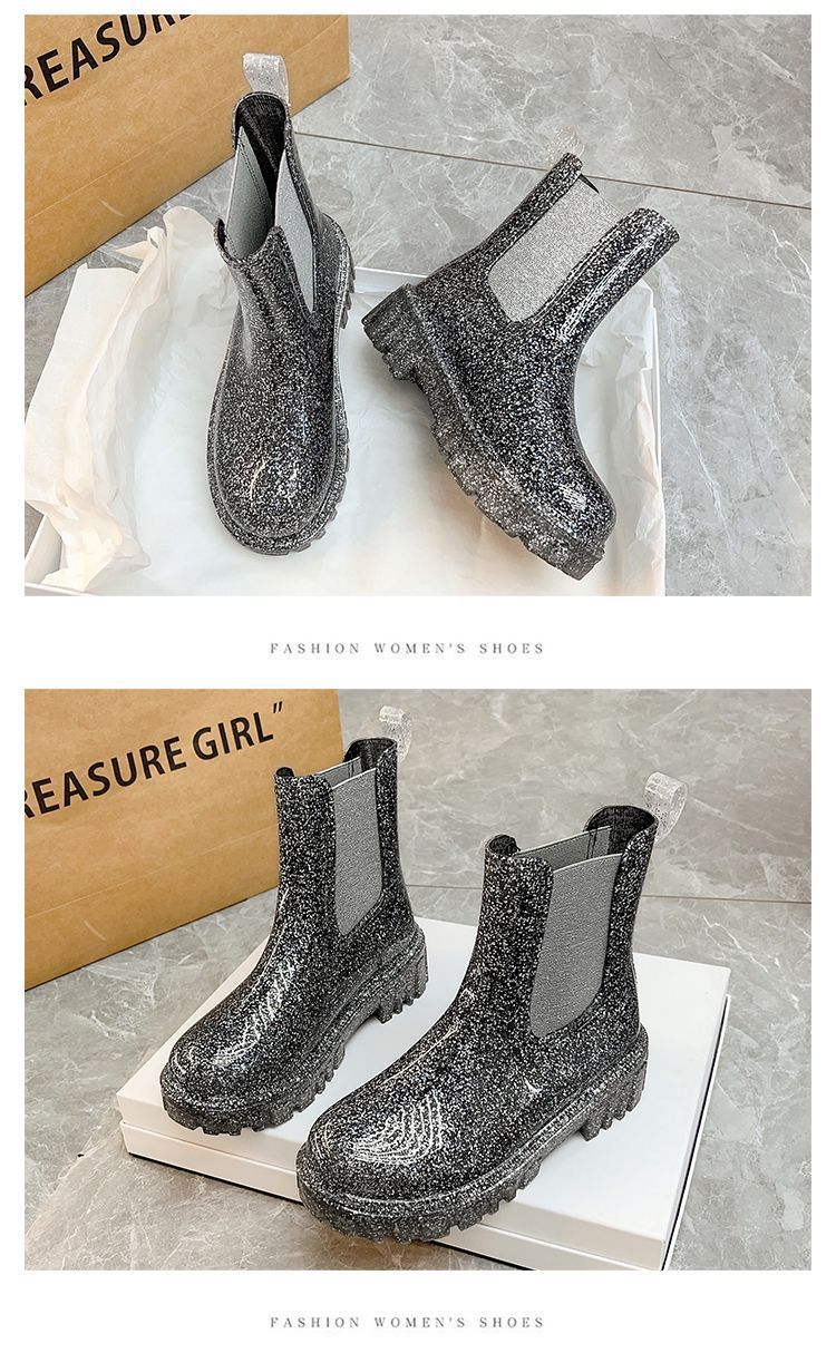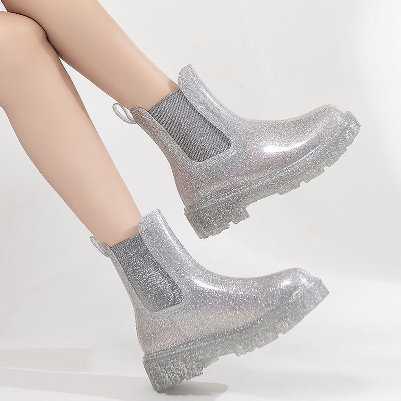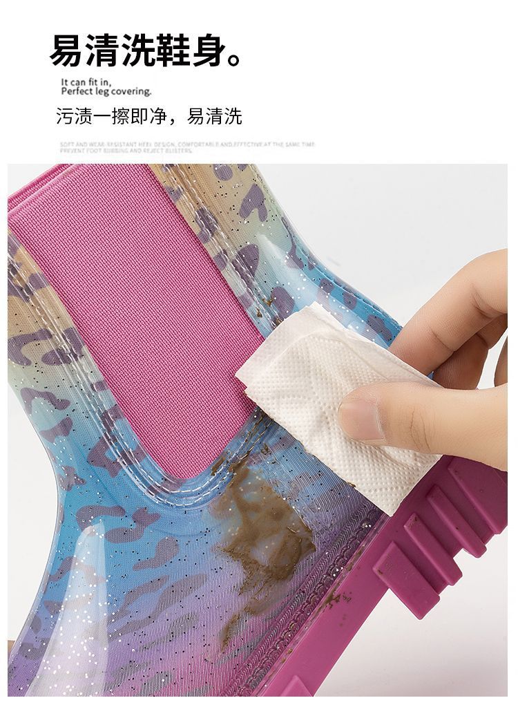 인터넷 연예인 여성 장화 짧은 새로운 패션 겉옷 첼시 투명 장화 방수 미끄럼 방지 고무 신발 워터 슈즈