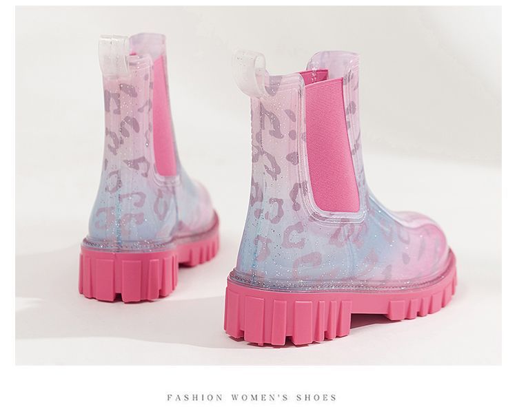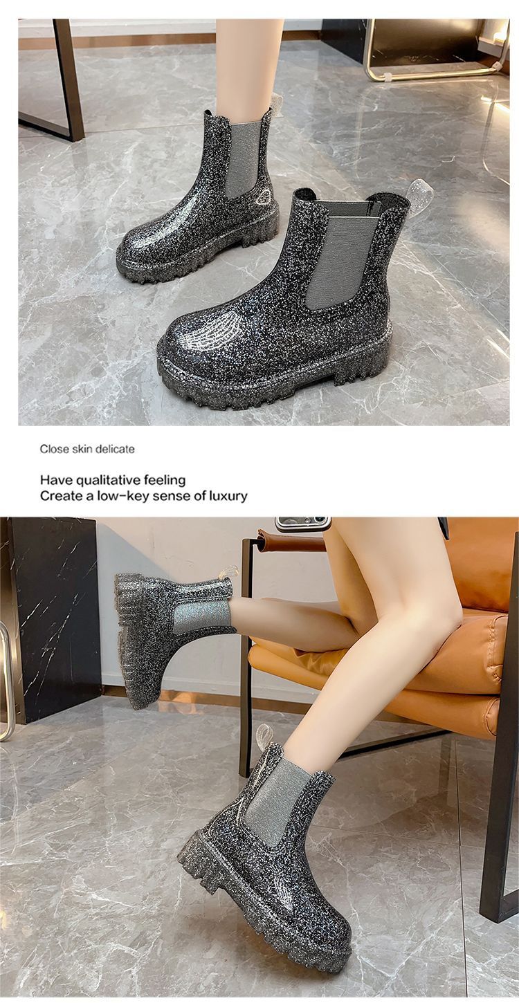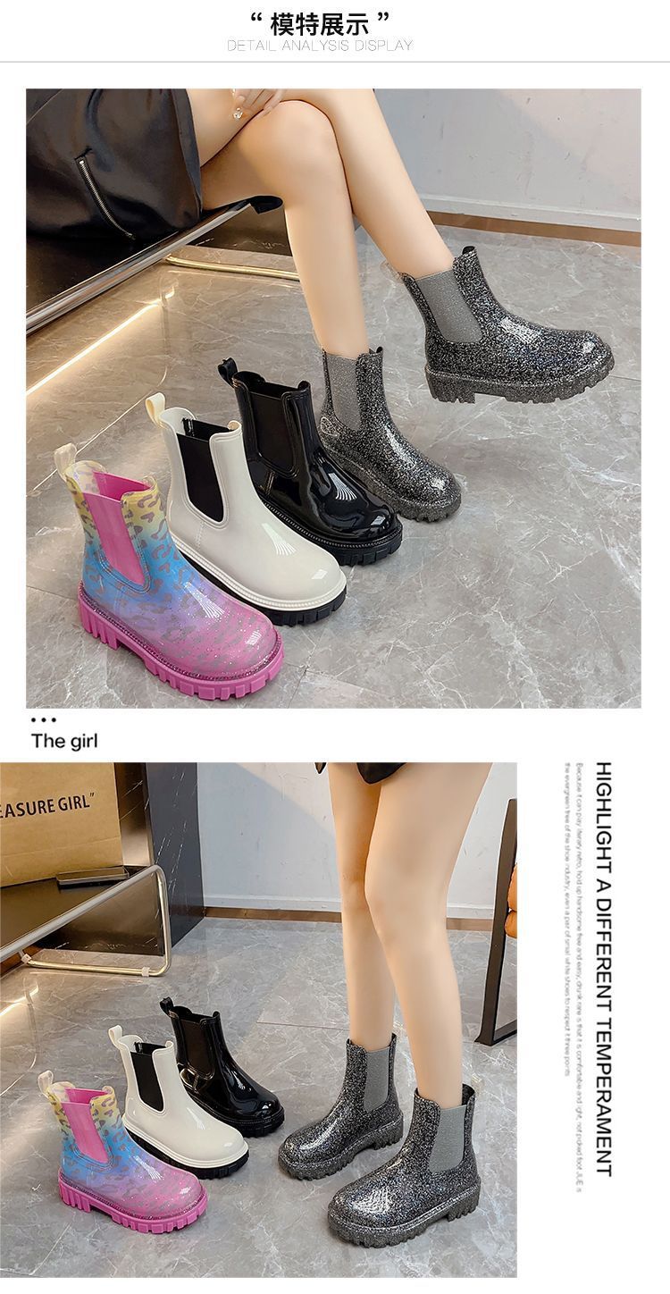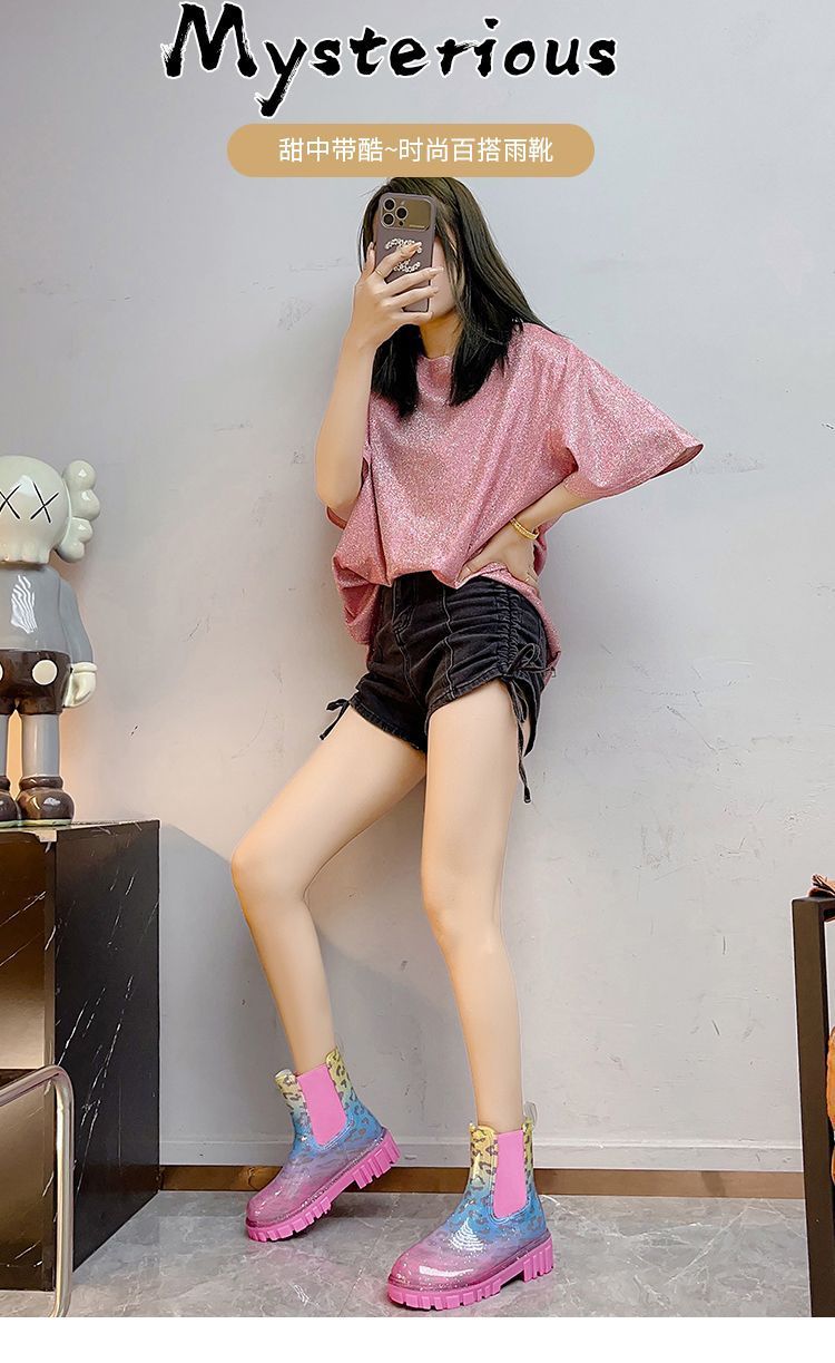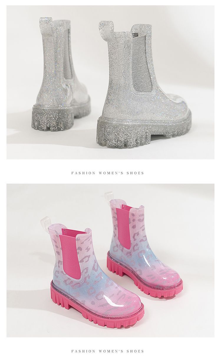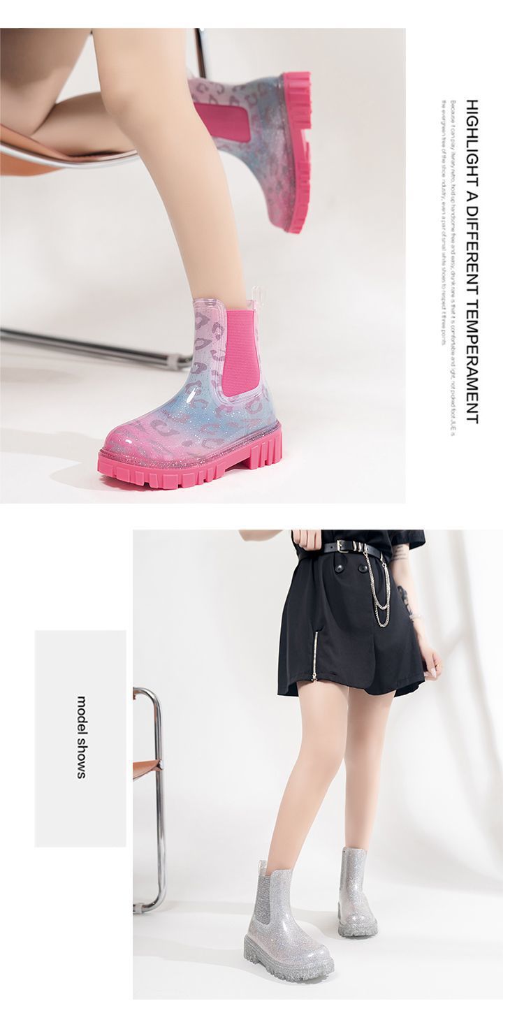 인터넷 연예인 여성 장화 짧은 새로운 패션 겉옷 첼시 투명 장화 방수 미끄럼 방지 고무 신발 워터 슈즈