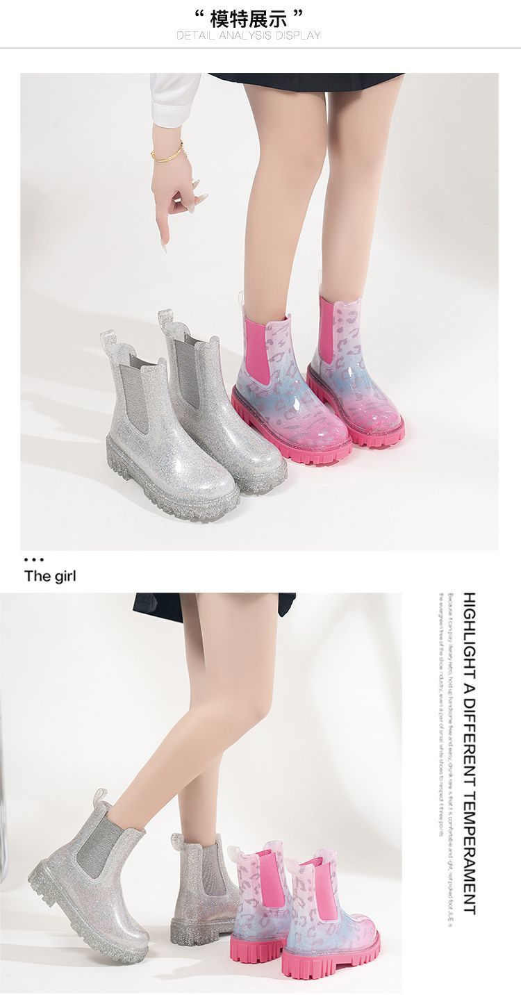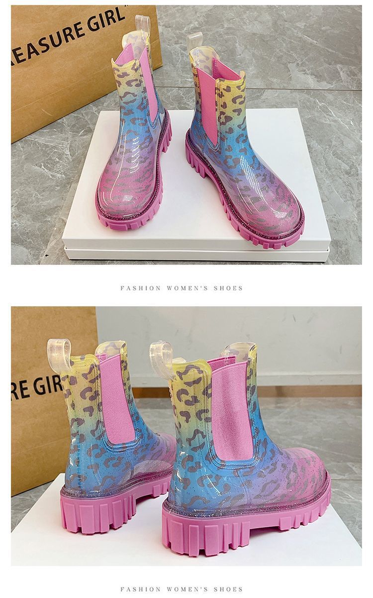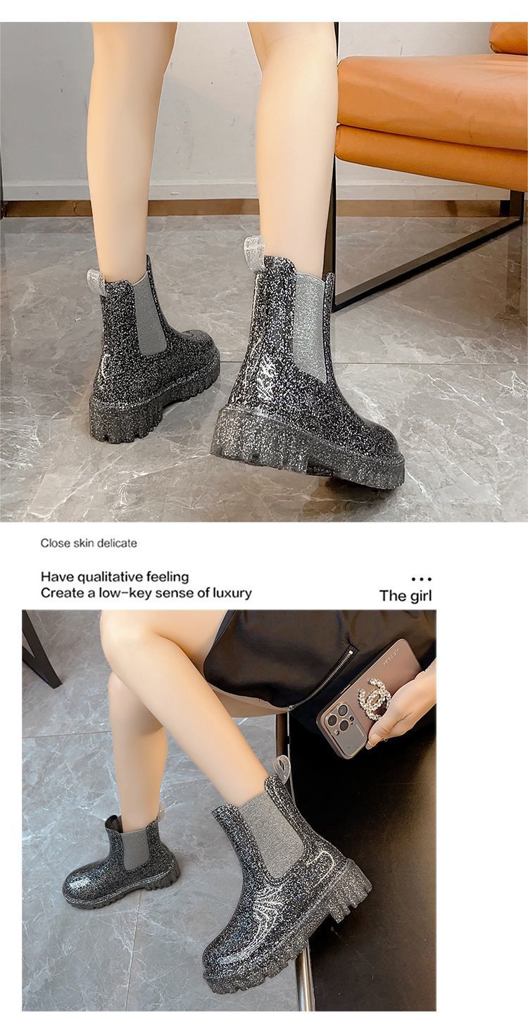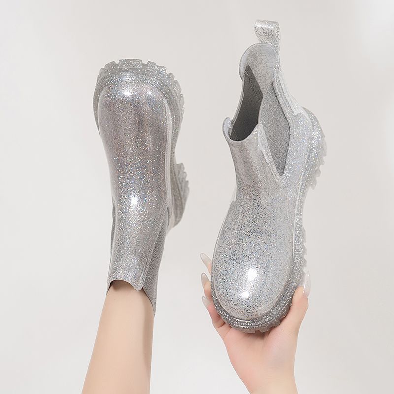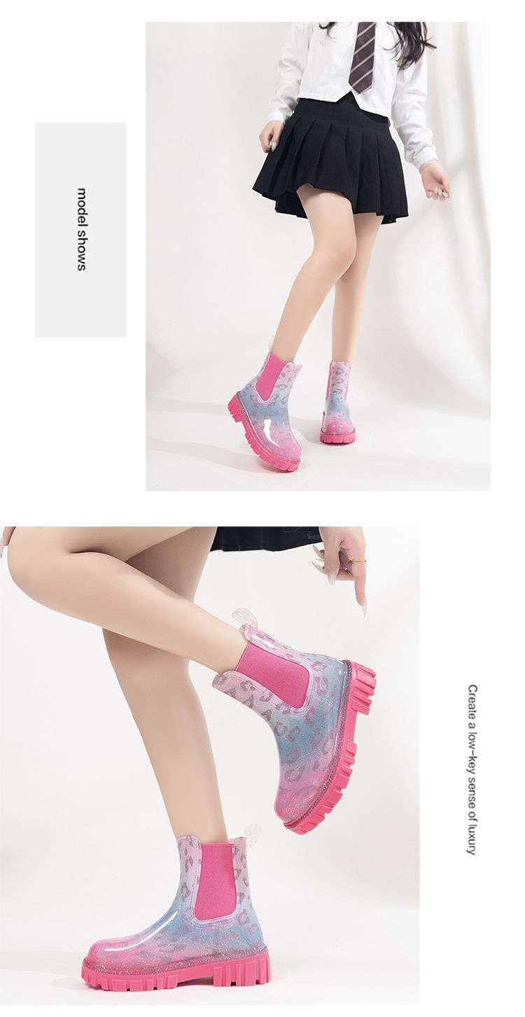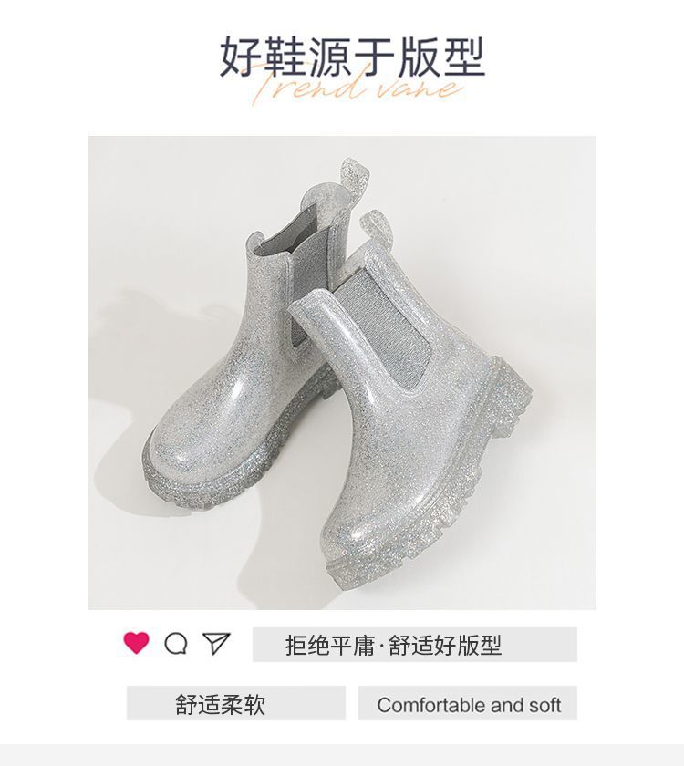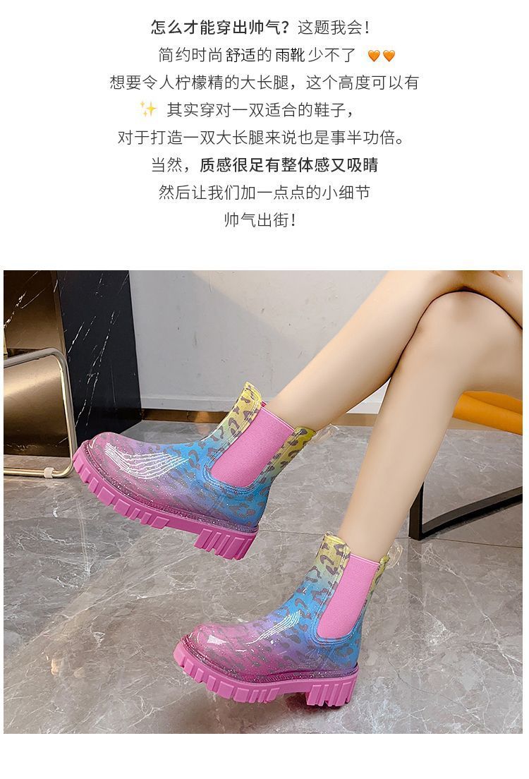 인터넷 연예인 여성 장화 짧은 새로운 패션 겉옷 첼시 투명 장화 방수 미끄럼 방지 고무 신발 워터 슈즈