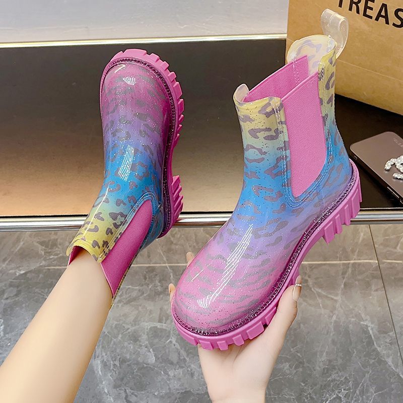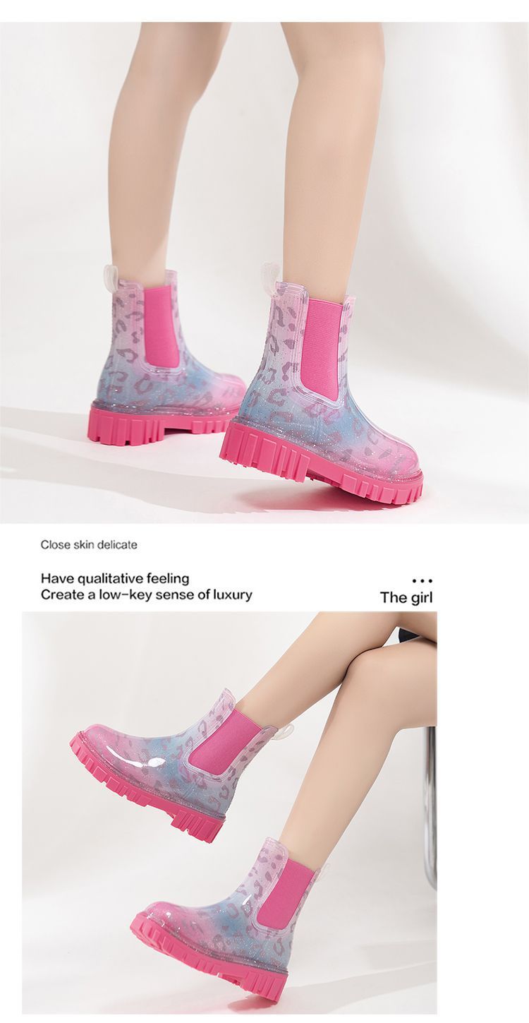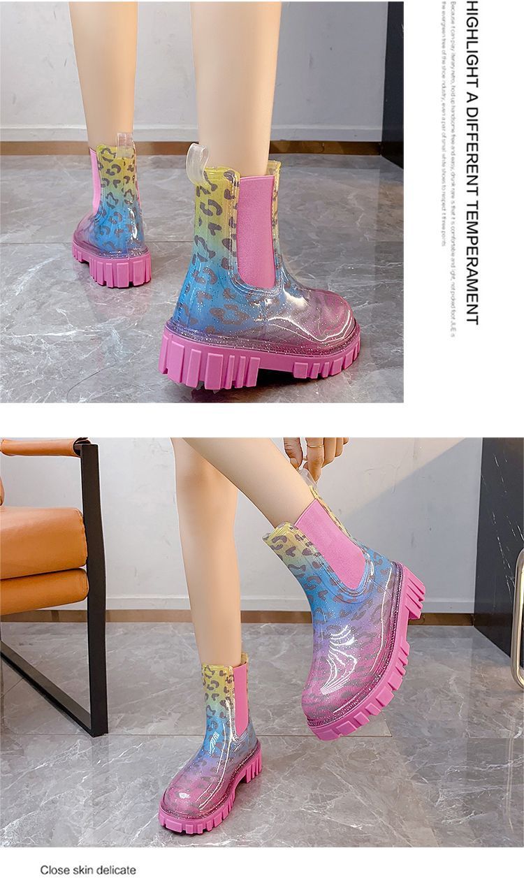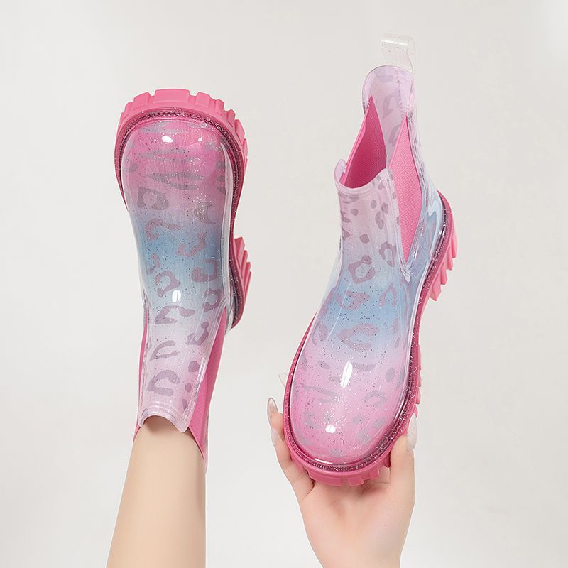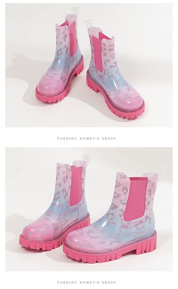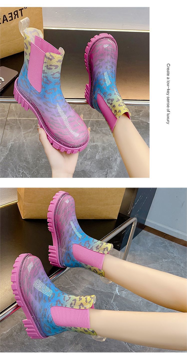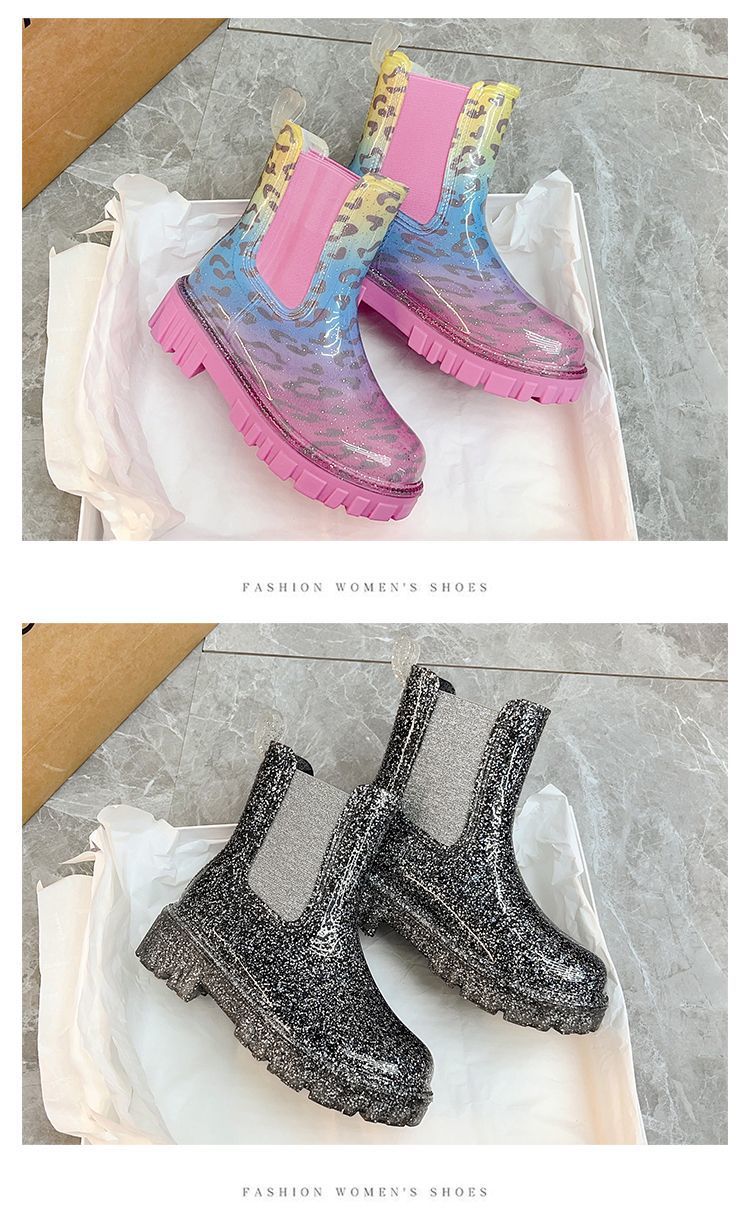 인터넷 연예인 여성 장화 짧은 새로운 패션 겉옷 첼시 투명 장화 방수 미끄럼 방지 고무 신발 워터 슈즈
