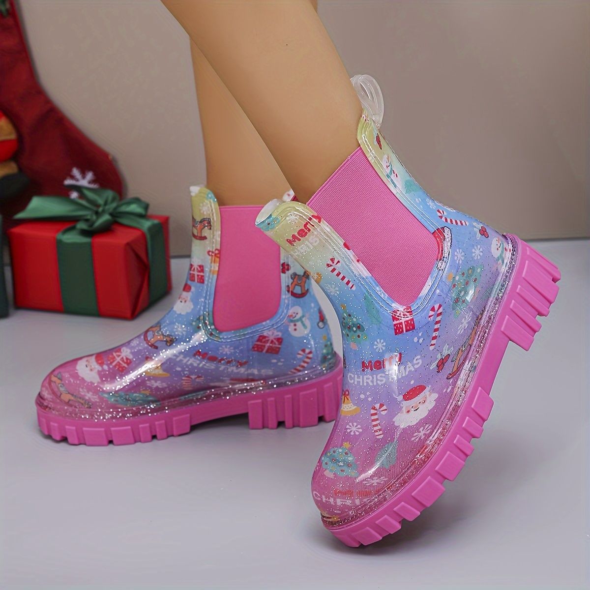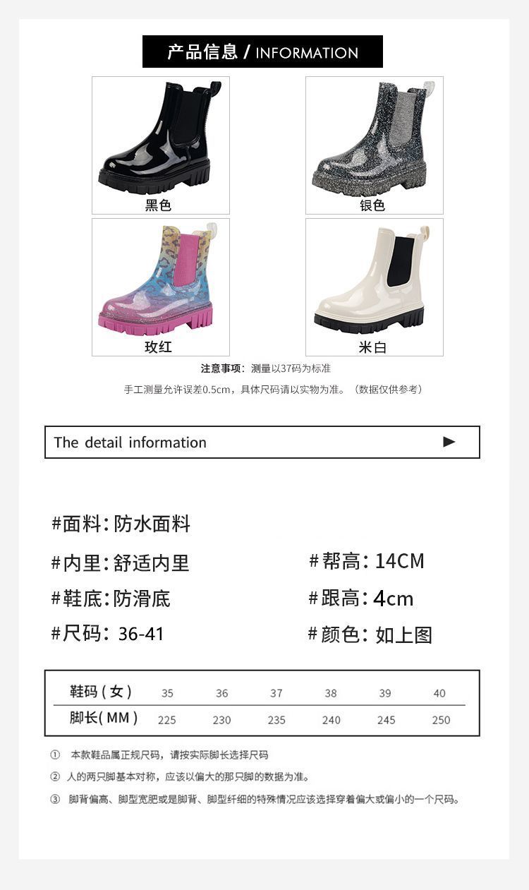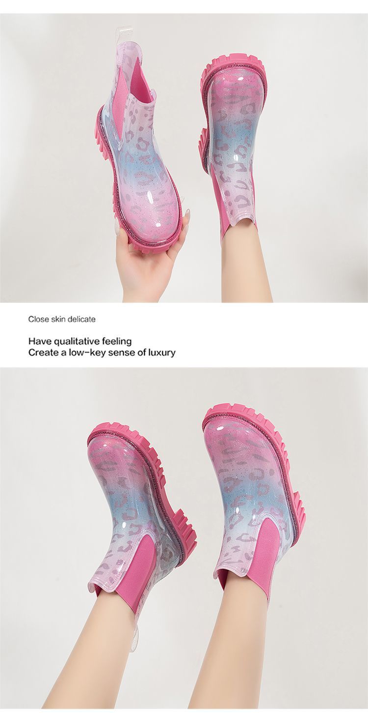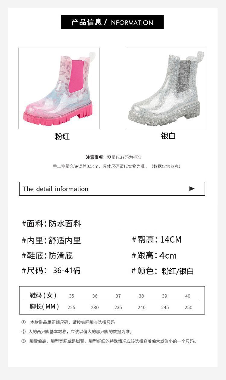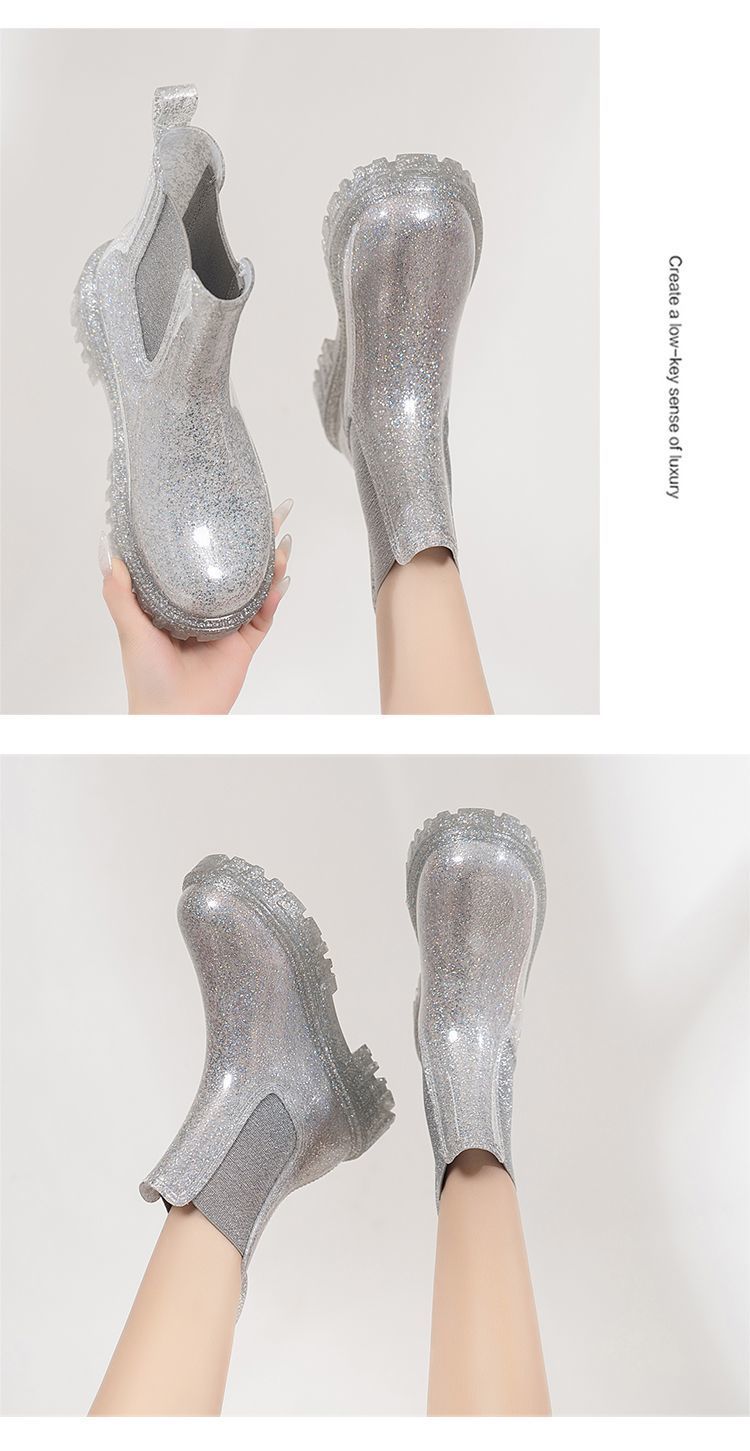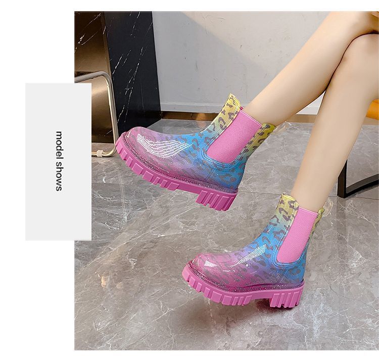 인터넷 연예인 여성 장화 짧은 새로운 패션 겉옷 첼시 투명 장화 방수 미끄럼 방지 고무 신발 워터 슈즈