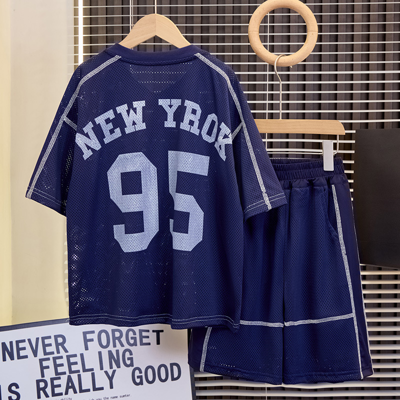 아동복, 큰 소년 여름 속건성 양복, 2025 새로운 스타일, 멋지고 잘 생긴 소년 여름 농구 유니폼, 스포츠 여름 스타일스토어 가기