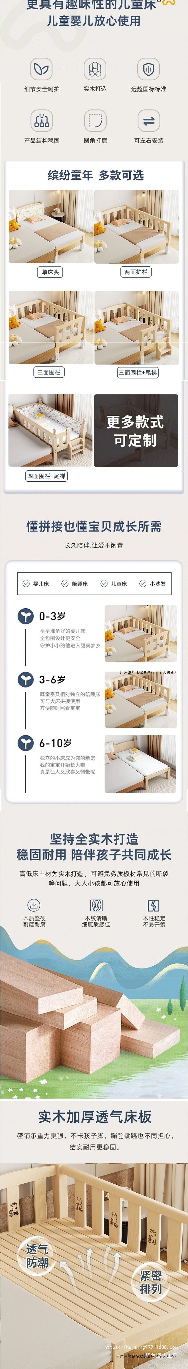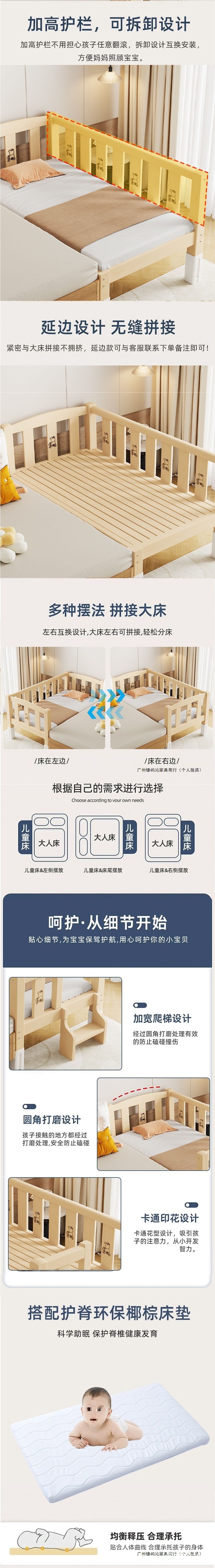 단단한 나무 아기 확장 접합 침대 소녀 싱글 침대 옆 어린이 대형 침대 가드 레일 아기 소년 아기 침대스토어 가기