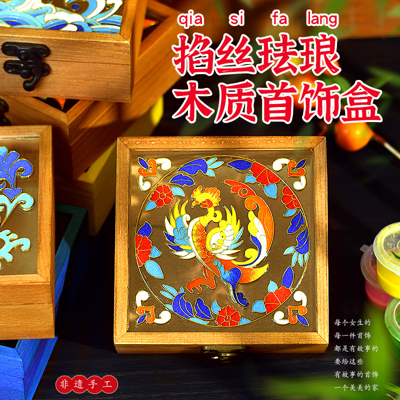 ♔ 중추절 수제 칠보 에나멜 보석 상자 칠보 단단한 나무 드레싱 상자 DIY 팀 빌딩 부모-자식 워밍업 선물스토어 가기