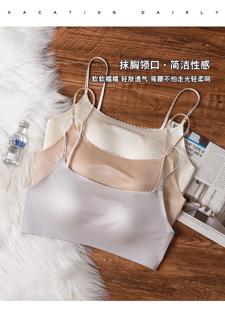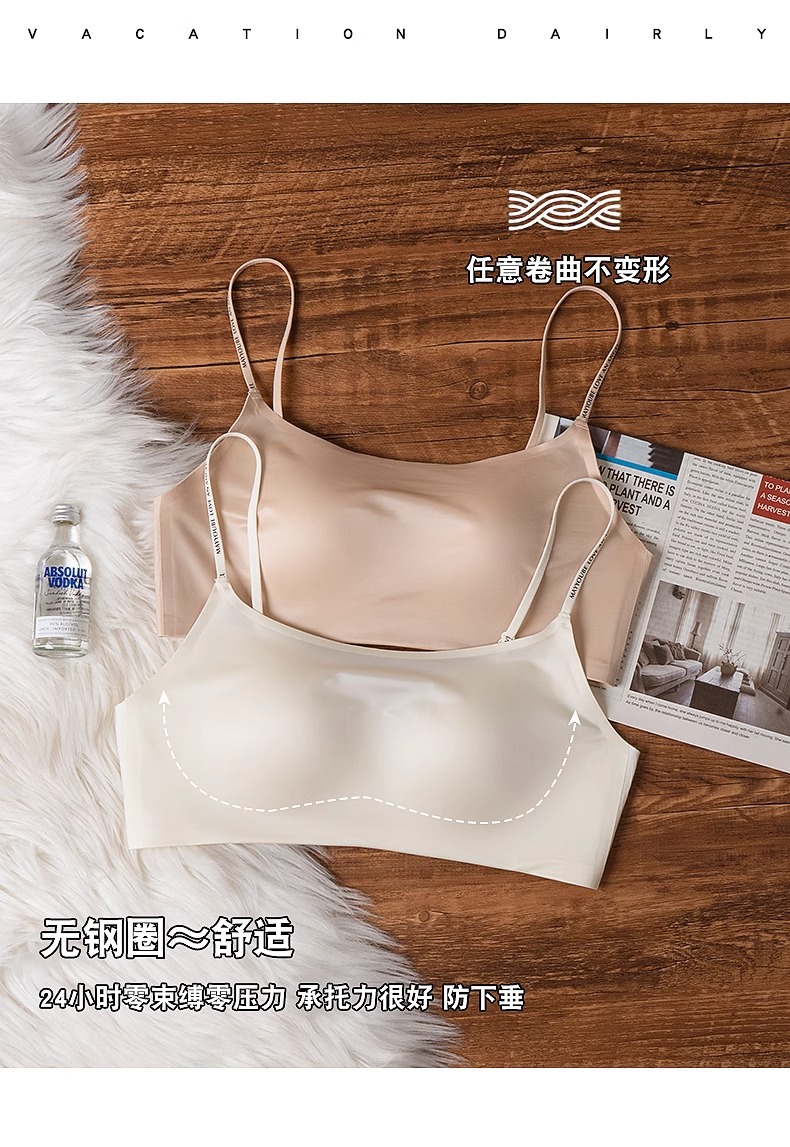 여성용 심리스 튜브탑 브라, 스파게티 스트랩, 큰 가슴, 작은 가슴, 여름용 얇은 노출 방지 레터 서스펜더 브라스토어 가기