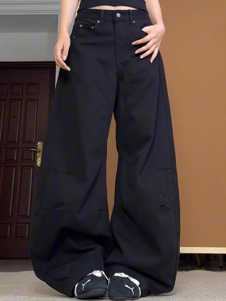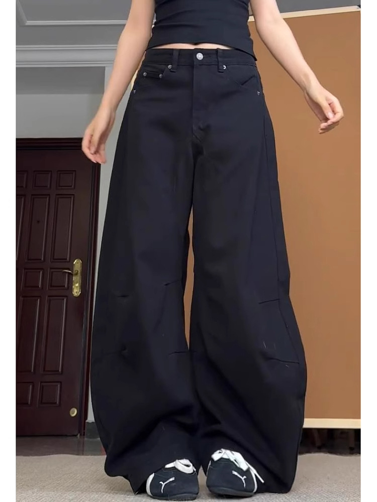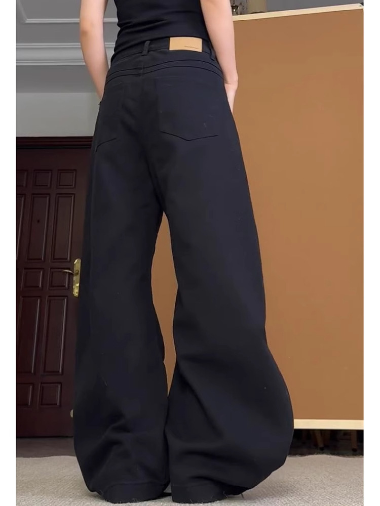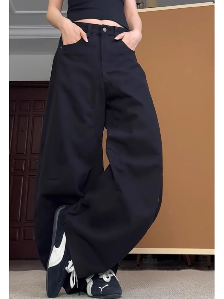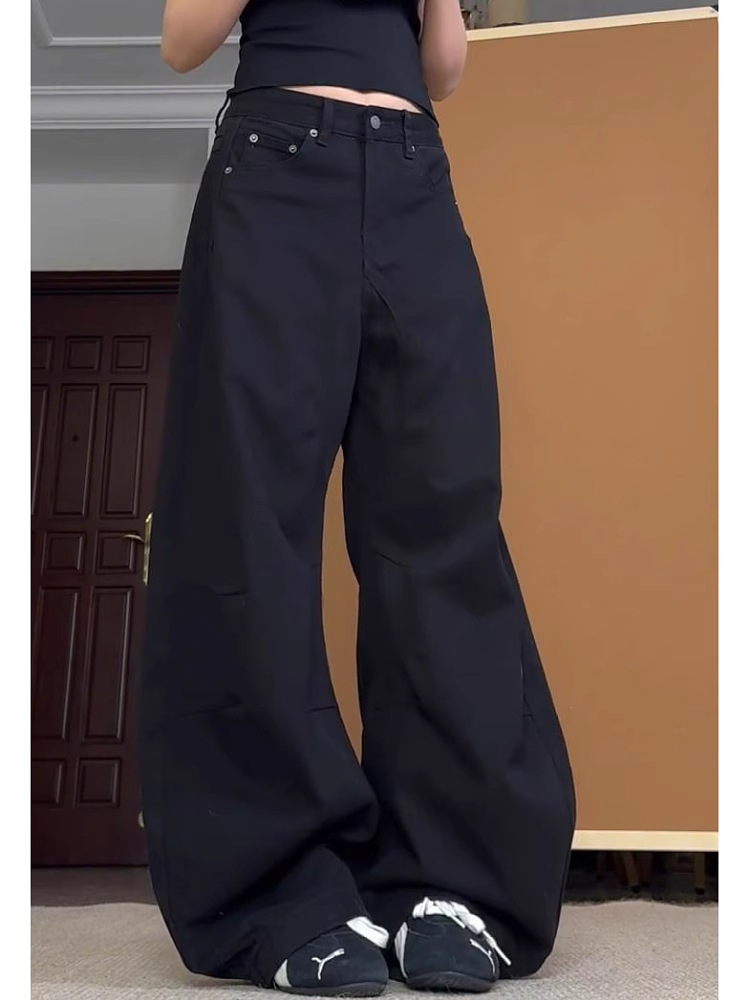 봄, 가을 신상 뚱뚱한 여성용 블랙 와이드 레그 청바지, 큰 사이즈, 배형 몸매, 루즈한 스트레이트 레그 슬리밍 세이버 팬츠스토어 가기