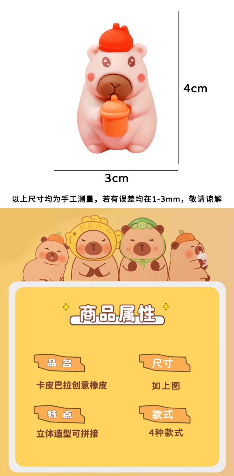 귀여운 카피바라 지우개 초등학생 상품 흔적 없는 지우개 어린이 문구 지우개