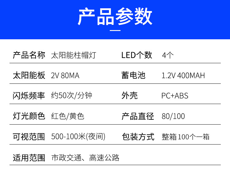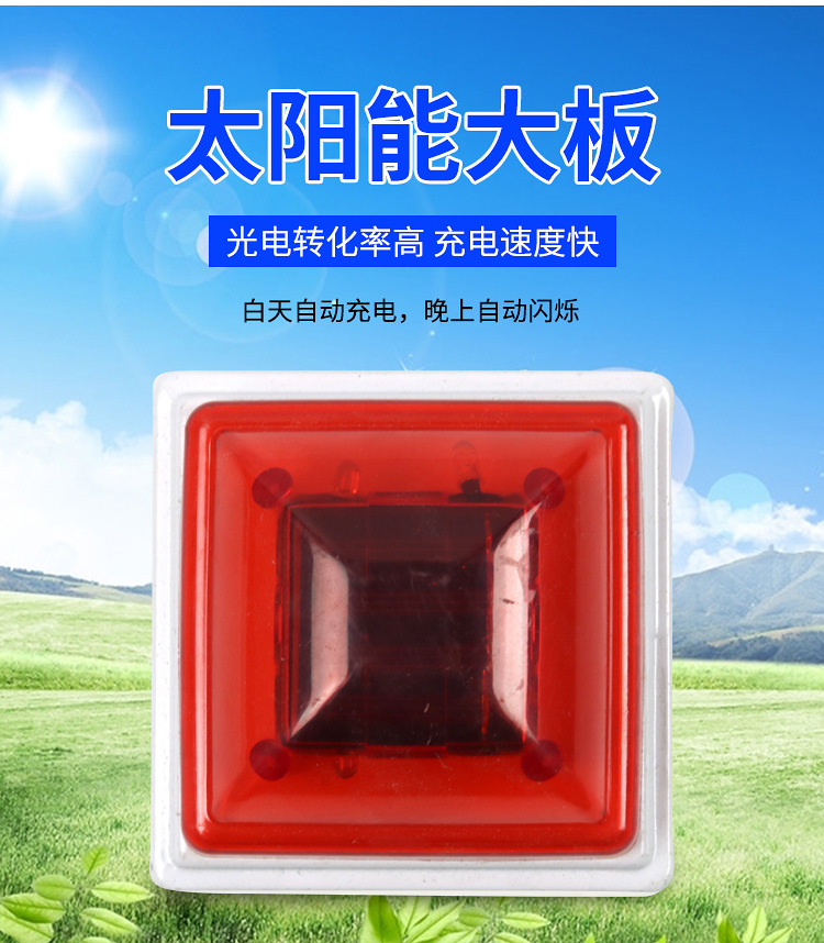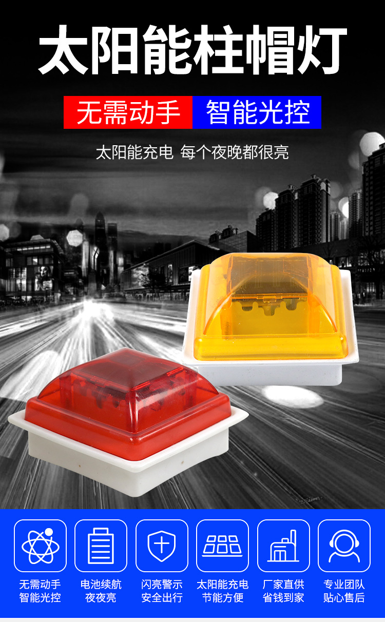태양광 기둥 캡 경고등, 기둥 캡, 울타리 및 가드레일 경고등, 장애물등, 철제 베이스 야간 점멸등스토어 가기