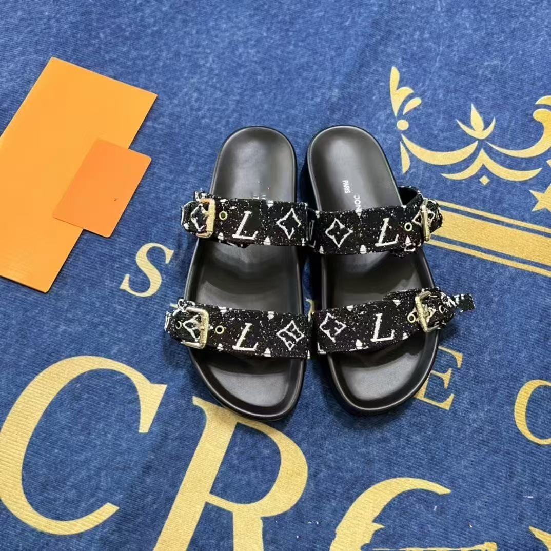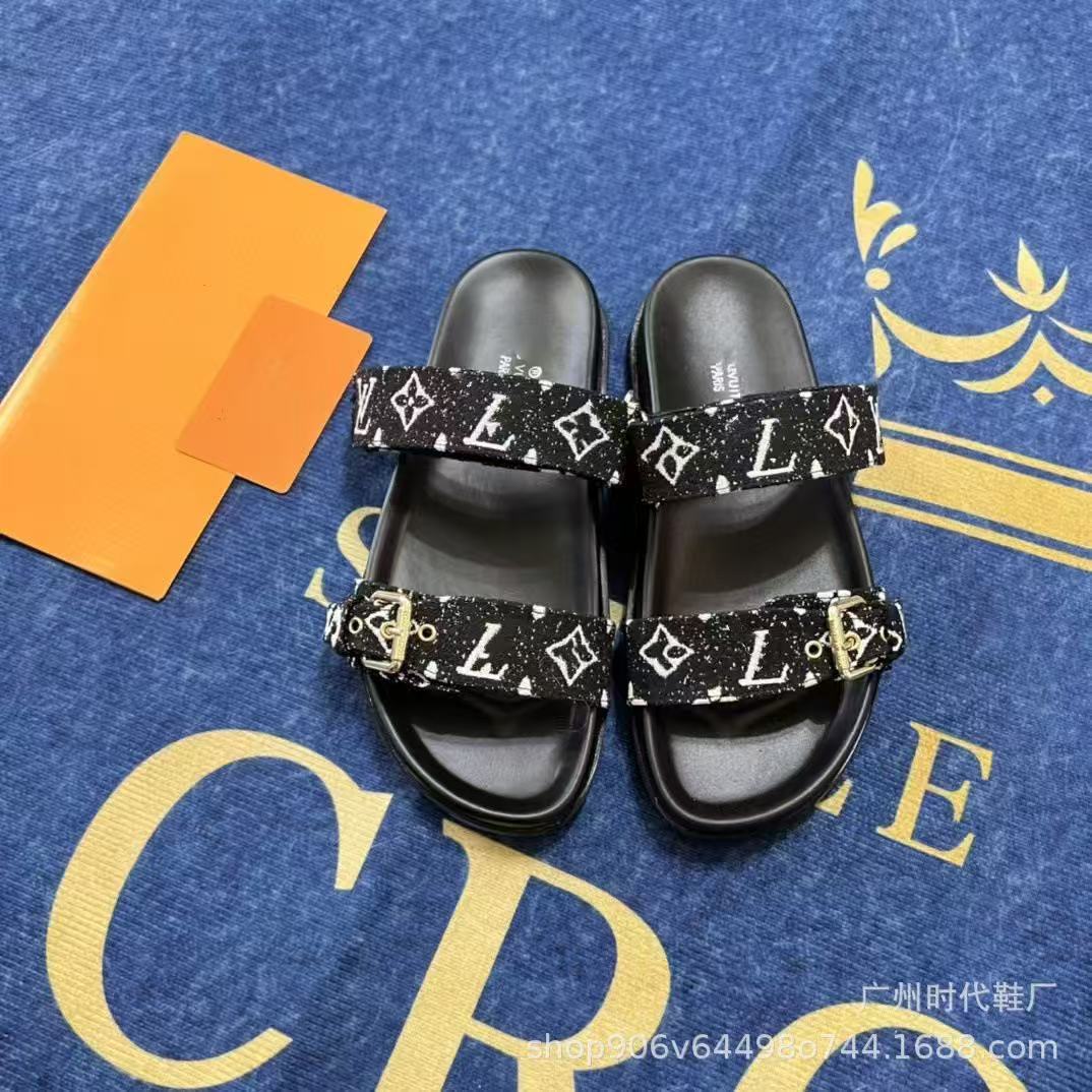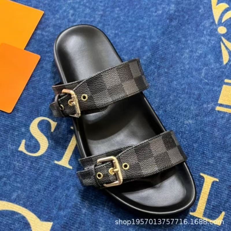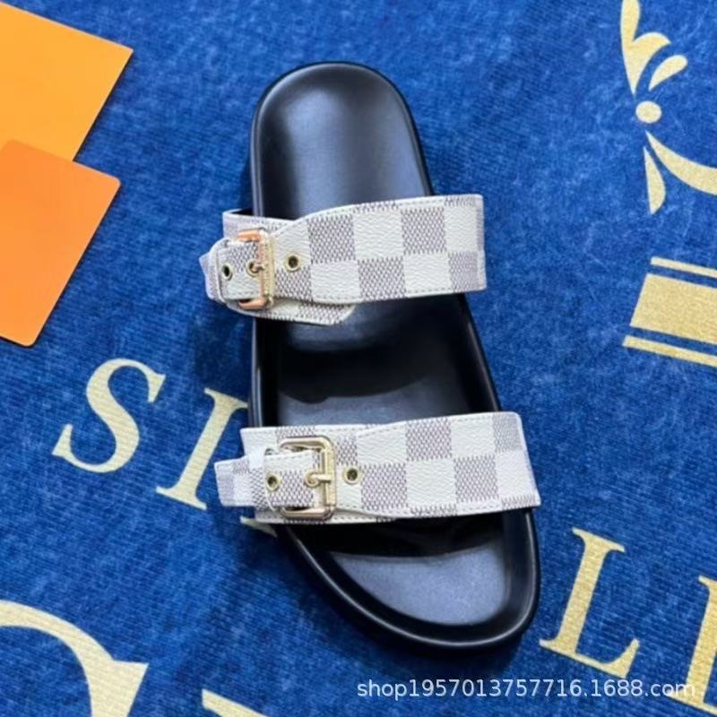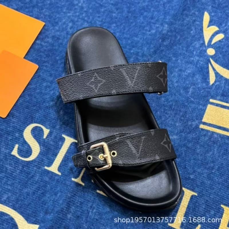 여성용 Donkey 가죽 벨트 버클 두꺼운 밑창 슬리퍼 2025 여름 노안 문자 캐주얼 다목적 비치 대형 슬리퍼스토어 가기