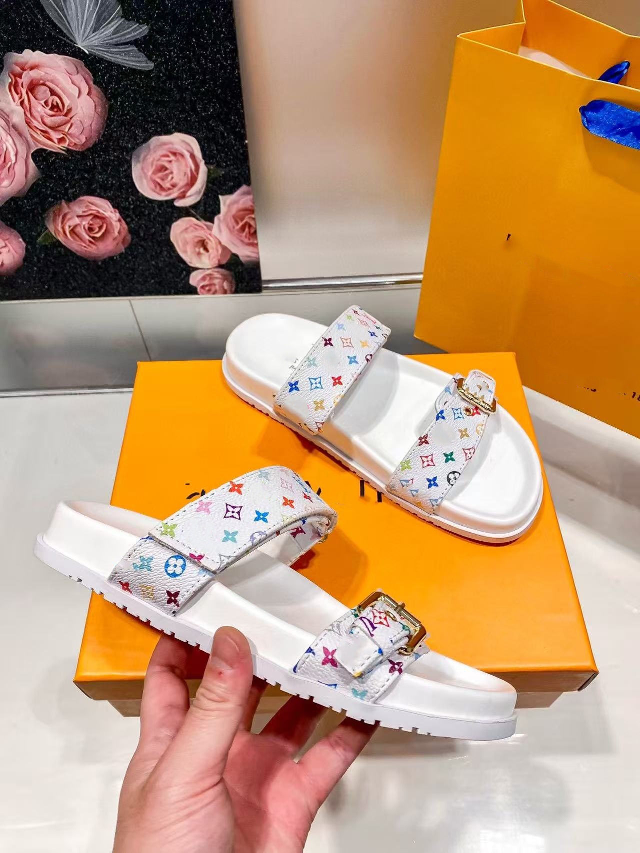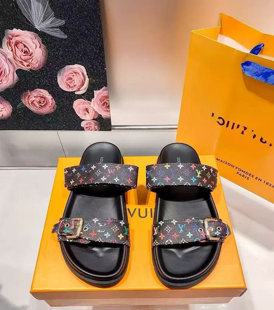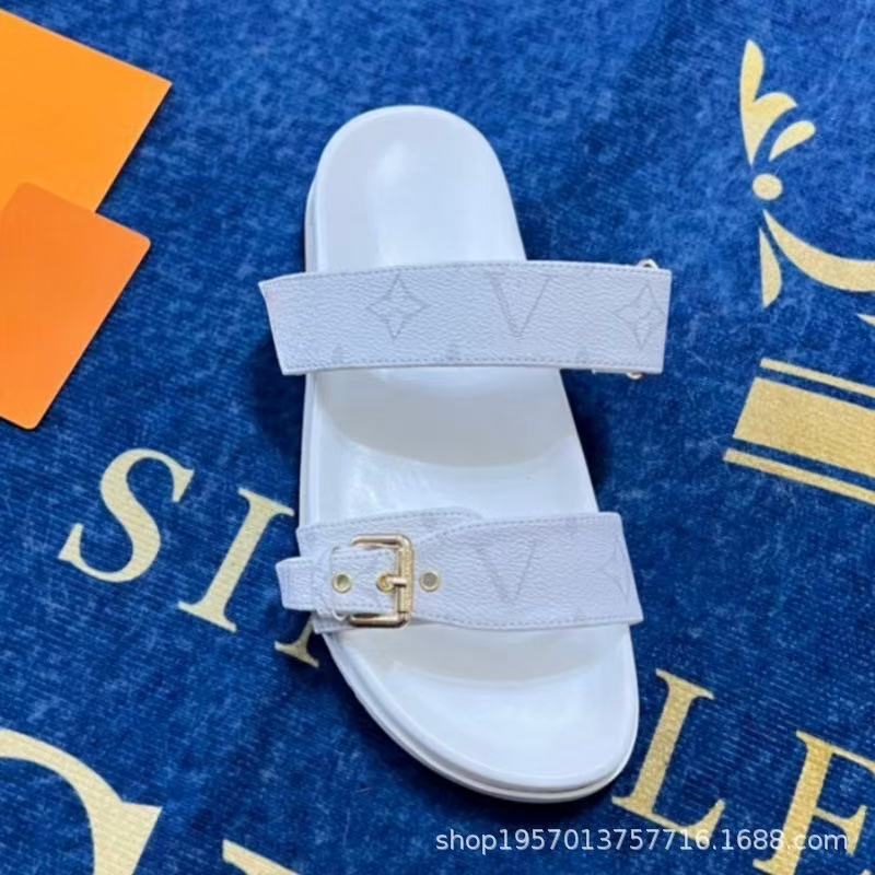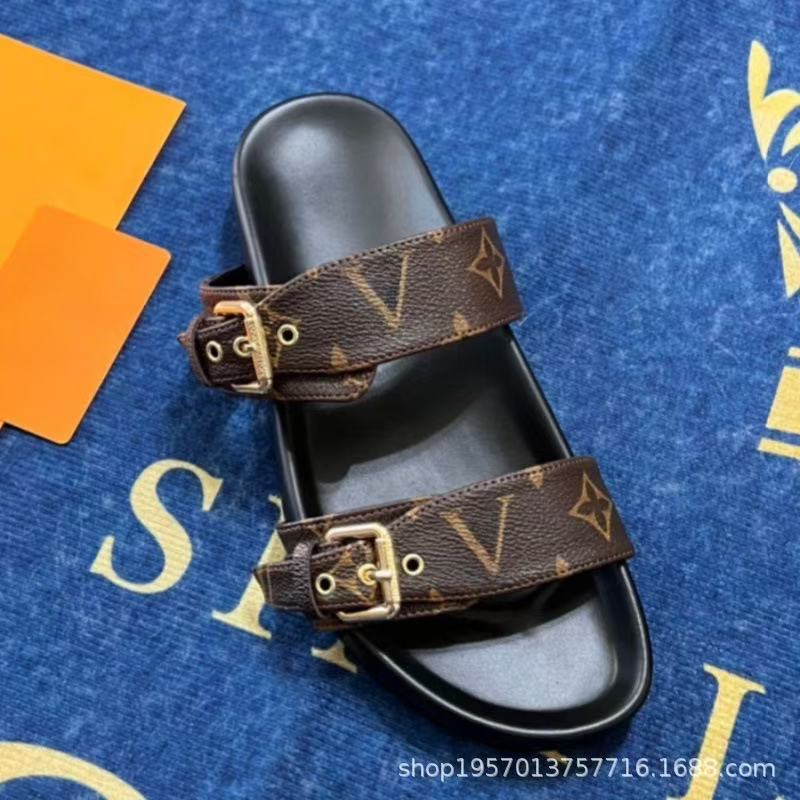 여성용 Donkey 가죽 벨트 버클 두꺼운 밑창 슬리퍼 2025 여름 노안 문자 캐주얼 다목적 비치 대형 슬리퍼스토어 가기