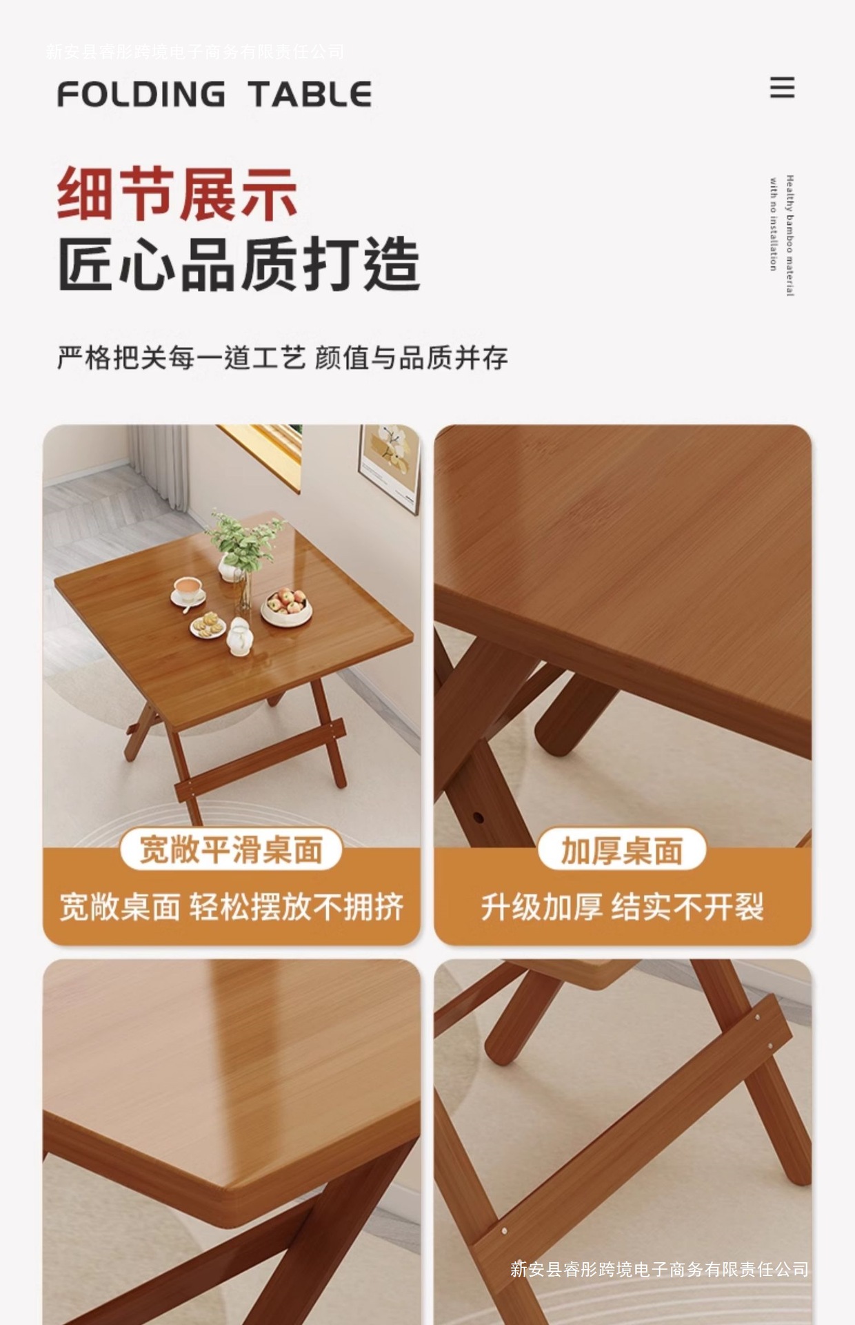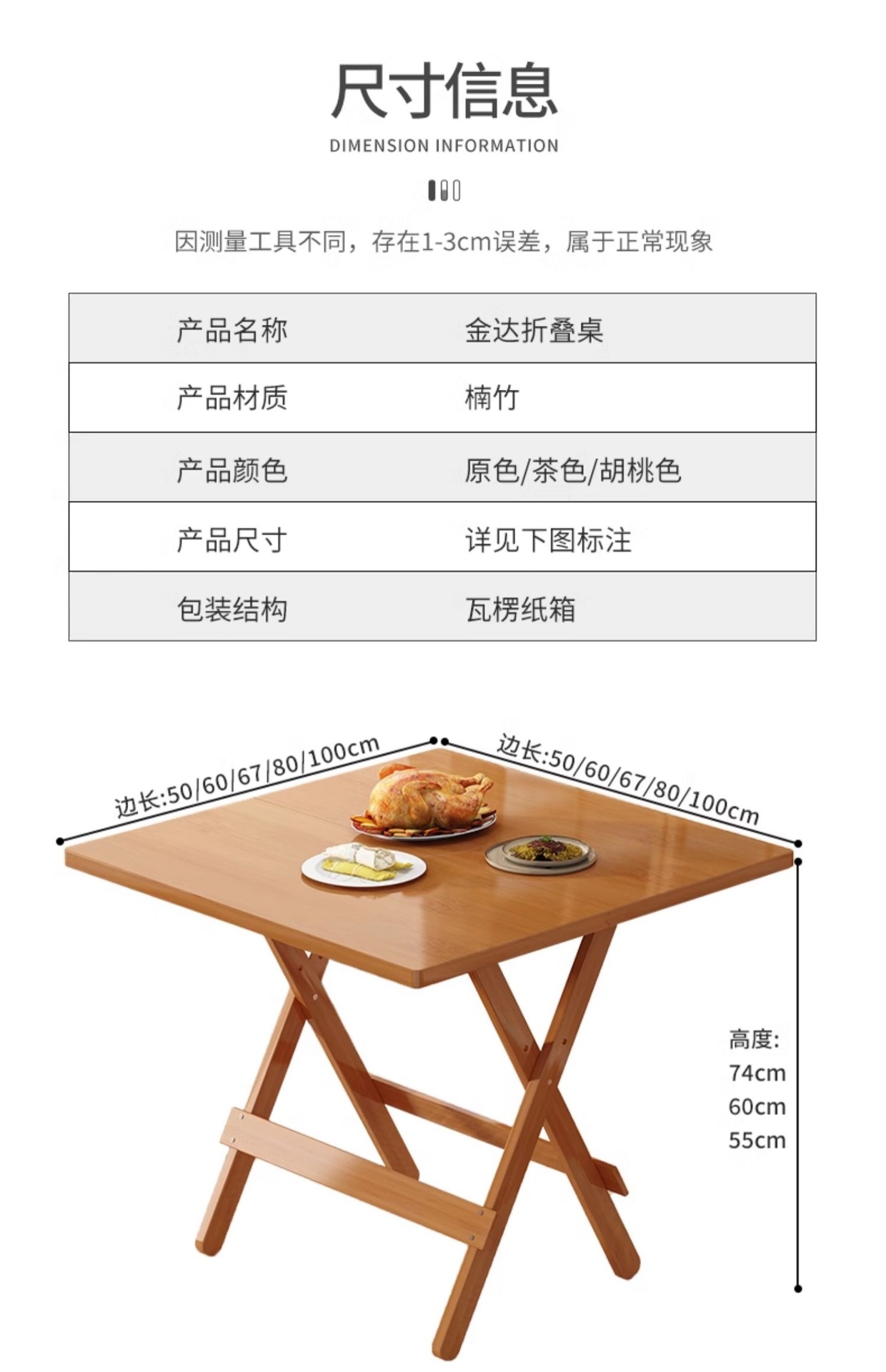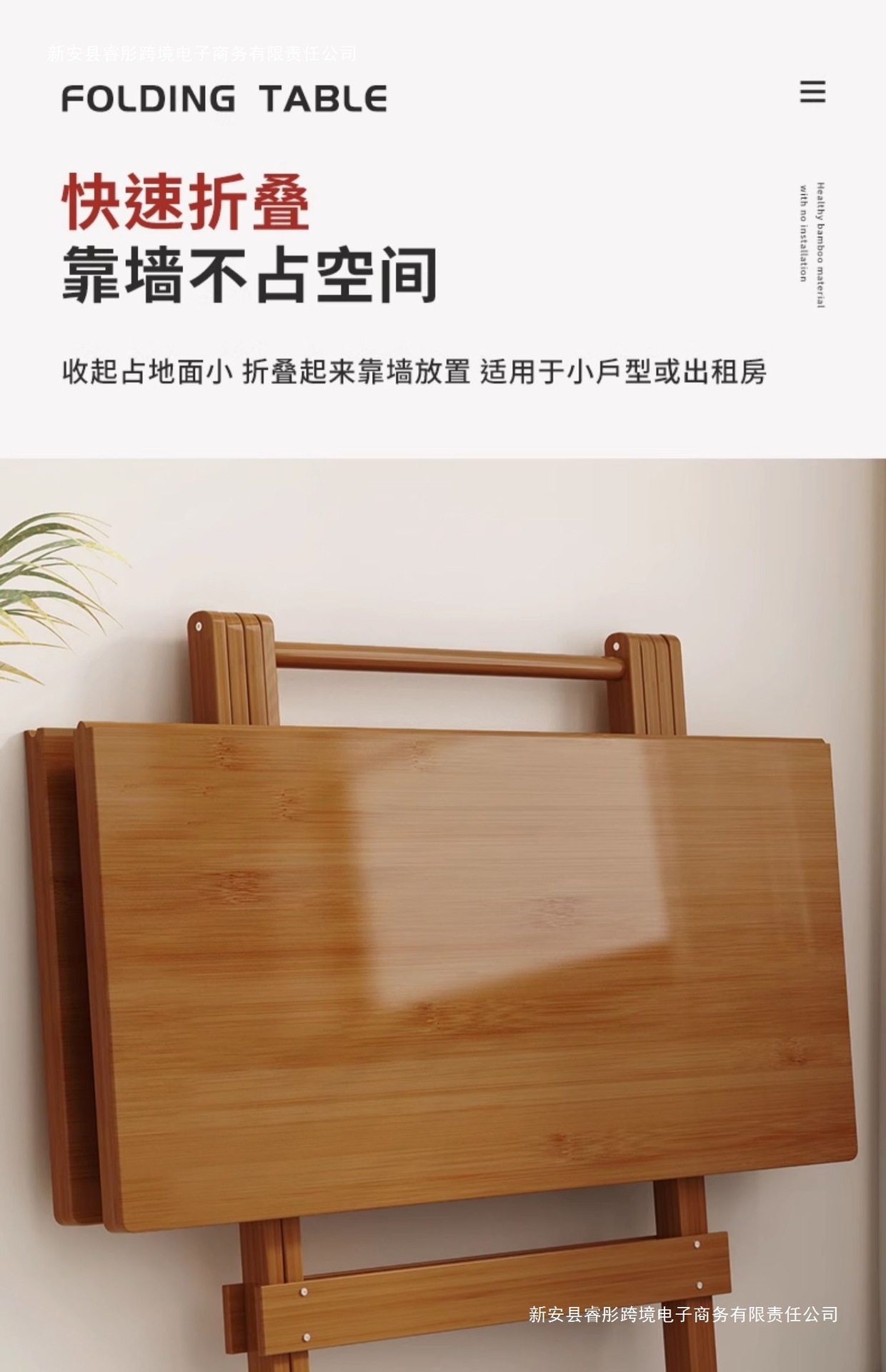 접이식 테이블 사각형 식탁 작은 아파트 식탁 사각형 발코니 홈 휴대용 야외 대나무 목재 보관
