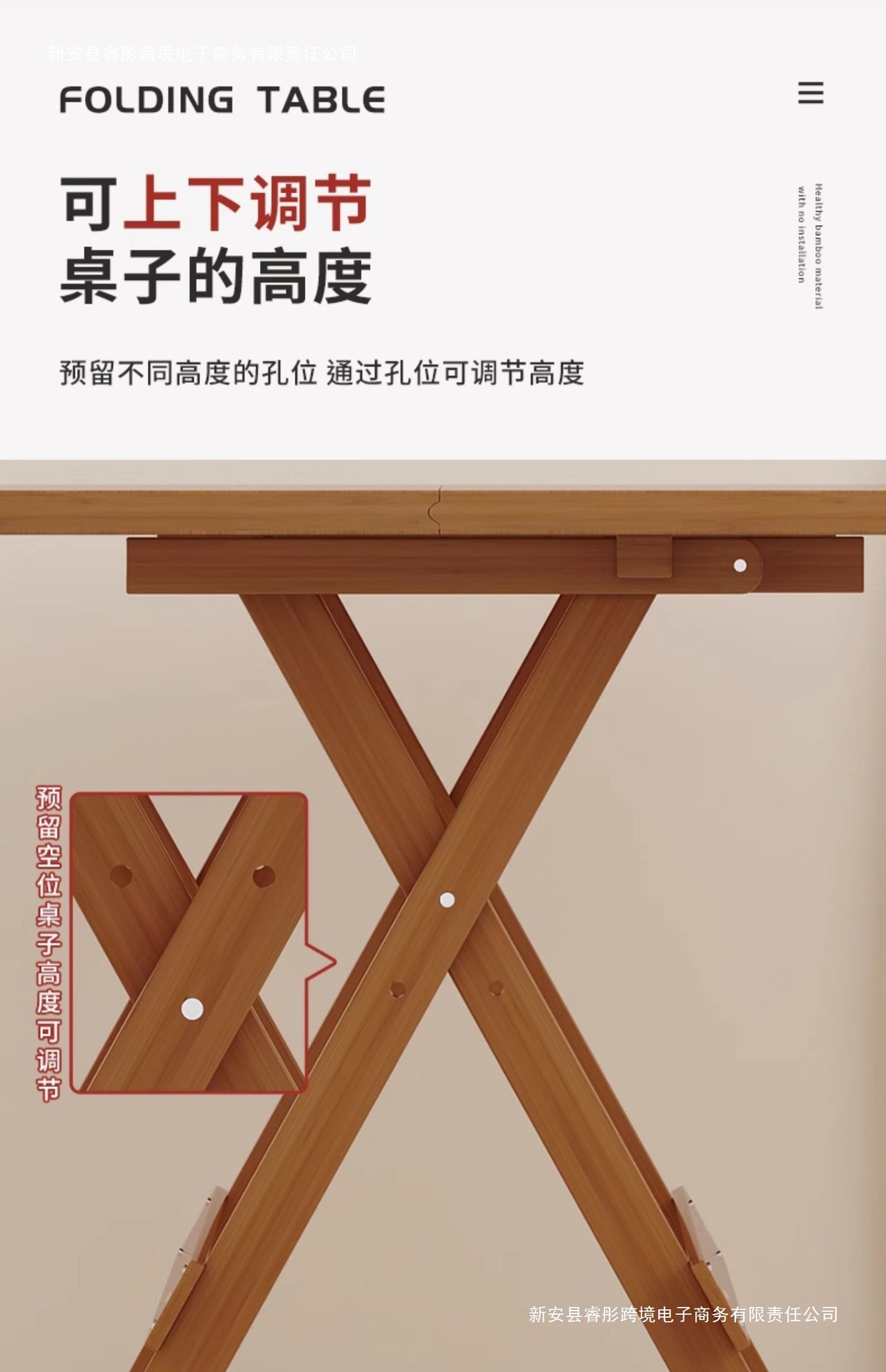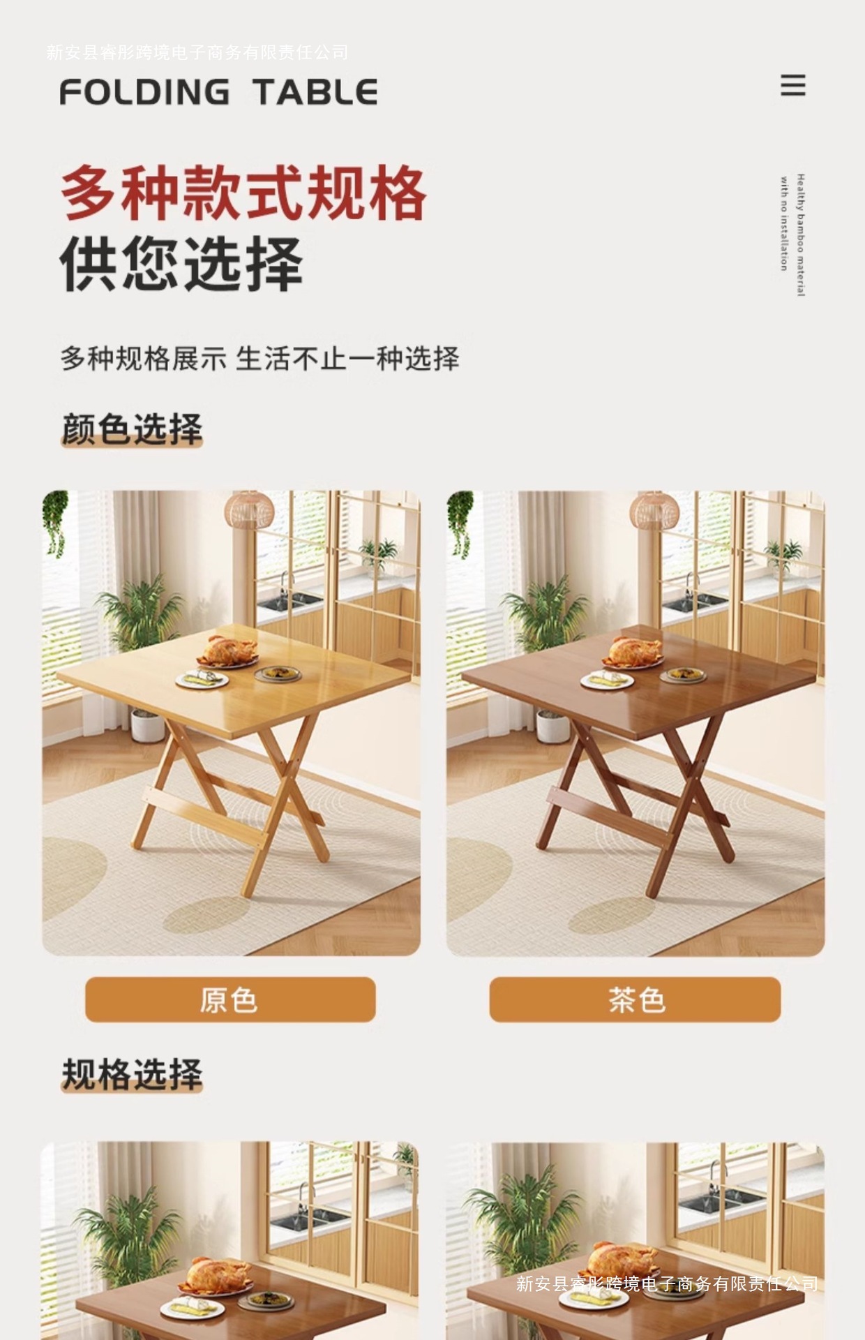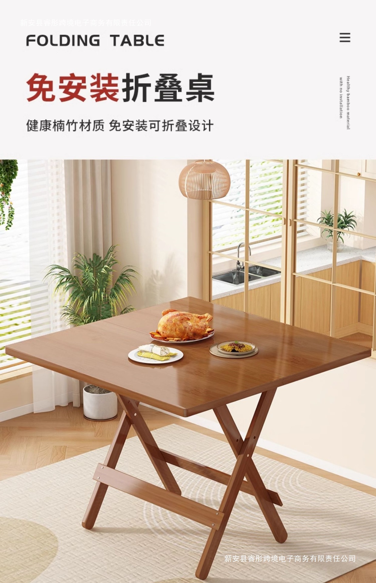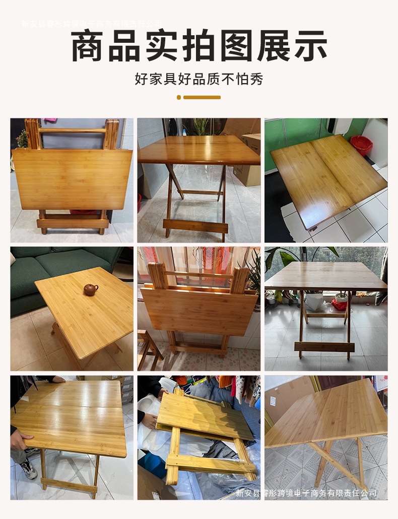 접이식 테이블 사각형 식탁 작은 아파트 식탁 사각형 발코니 홈 휴대용 야외 대나무 목재 보관스토어 가기
