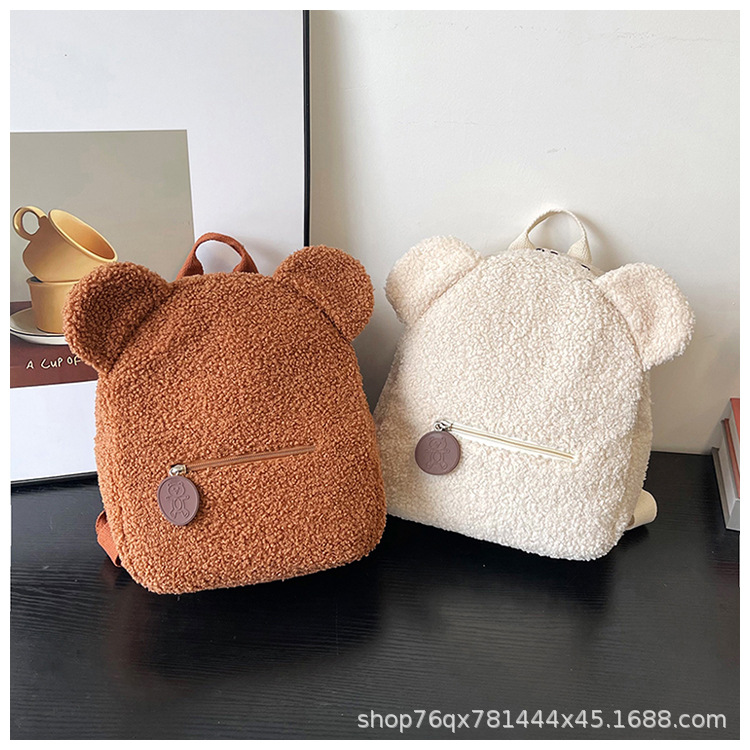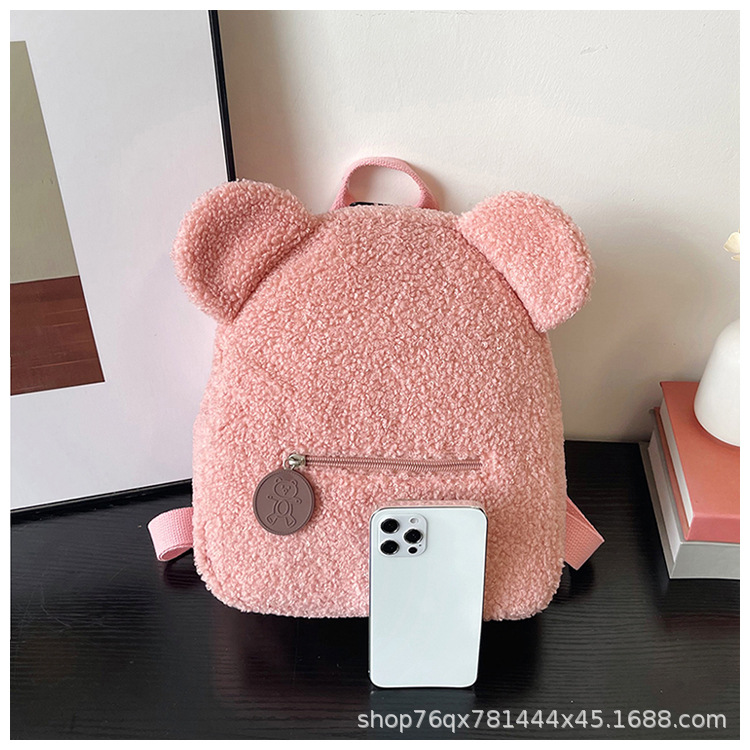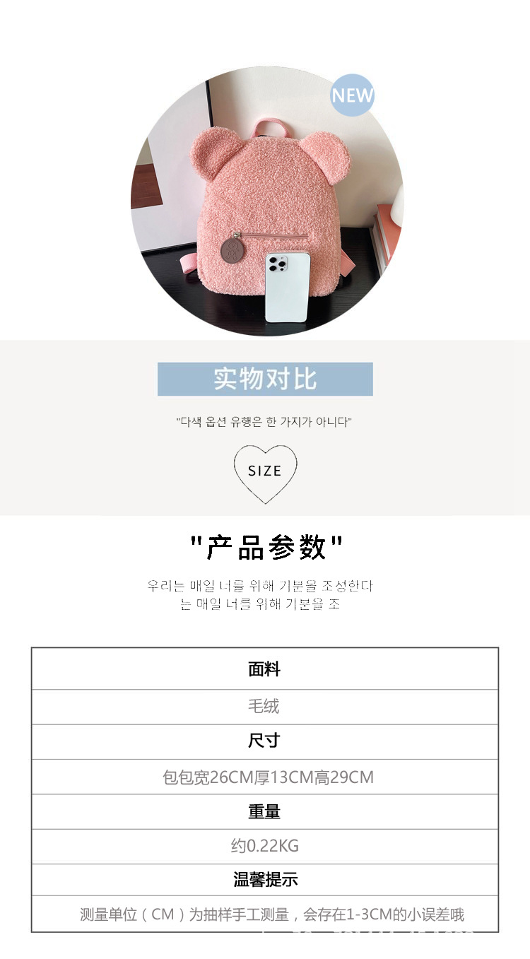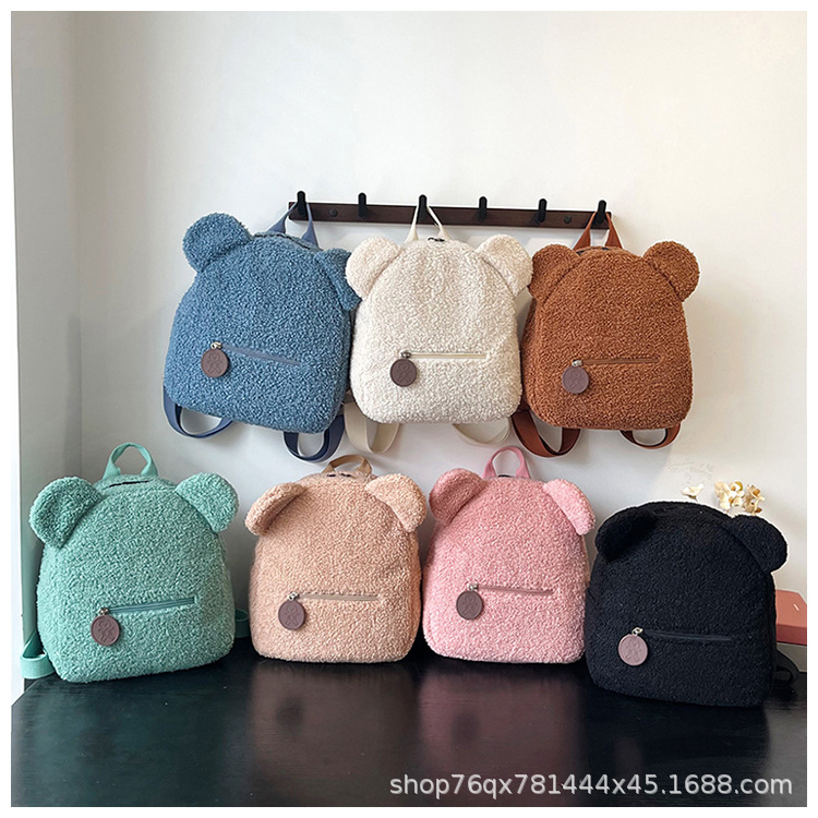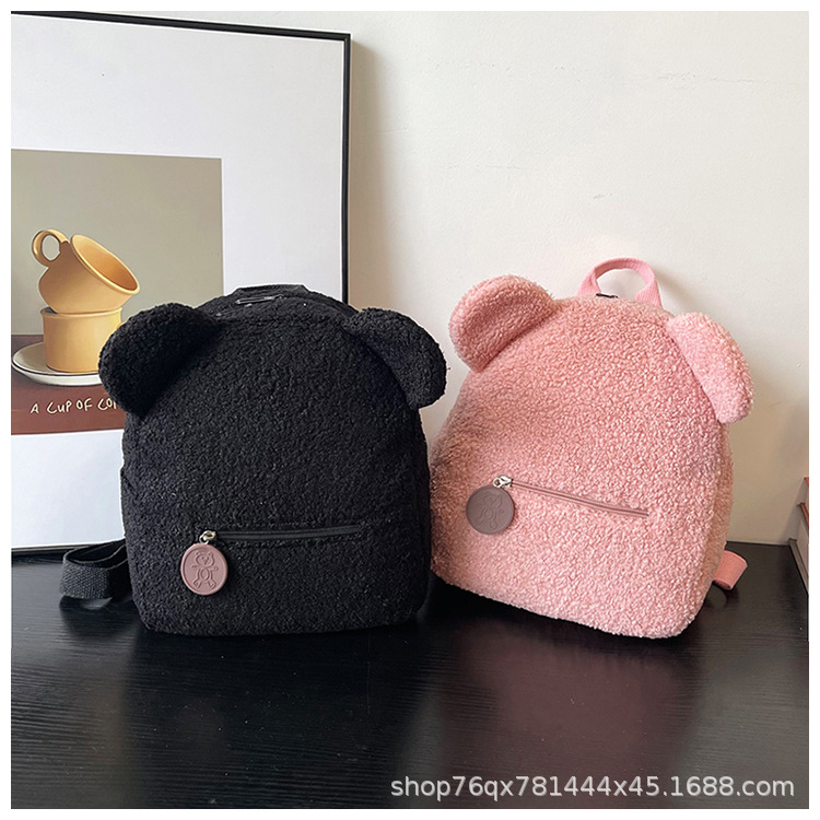 플러시 배낭 여성 가방 가을, 겨울 새로운 한국어 버전 ins 슈퍼 핫 귀여운 곰 귀 배낭 소녀 부모-자식 가방스토어 가기