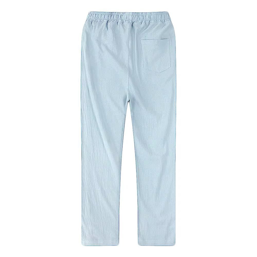 2025년 봄/가을 남성용 캐주얼 팬츠, 드로스트링 밴딩 허리, 솔리드 컬러 트렌디 스트레이트 팬츠, 재고 도매스토어 가기