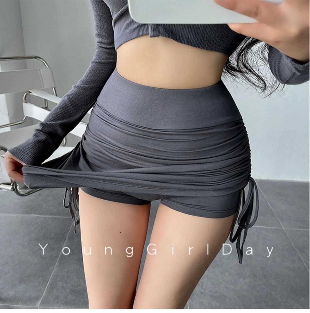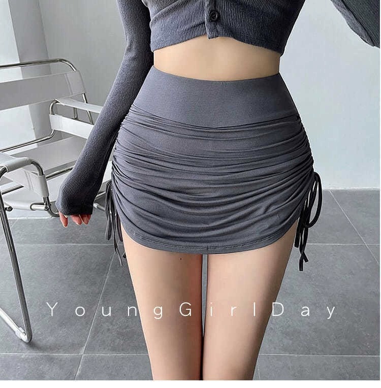 하이 웨이스트 플리츠 섹시 퓨어 러스 스커트 여성 힙 커버 a 라인 스커트 드로스트링 여름 미니 스커트 2024 나이트 클럽 스커트