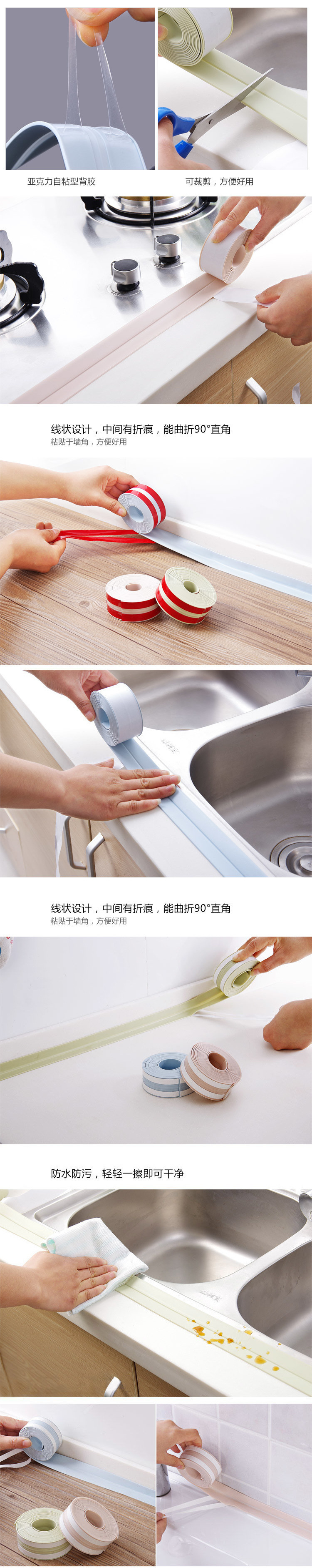 주방 방수 스트립, 미세접착제, 방수 및 곰팡이 방지 테이프, 변기 틈새 벽 발라인 스티커스토어 가기