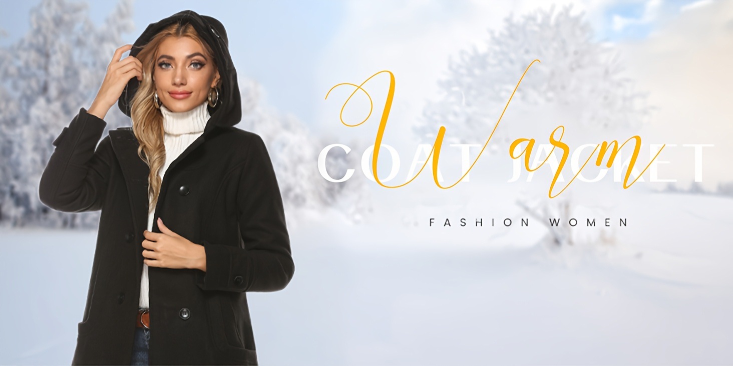 후드 트렌치가 있는 여성용 더블 브레스트 울 피 코트스토어 가기