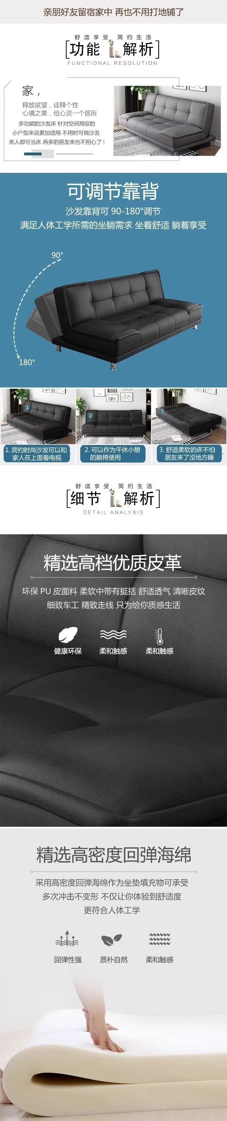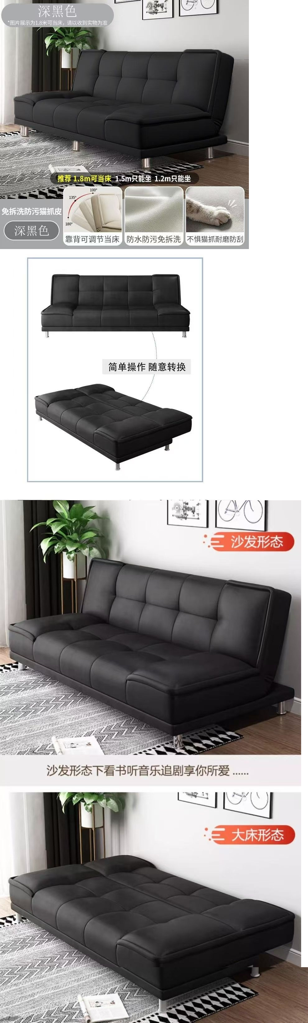 고양이 스크래치 가죽 소파 베드 일체형 접이식 거실 침실 간이 임대 아파트 아파트 소형 더블 소파스토어 가기