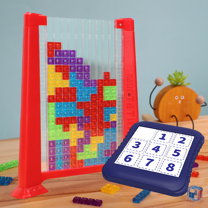 • 대형 디럭스 에디션 퍼즐 세트 - 파란색 + 빨간색 3레벨 9그리드 화롱 로드