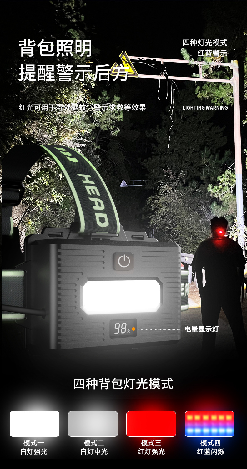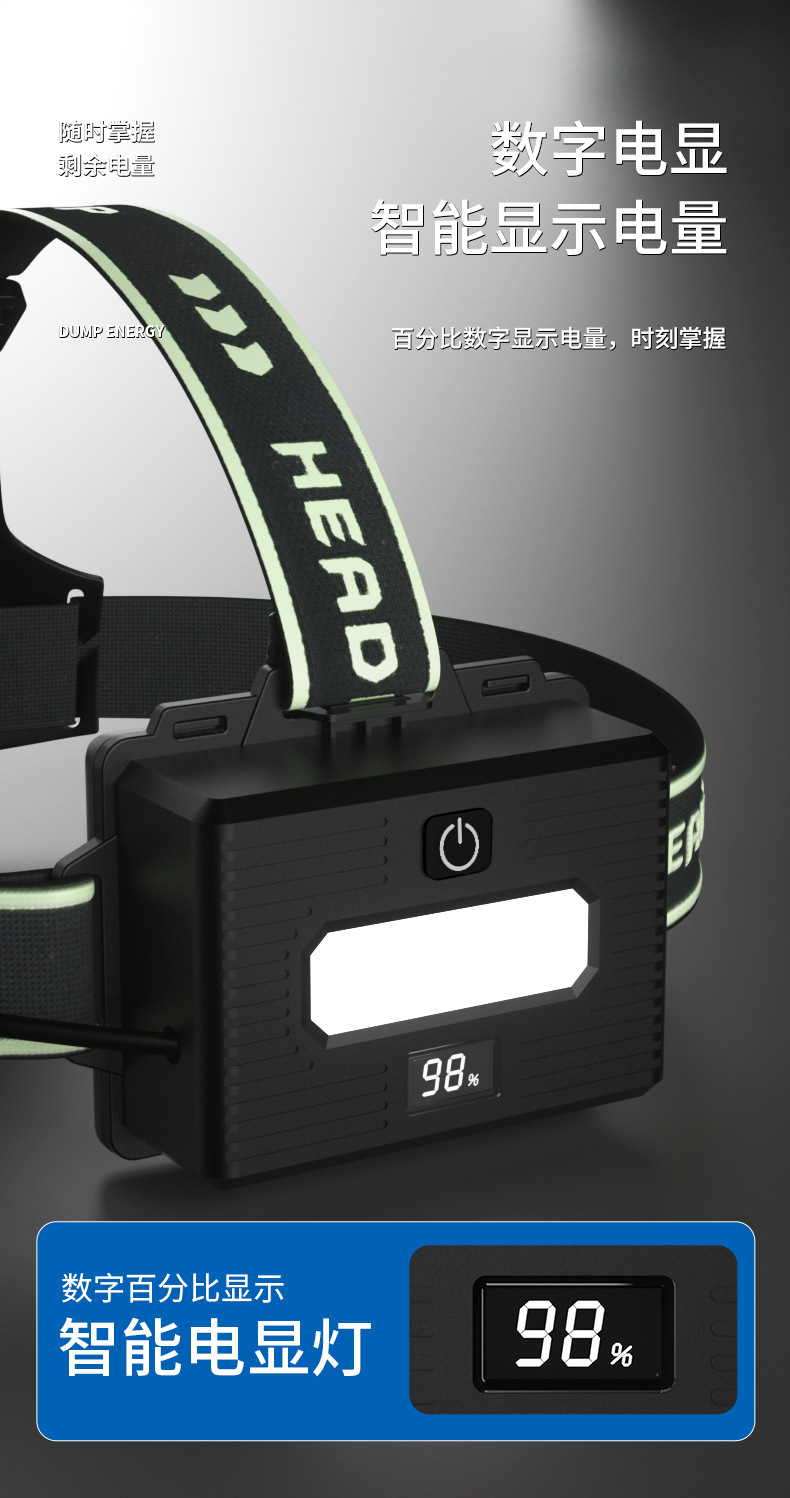 국경 간 초고휘도 60W 백색 레이저 강한 빛 장거리 유도 헤드라이트(디지털 디스플레이 충전식 줌 야외 헤드라이트 포함)