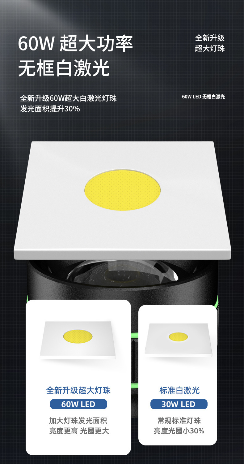 국경 간 초고휘도 60W 백색 레이저 강한 빛 장거리 유도 헤드라이트(디지털 디스플레이 충전식 줌 야외 헤드라이트 포함)스토어 가기