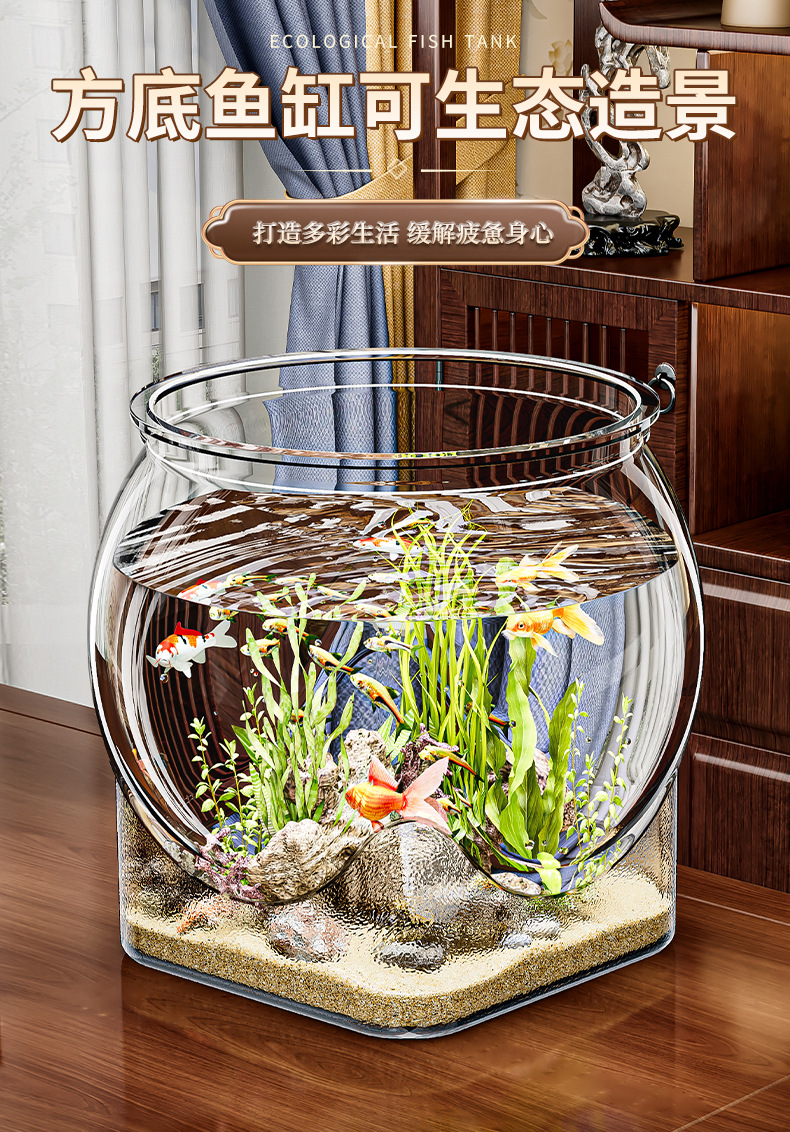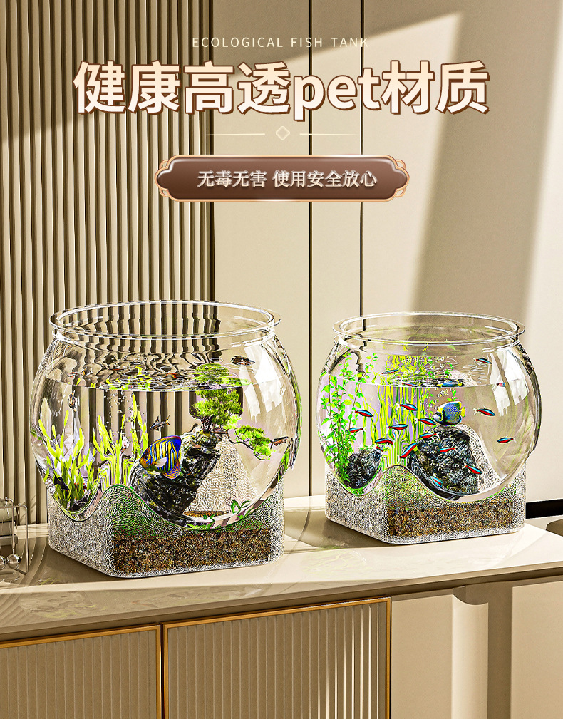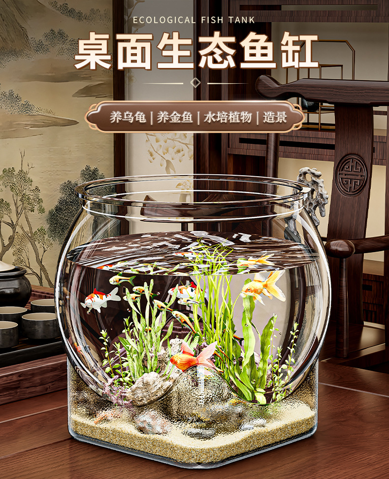 수조 거실 2025 새로운 라운드 플라스틱 모조 유리 거북이 수조 일체형 소형 데스크탑 생태 탱크스토어 가기