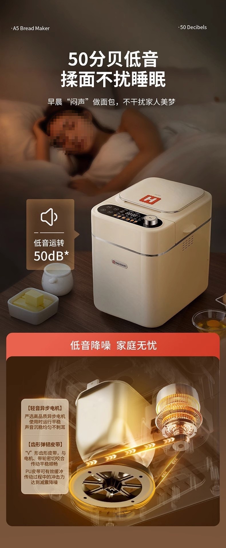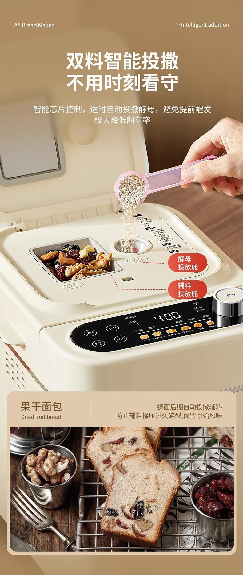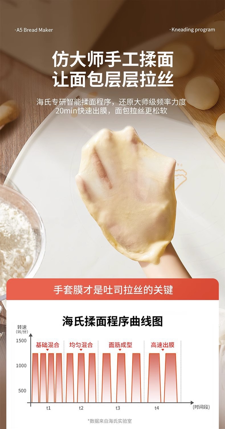 Haishi A5 가정용 빵 기계 완전 자동 다기능 지능형 반죽 소형 반죽 발효 아침 식사 트위스터