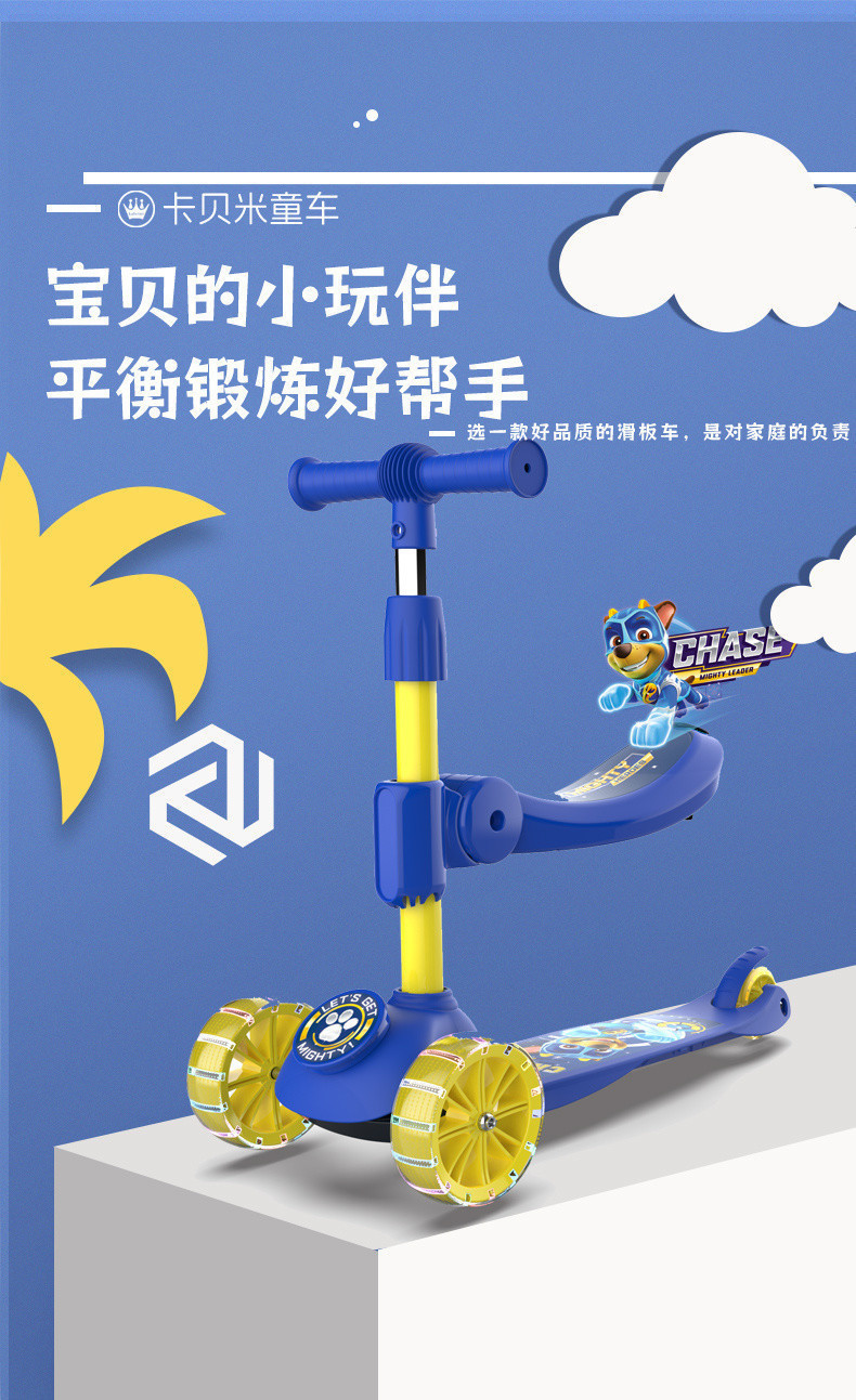 어린이 스쿠터는 2-in-1 플래시 Paw Patrol 3륜 승마 어린이 장난감 스케이트보드 선물로 사용할 수 있습니다.스토어 가기