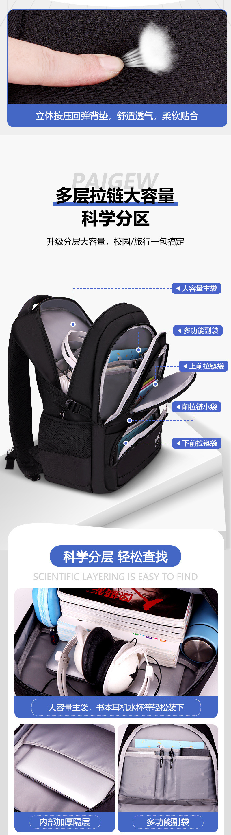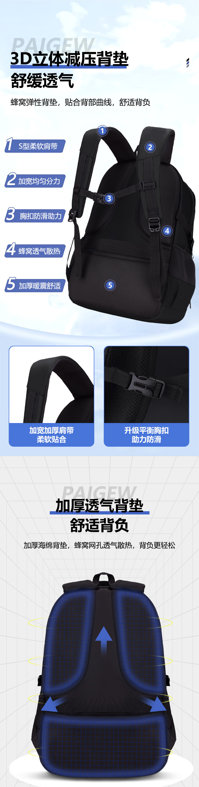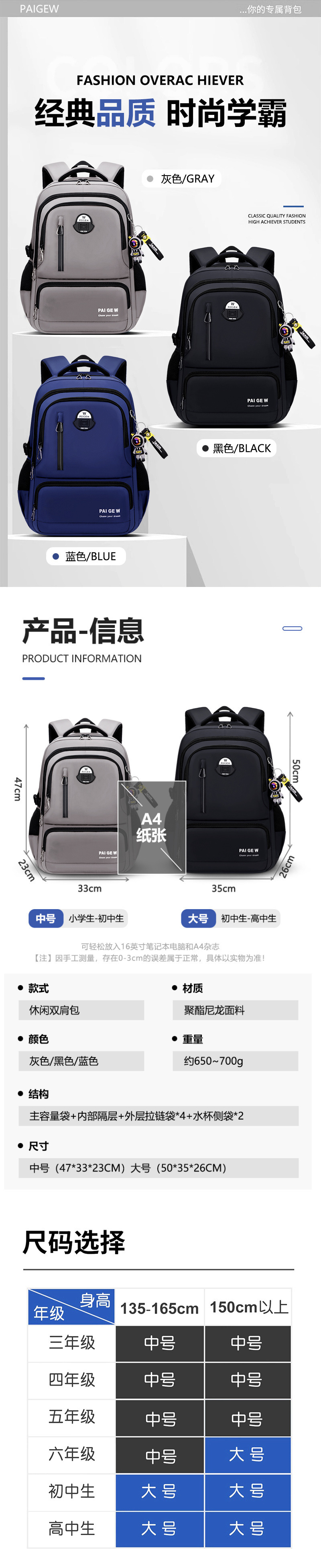 2024 새로운 학교 가방 중학생 대용량 소년 중학교 고등학교 배낭 척추 보호 및 부담 감소 남성 배낭스토어 가기