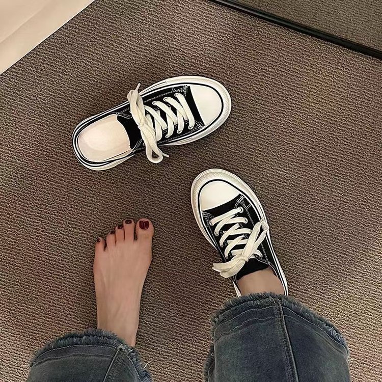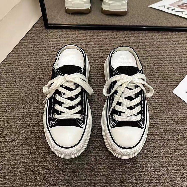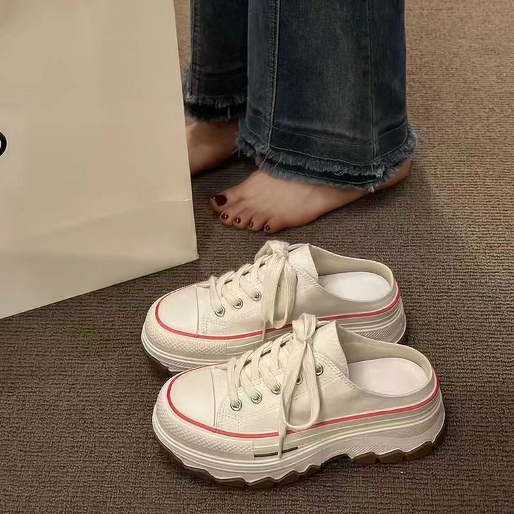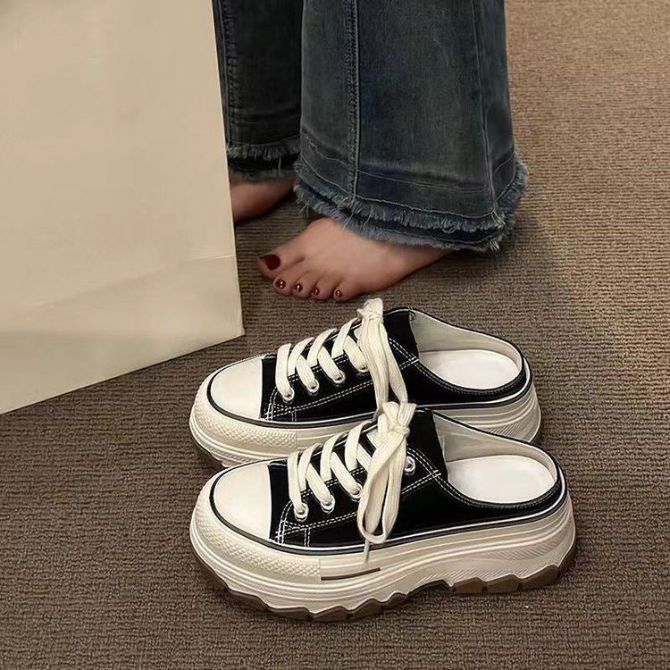 여성용 바오터우 하프 슬리퍼 여름 아우터 2025 봄 여름 새로운 한국식 두꺼운 밑창 슬립 온 게으른 캔버스 신발 여성용스토어 가기