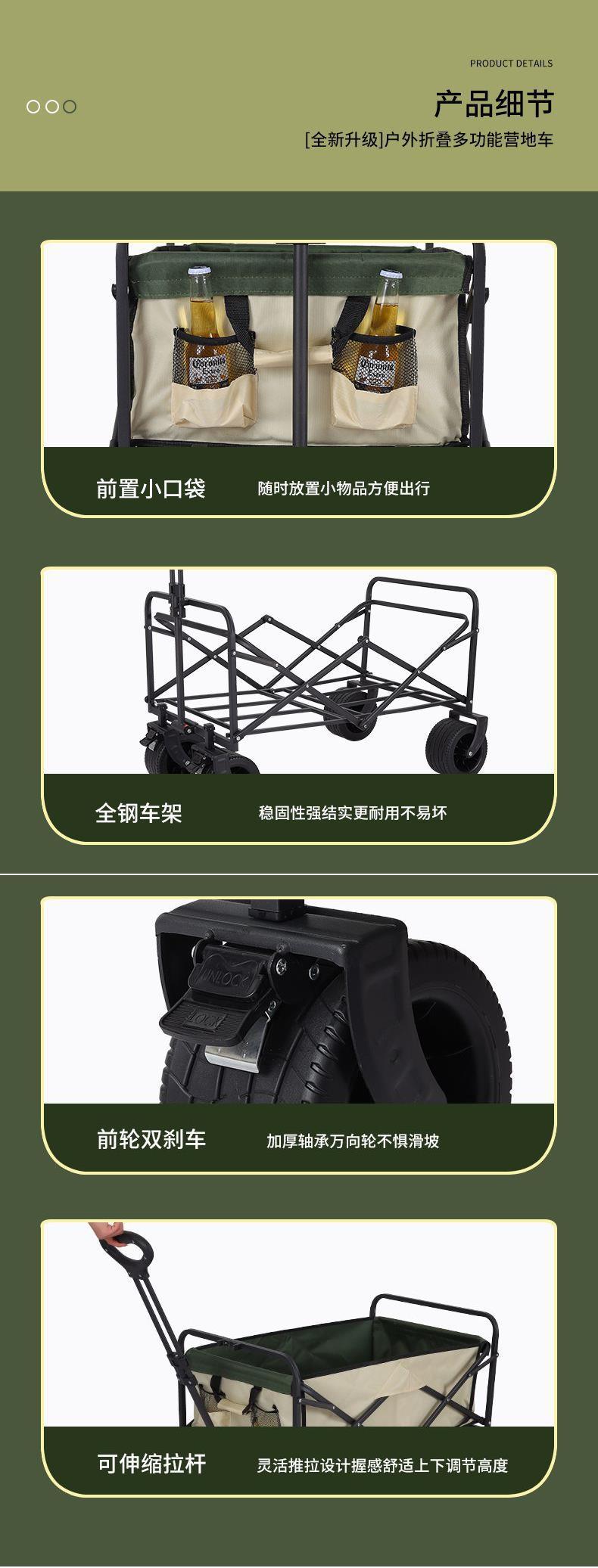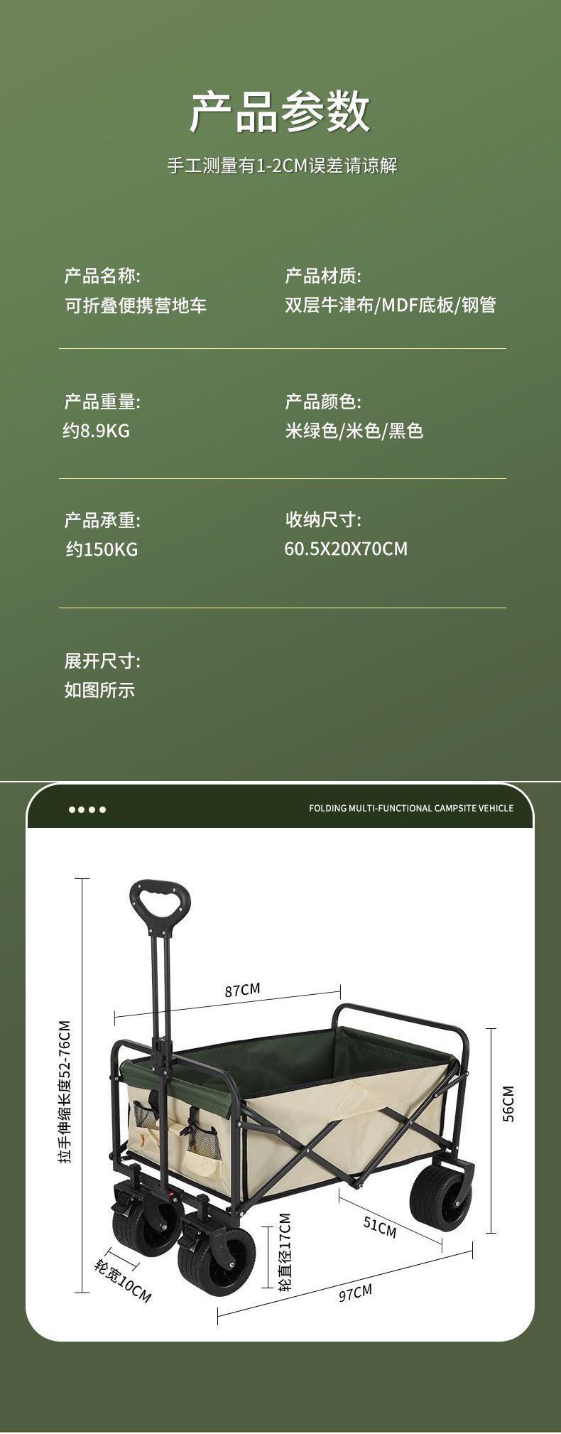 • 캠프카 + 접이식 스톨 테이블 - 대형 트레일러 탱크 휠(카키색)