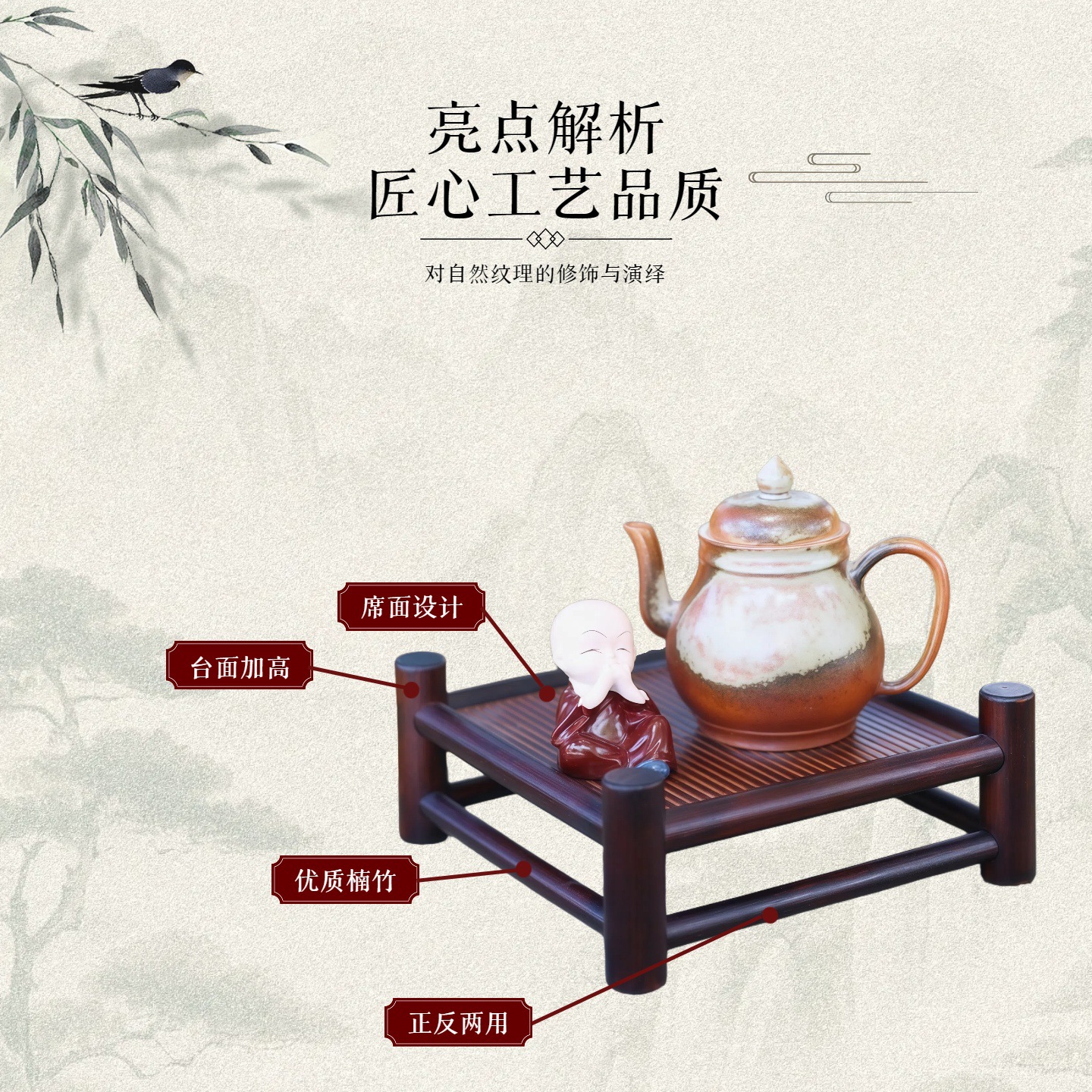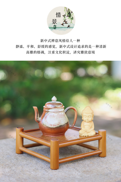 녹색 물 대나무 차 세트 가정용 중국 다도 대나무 보관 랙 건조 버블 테이블 순수 수제 차 테이블 난로 차 컵 홀더