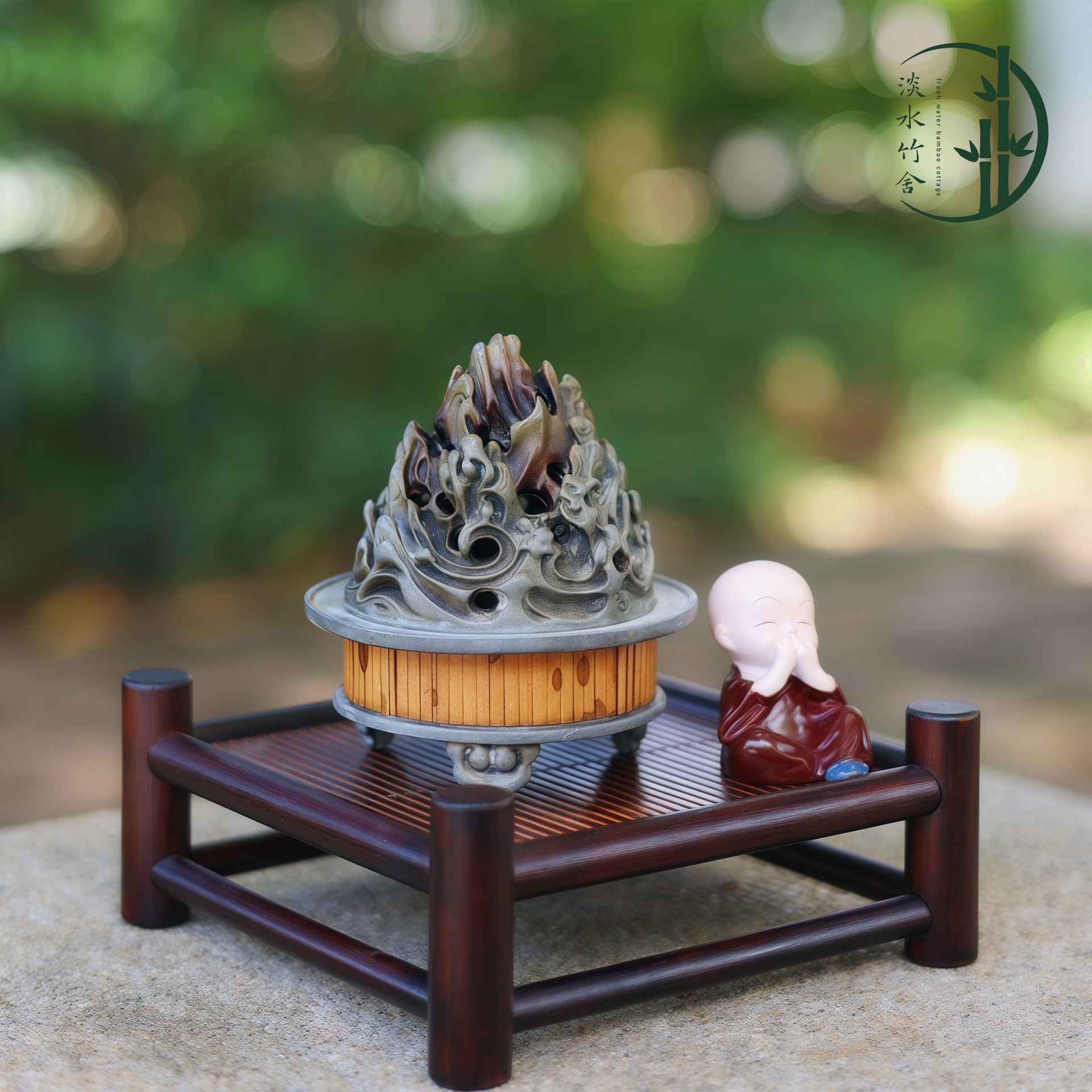 녹색 물 대나무 차 세트 가정용 중국 다도 대나무 보관 랙 건조 버블 테이블 순수 수제 차 테이블 난로 차 컵 홀더스토어 가기